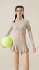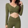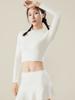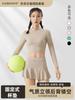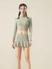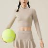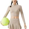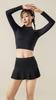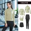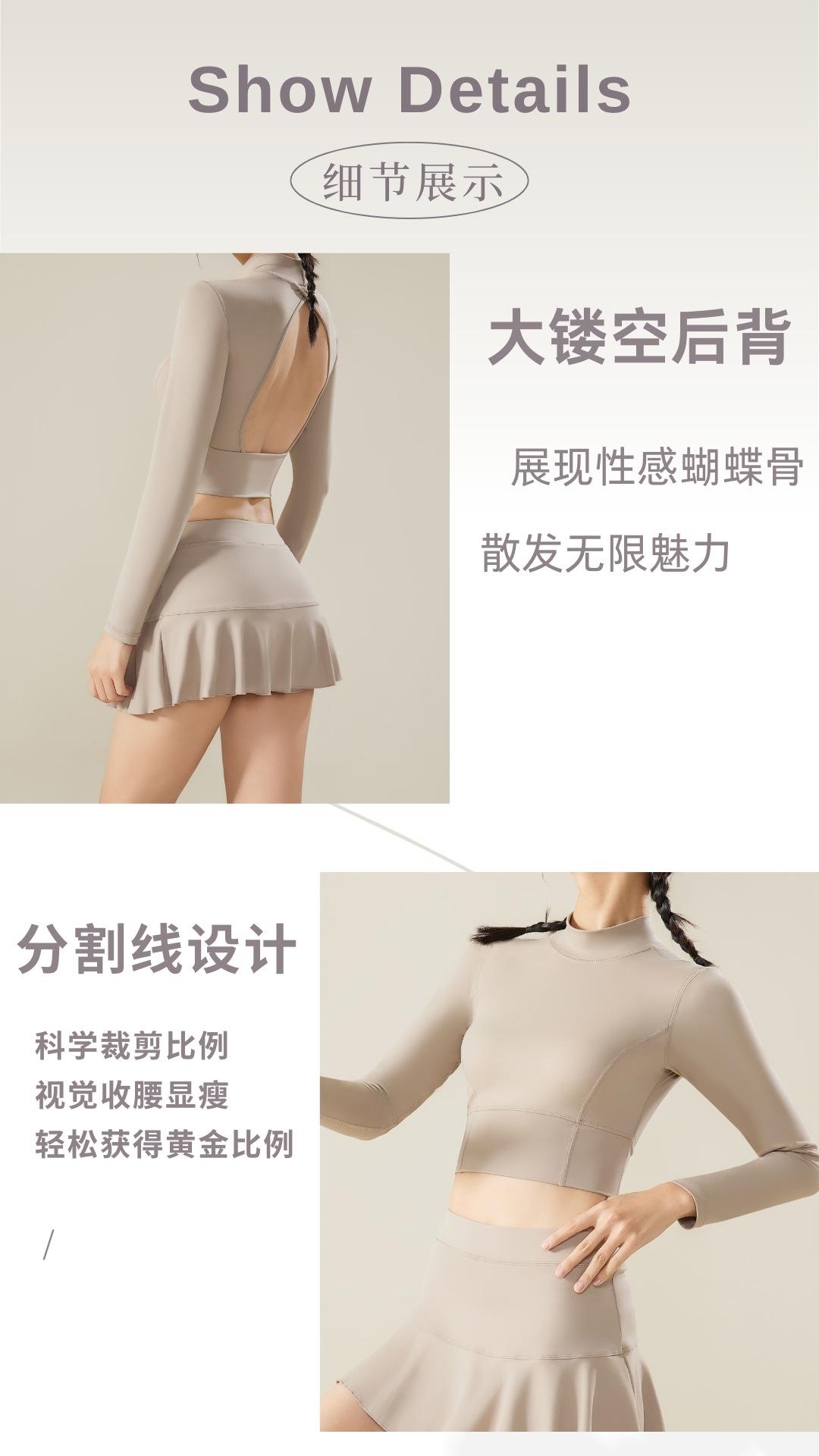 Traje de yoga de otoño e invierno, nuevo, con cuello alto y diseño hueco en la espalda, falda falsa de dos piezas, pantalones, ropa de yoga, nailon, deportiva, manga larga