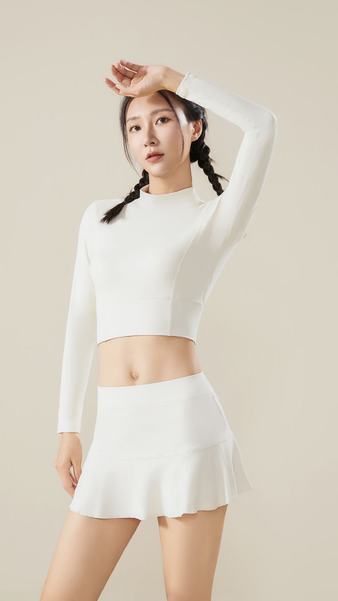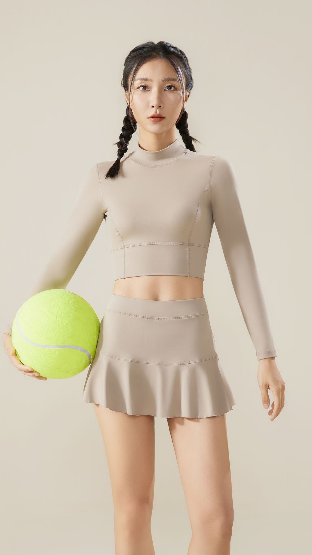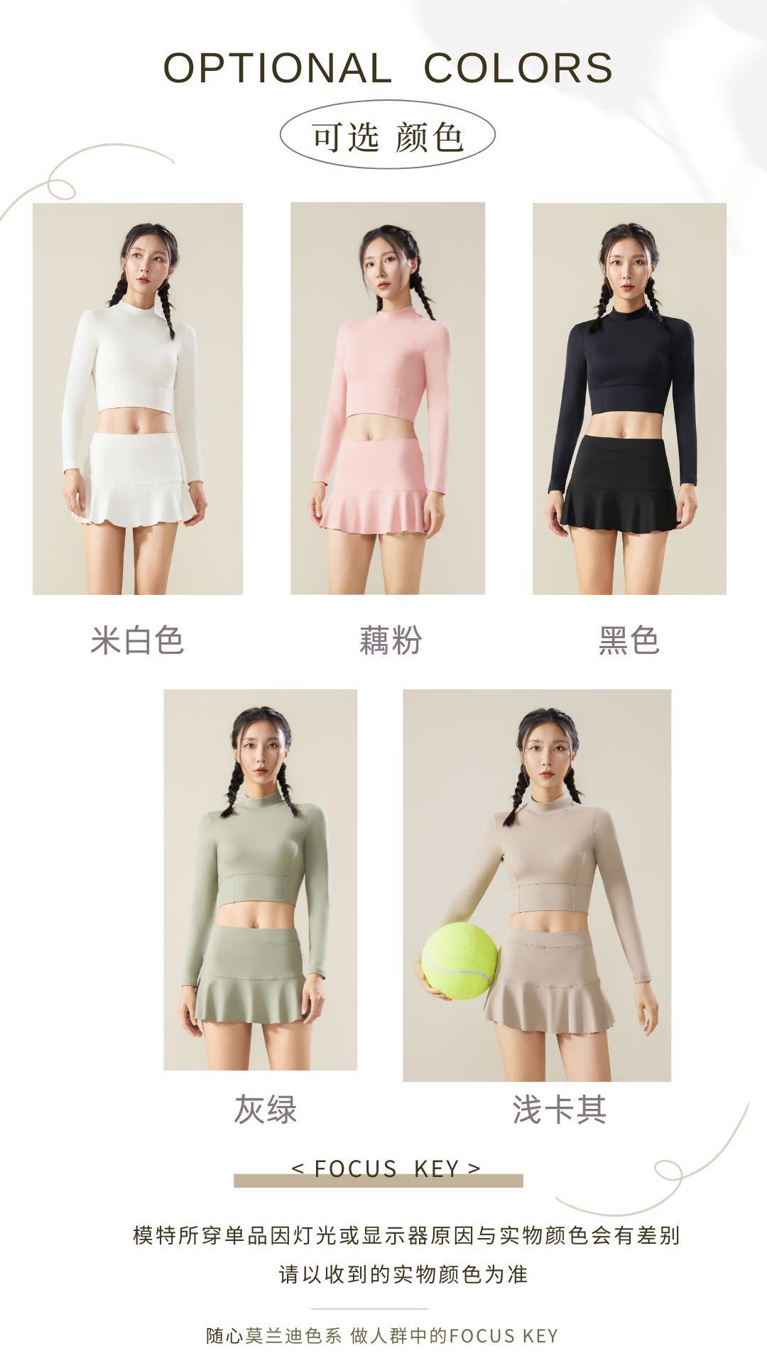 Beige top, Lotus root powder top, Khaki top, Gray and green top, Black top, Beige culottes, Lotus root powder ...