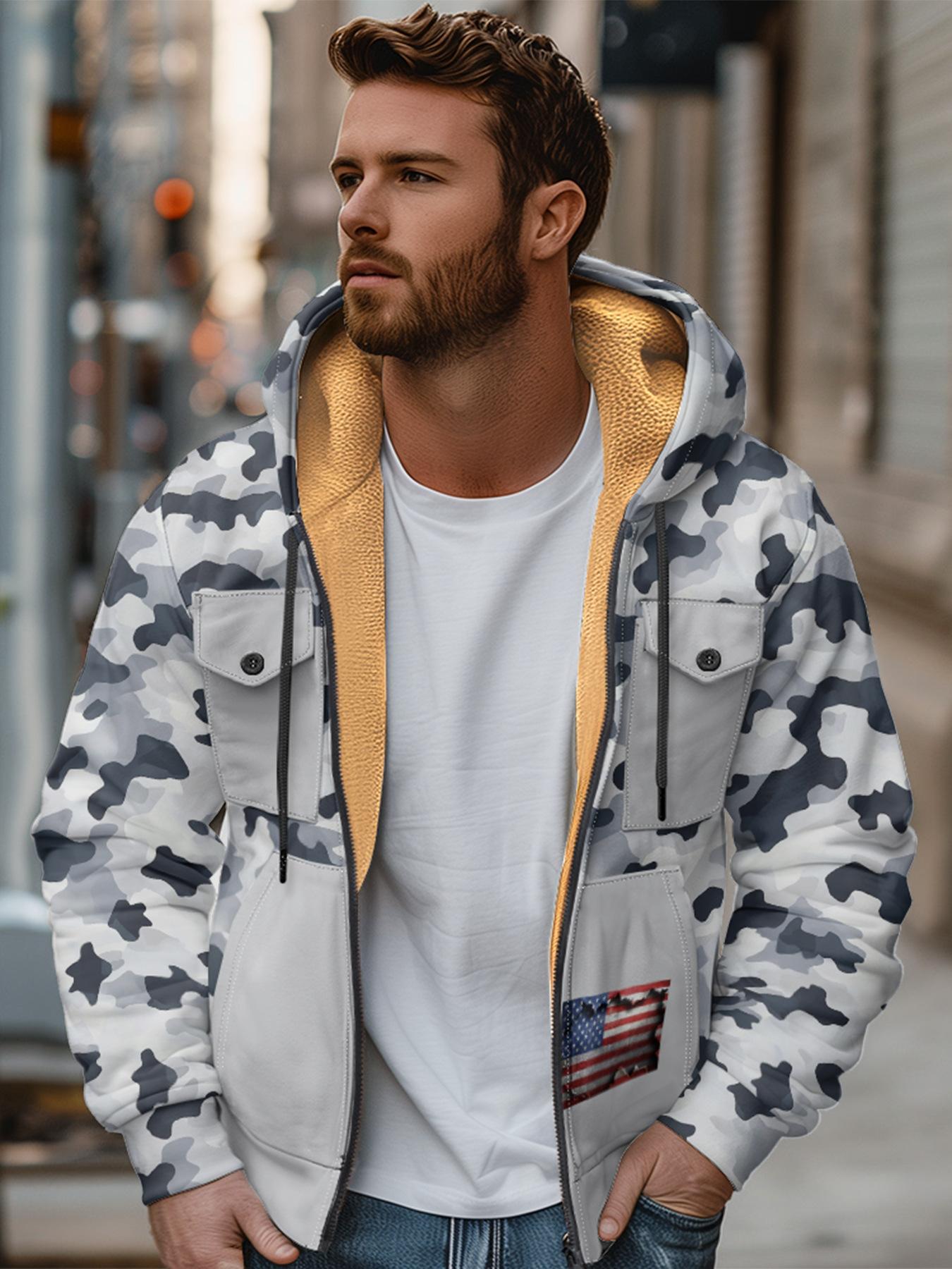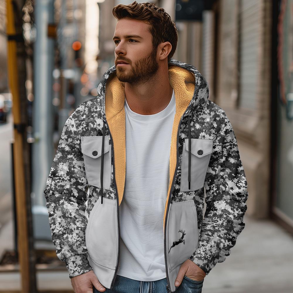 Suéter con capucha y cremallera de 10 patrones transfronterizo de Europa y Estados Unidos, multibolsillos, forro polar, forro amarillo, chaqueta acolchada de algodón, suéter