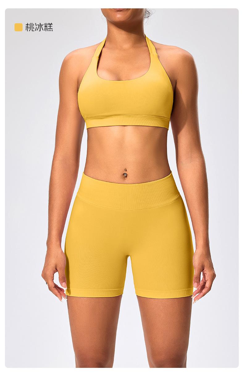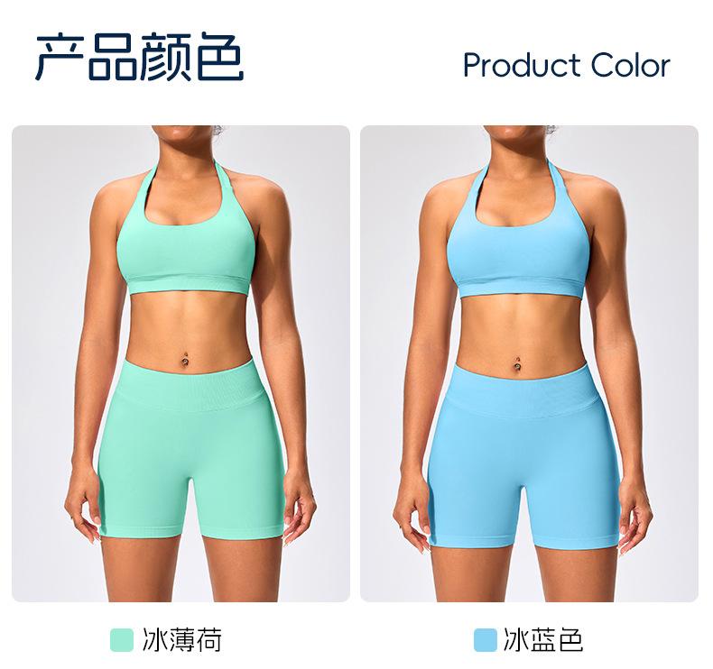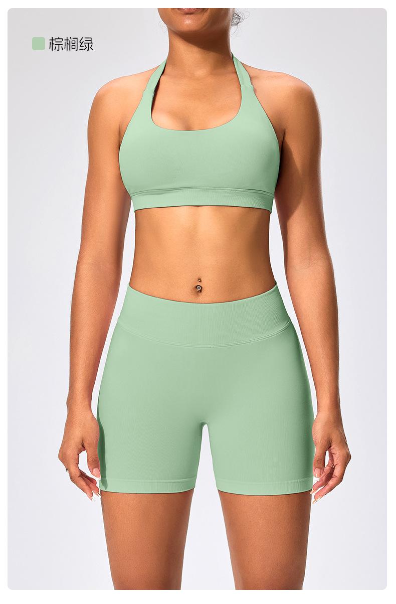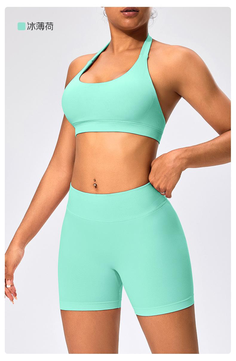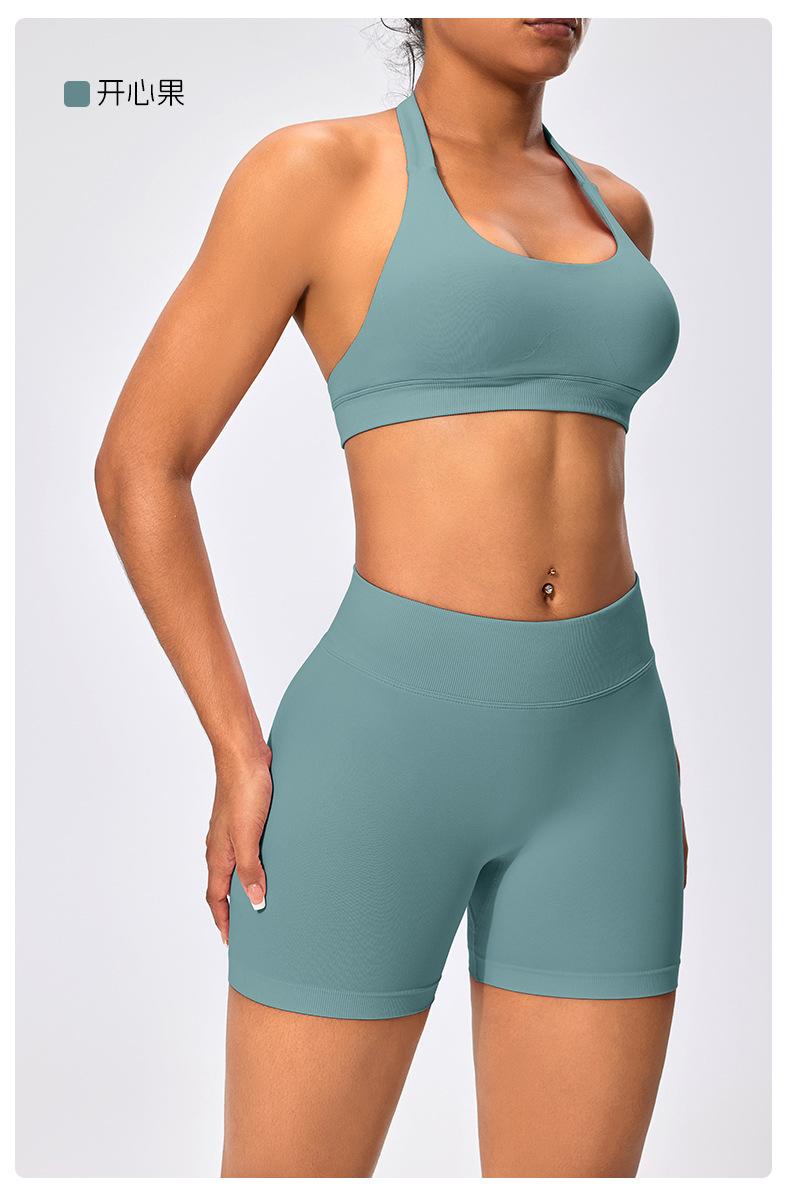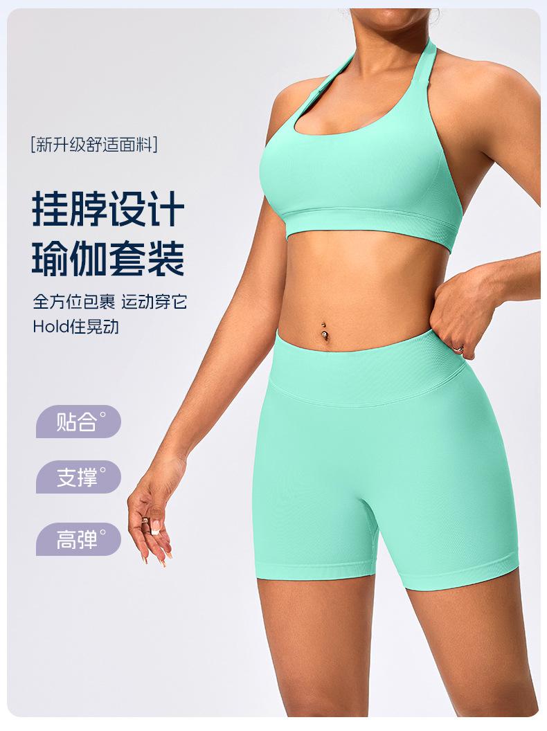 Traje de fitness para mujer, ropa interior deportiva con absorción de impactos y espalda hermosa, chaleco halter sin costuras, pantalones de yoga ajustados de cintura alta y cadera.