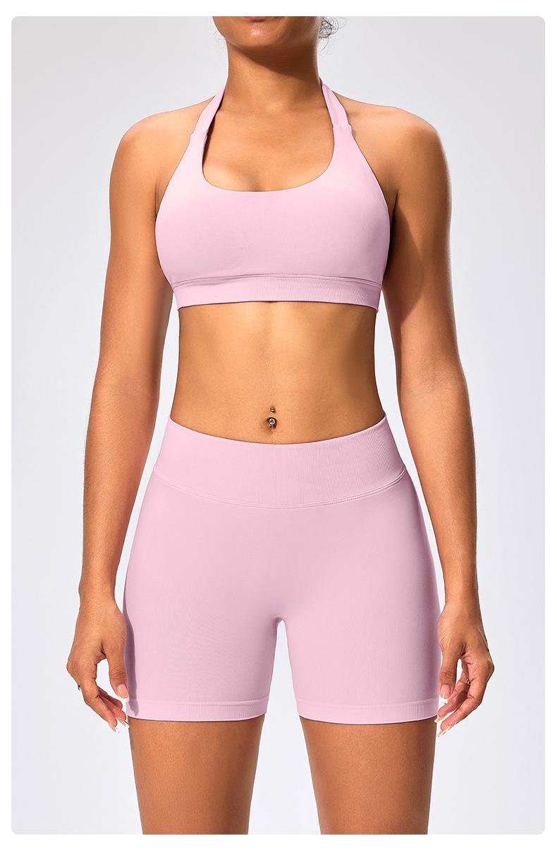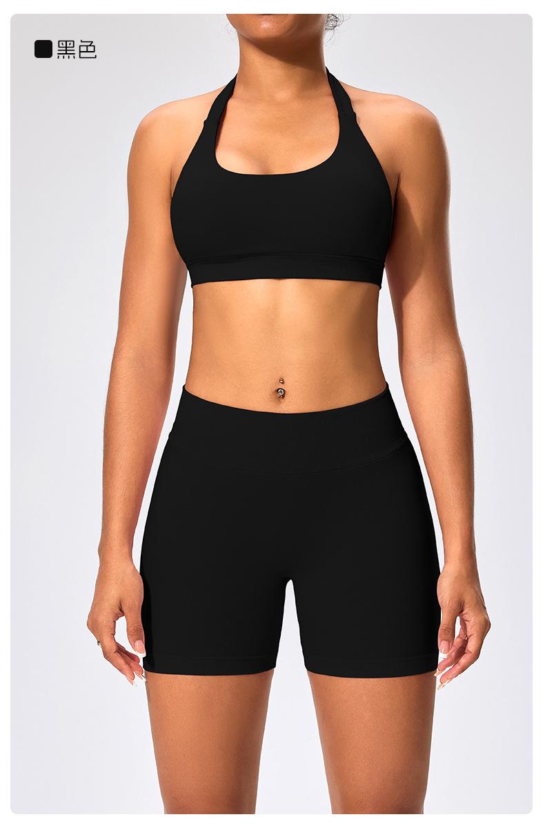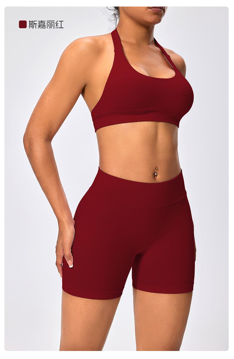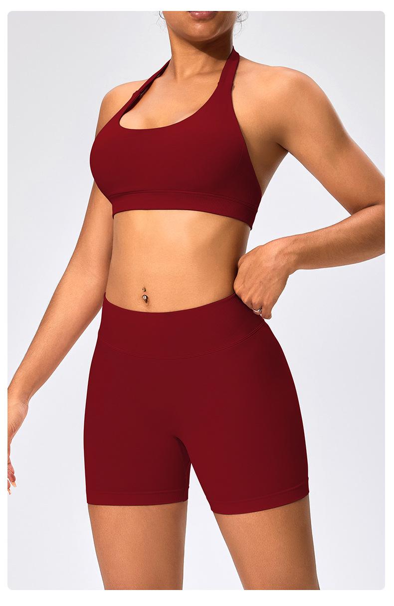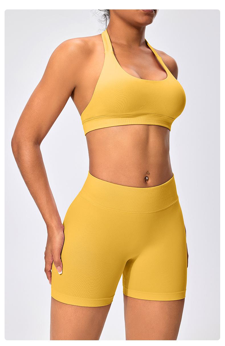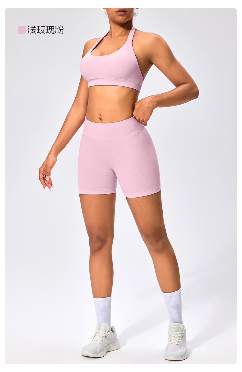 Traje de fitness para mujer, ropa interior deportiva con absorción de impactos y espalda hermosa, chaleco halter sin costuras, pantalones de yoga ajustados de cintura alta y cadera.