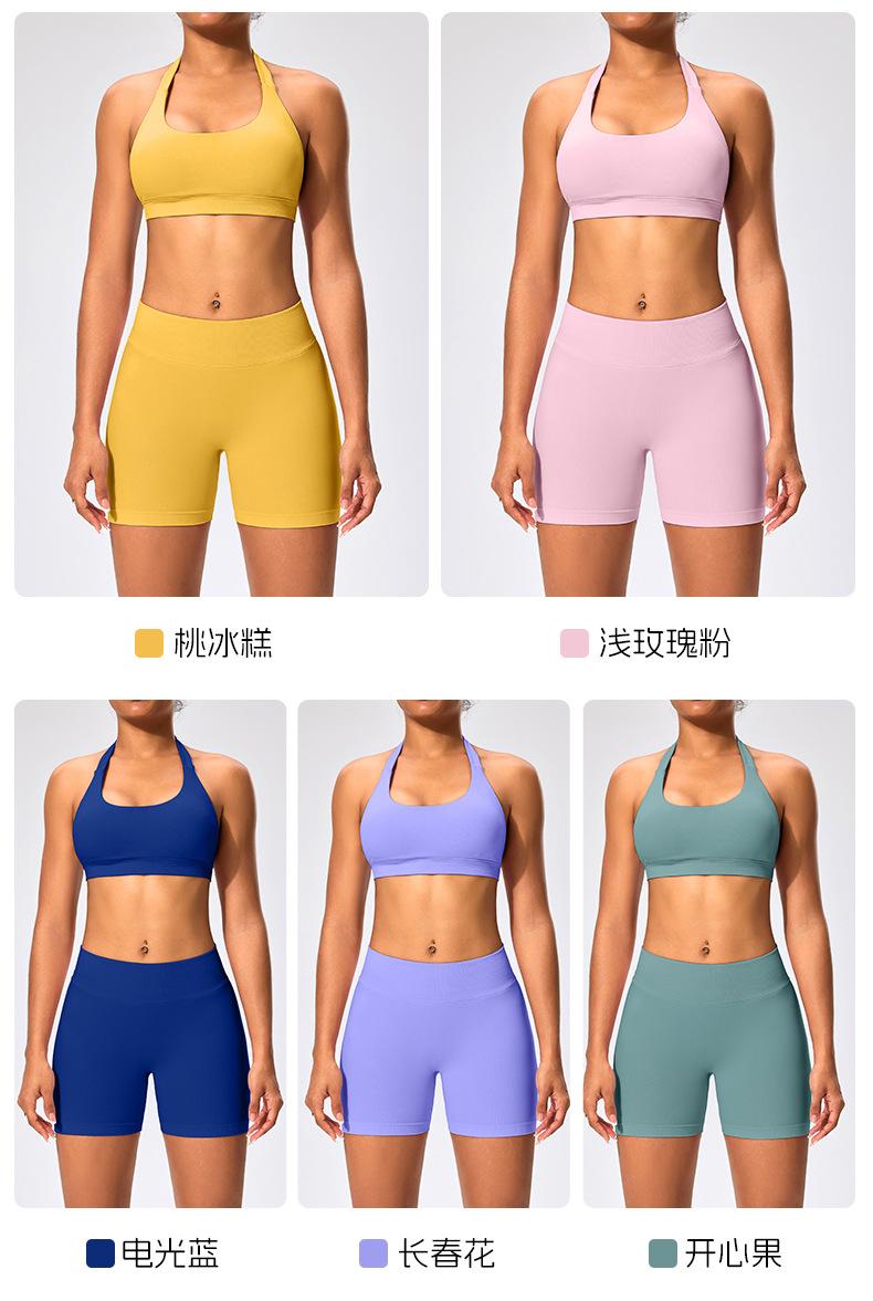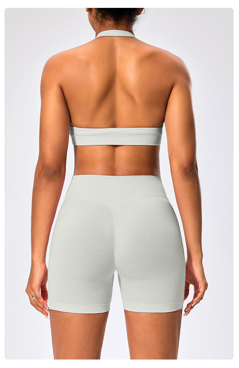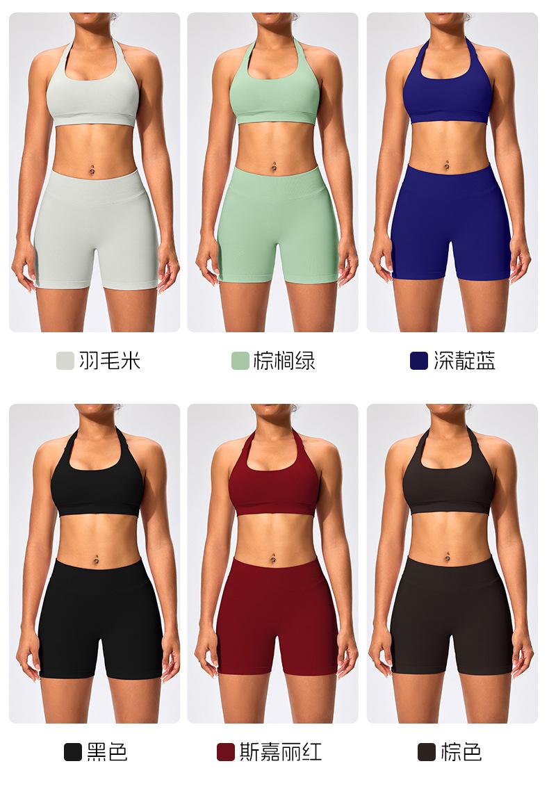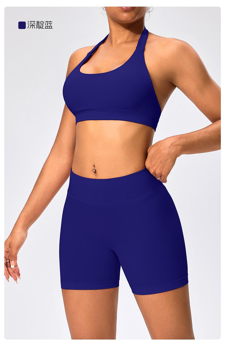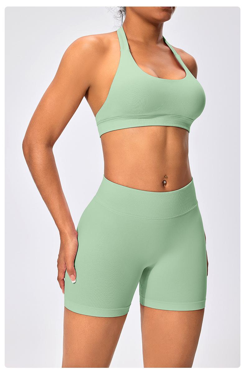 Traje de fitness para mujer, ropa interior deportiva con absorción de impactos y espalda hermosa, chaleco halter sin costuras, pantalones de yoga ajustados de cintura alta y cadera.