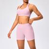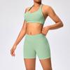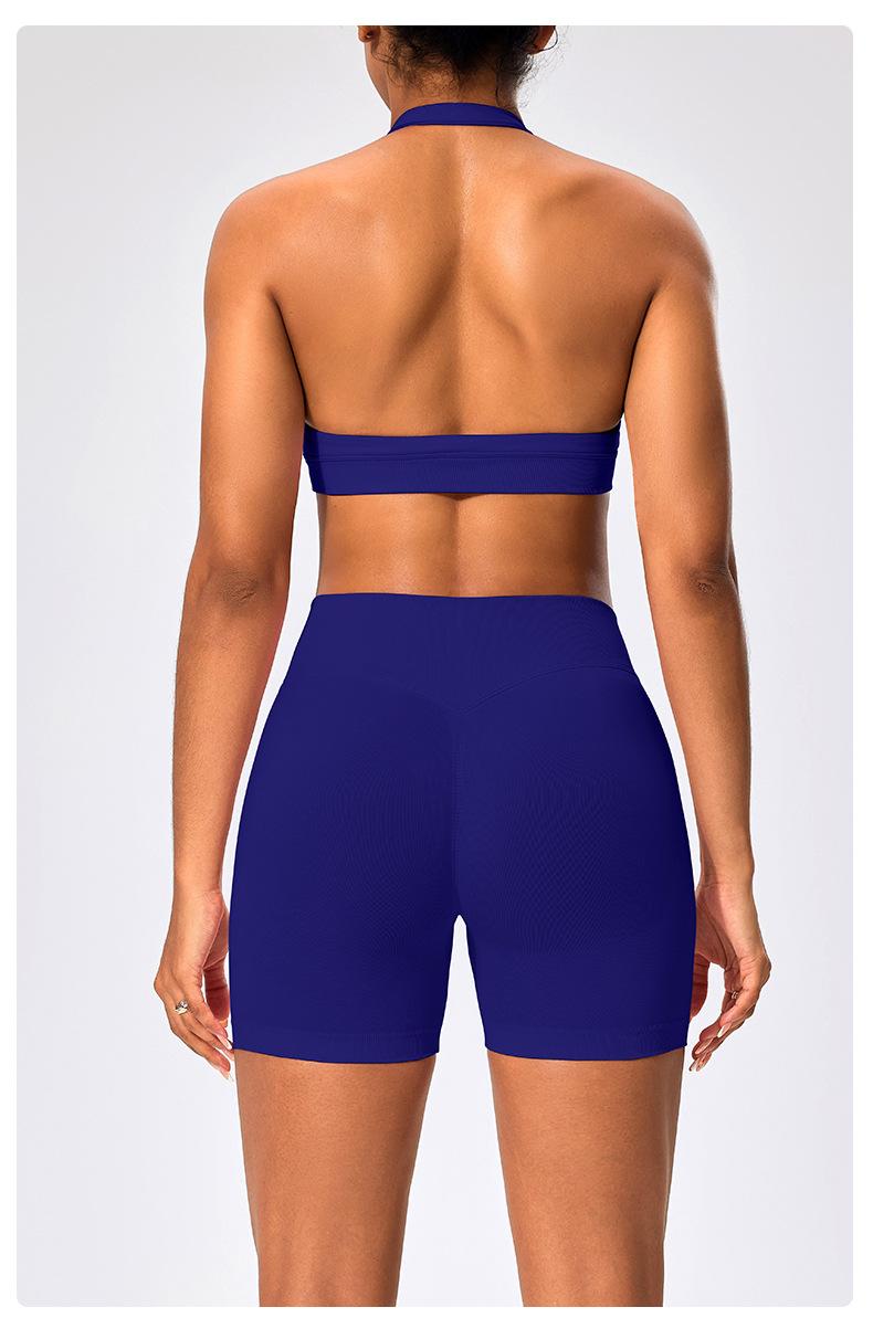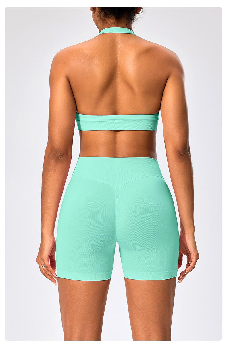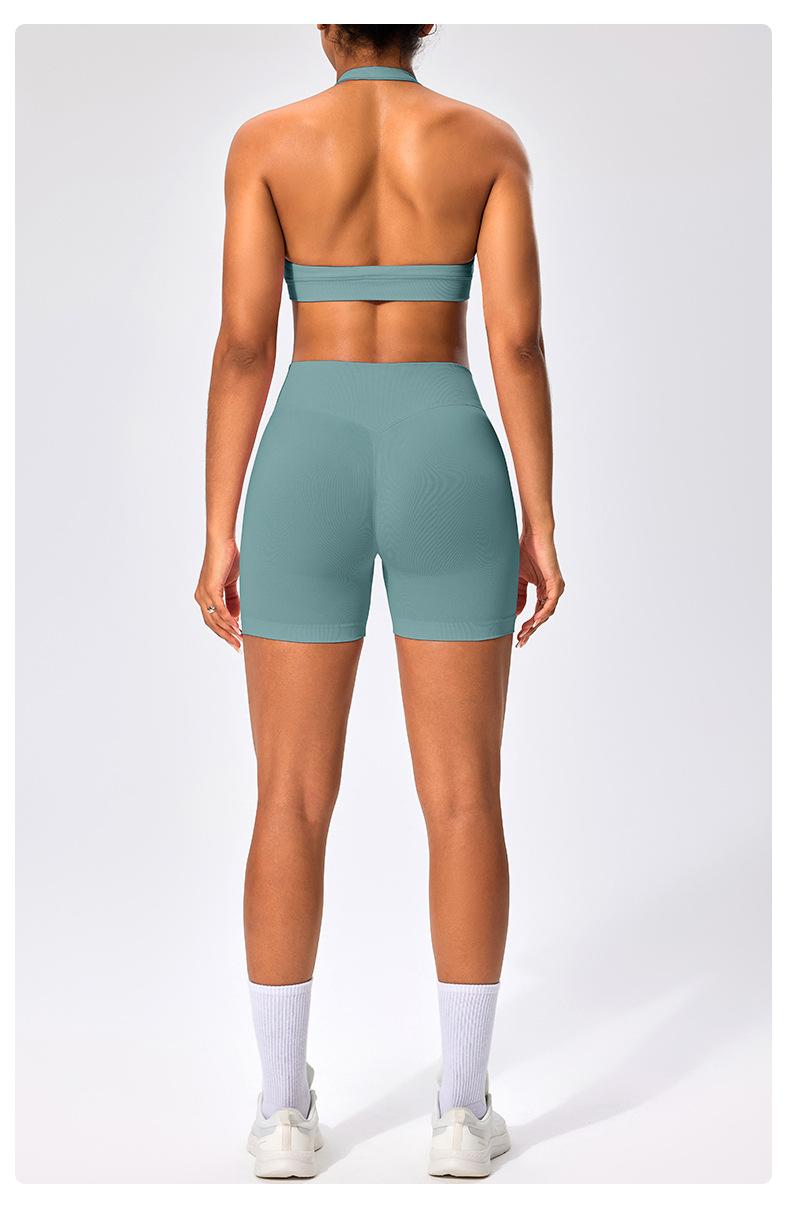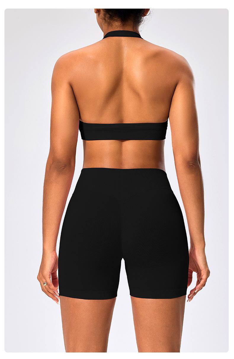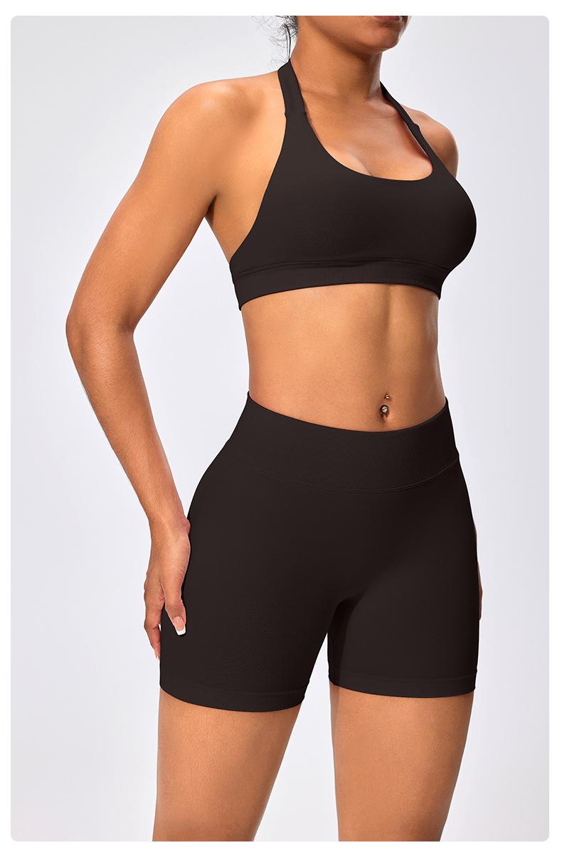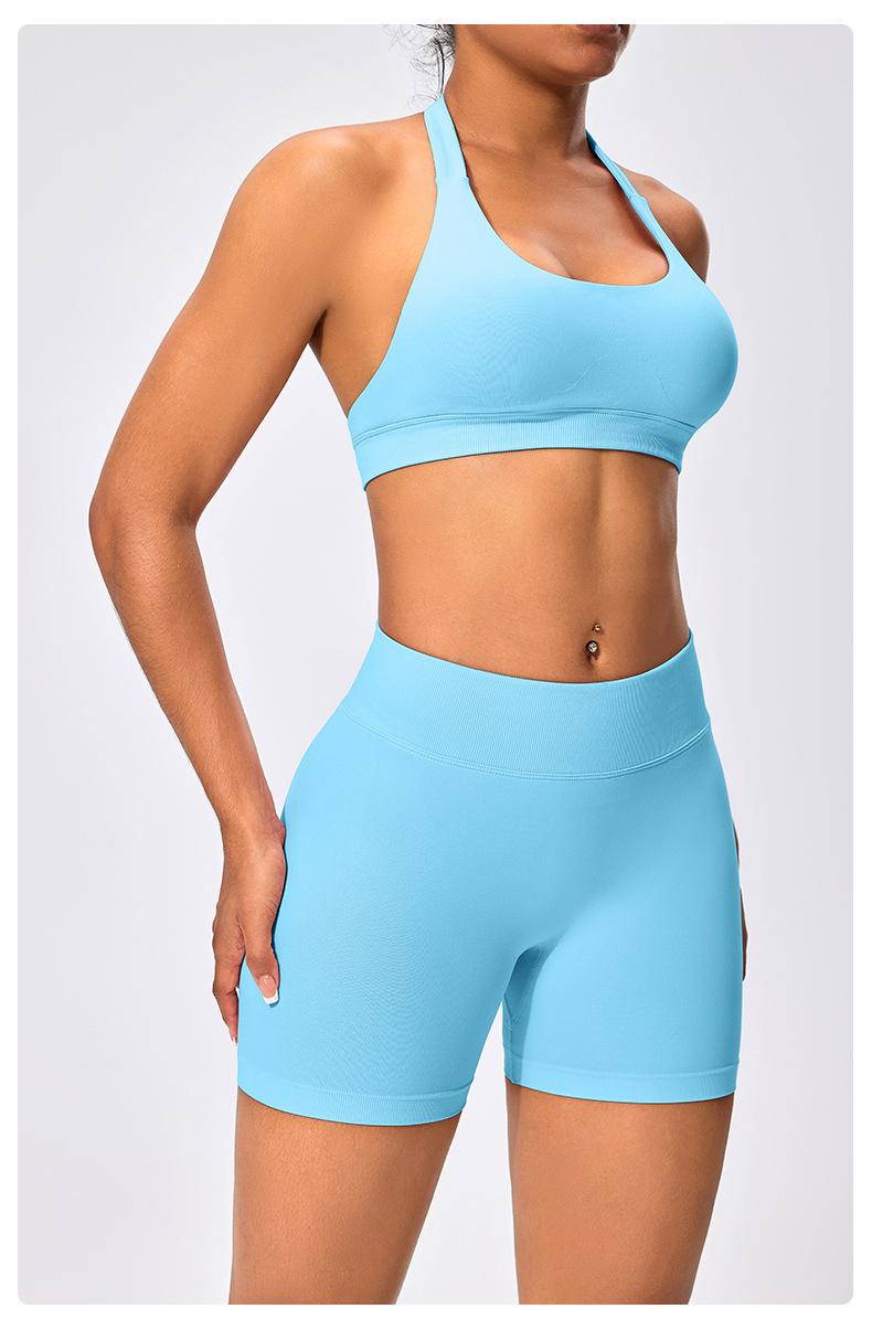 Traje de fitness para mujer, ropa interior deportiva con absorción de impactos y espalda hermosa, chaleco halter sin costuras, pantalones de yoga ajustados de cintura alta y cadera.