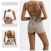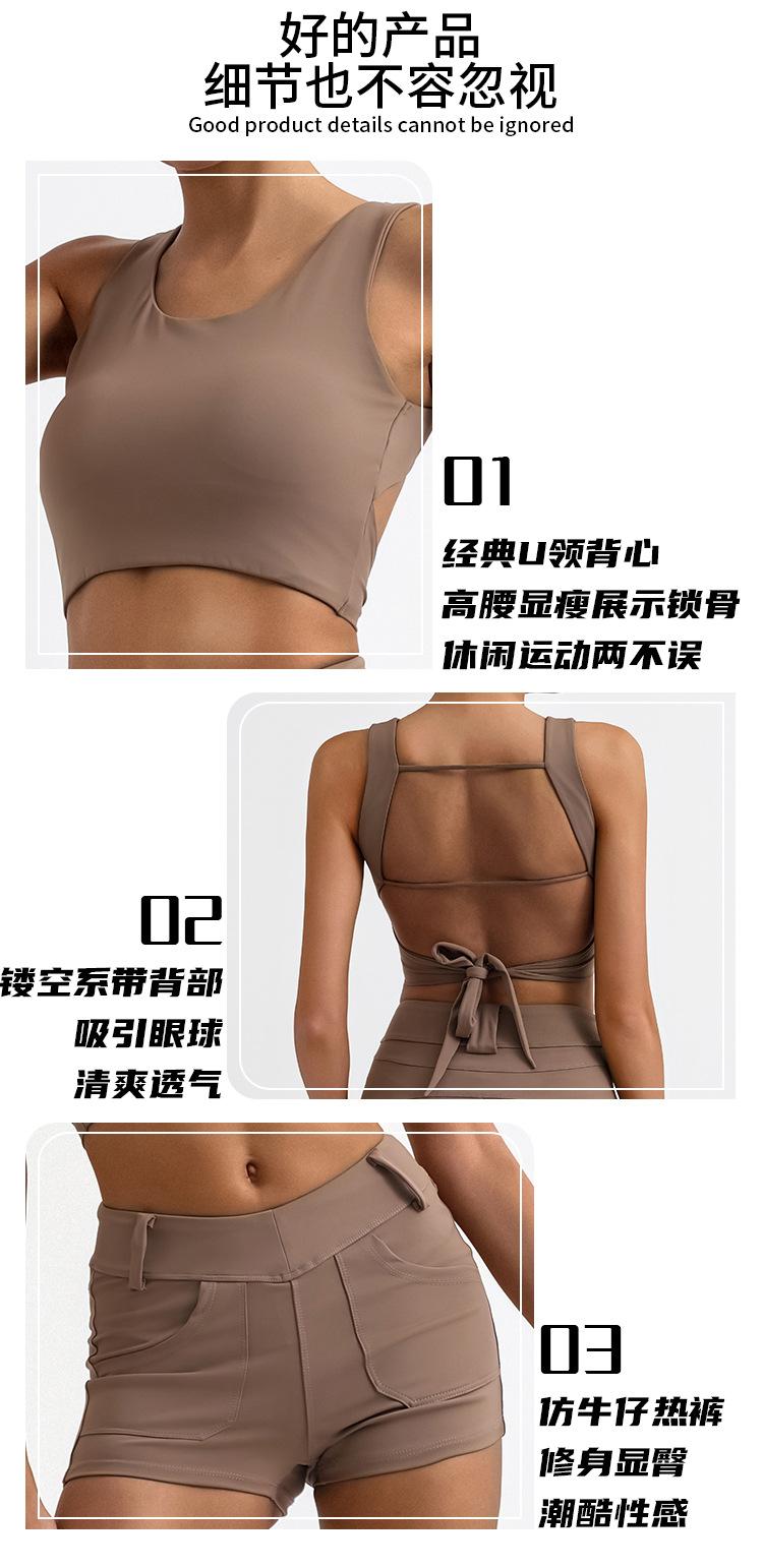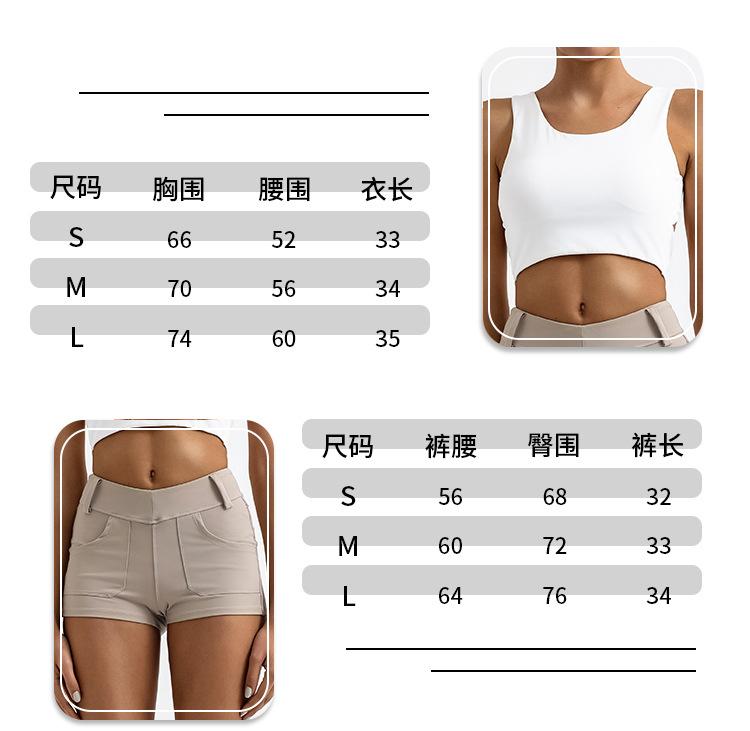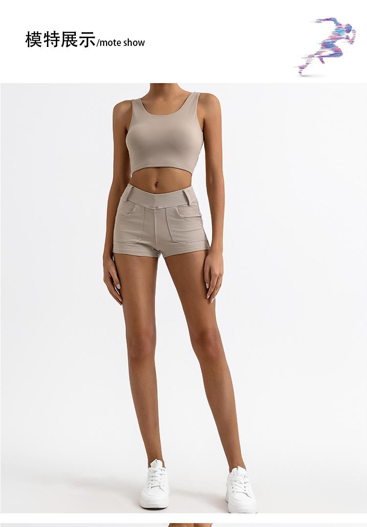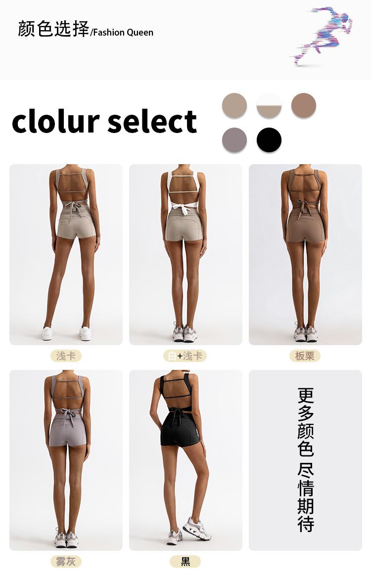 Traje de yoga deportivo transfronterizo para mujer, espalda de belleza con almohadilla para el pecho, chaleco deportivo de cintura alta, pantalones cortos de entrenamiento de cadera color melocotón, conjunto de dos piezas