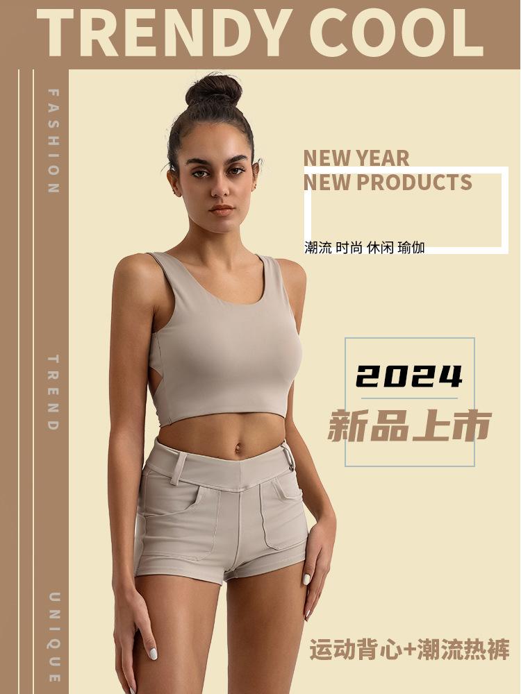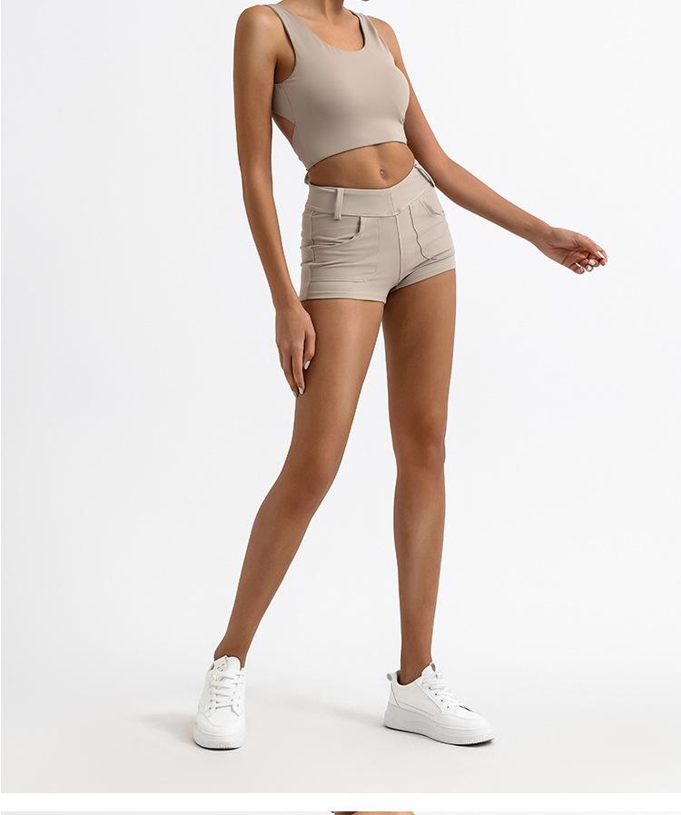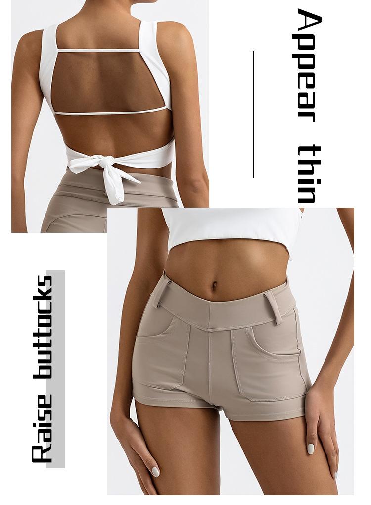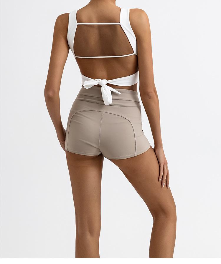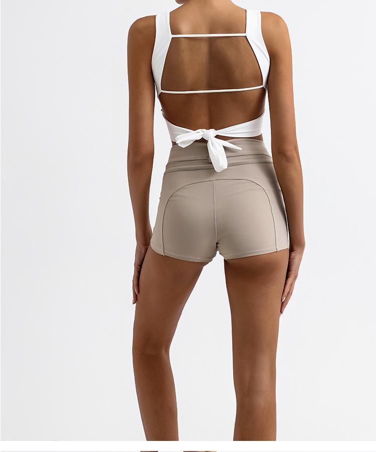 Traje de yoga deportivo transfronterizo para mujer, espalda de belleza con almohadilla para el pecho, chaleco deportivo de cintura alta, pantalones cortos de entrenamiento de cadera color melocotón, conjunto de dos piezas