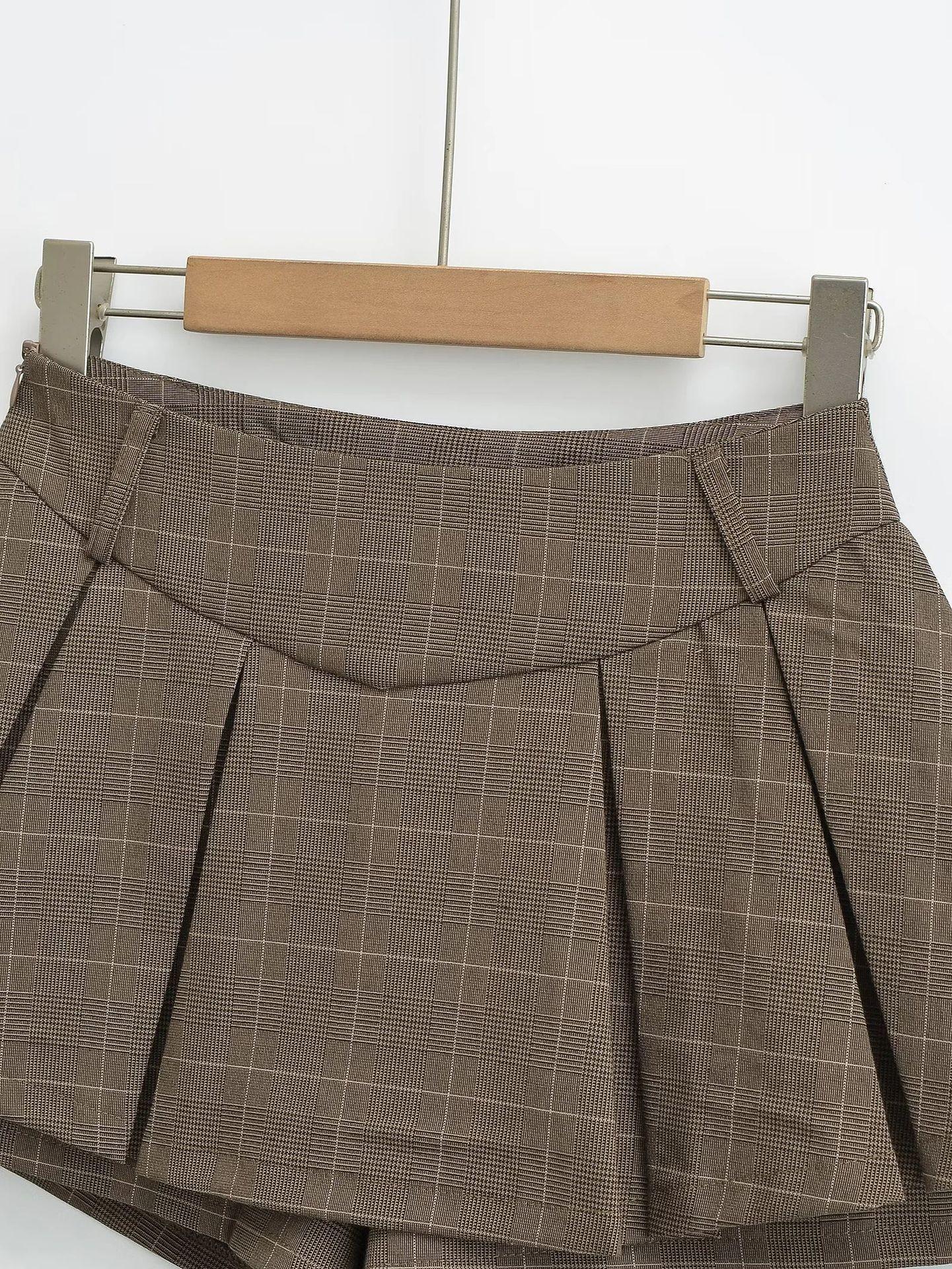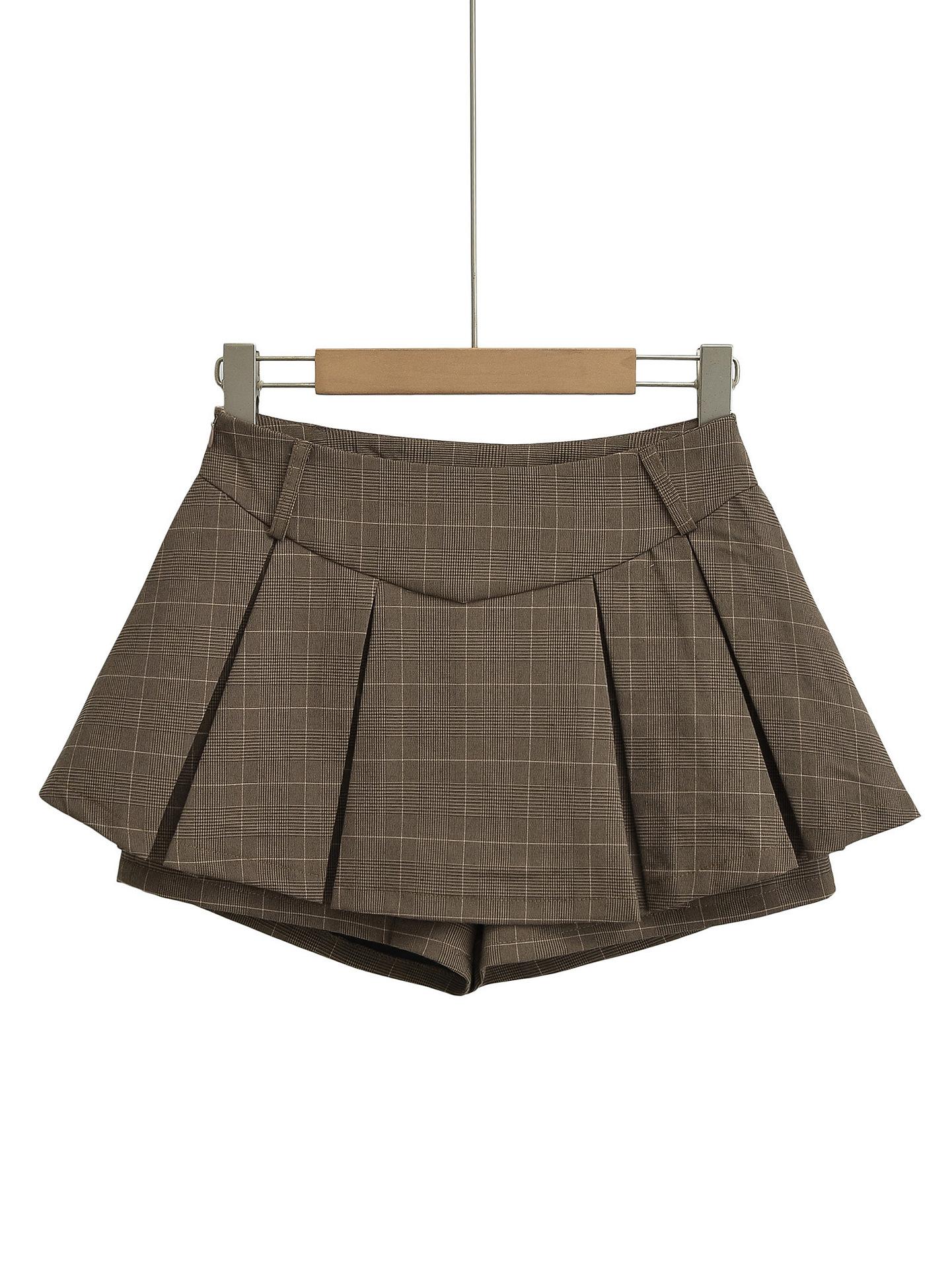 Falda plisada estilo preppy americano retro de cintura alta para mujer 2024 adelgazante línea A jk falda anti-exposición