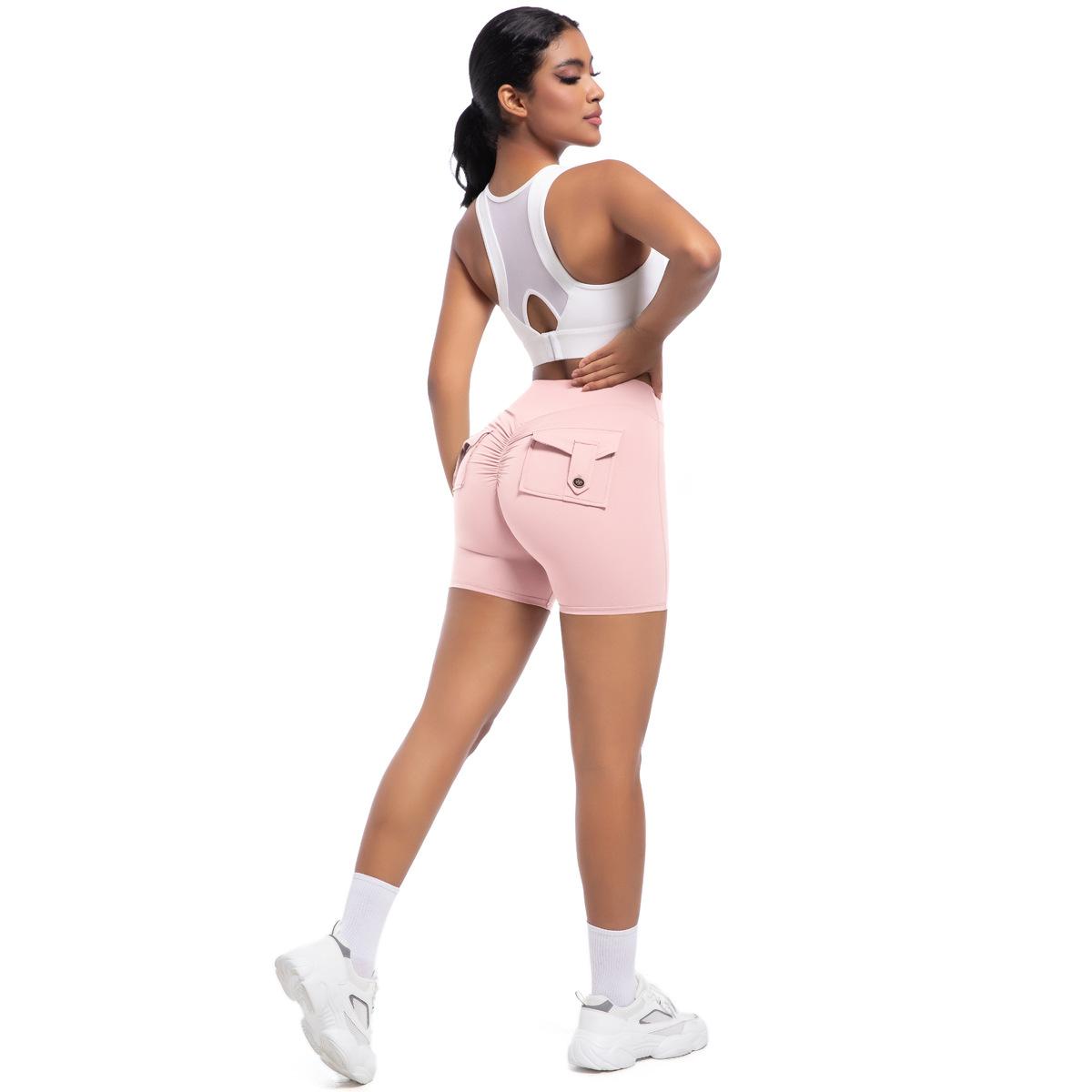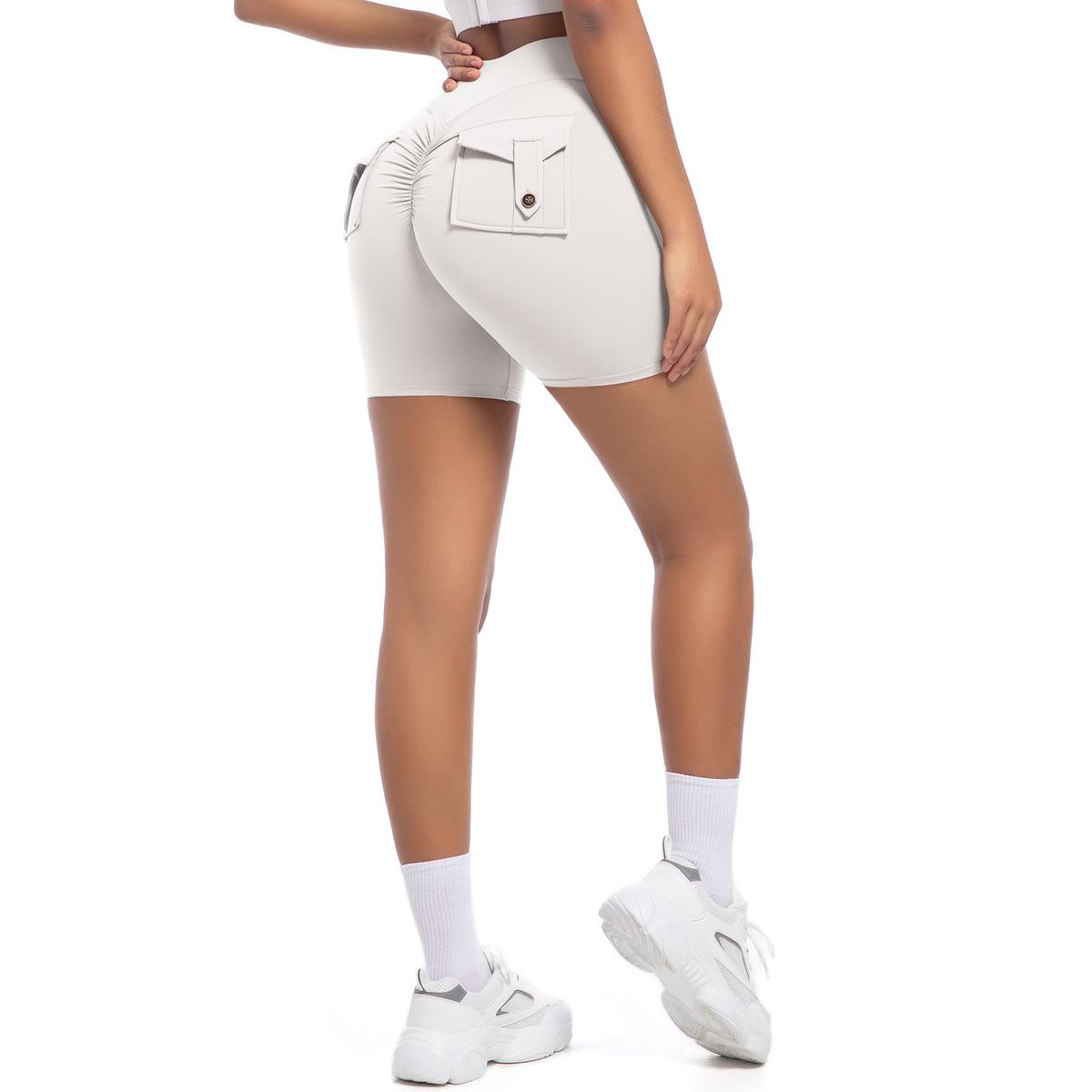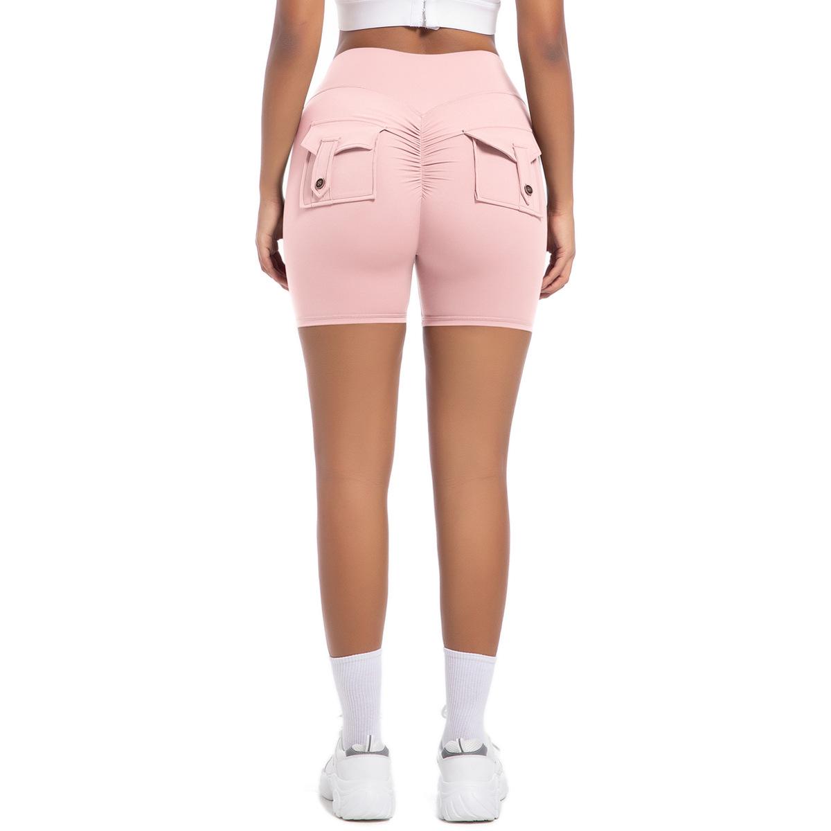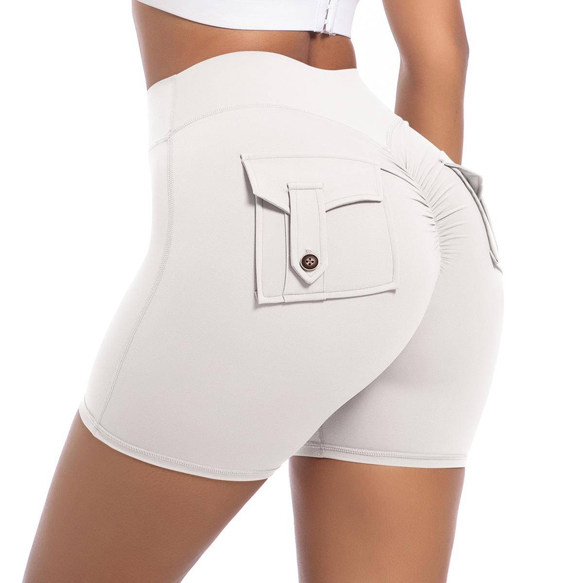 Nuevos Shorts Ajustados de Trabajo Melocotón para Cadera para Mujer Cintura Alta Elásticos Levantamiento de Cadera Botón Pantalones de Yoga de Secado Rápido para Correr Fitness