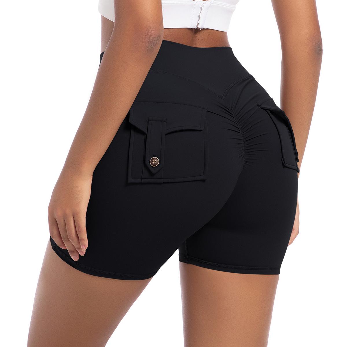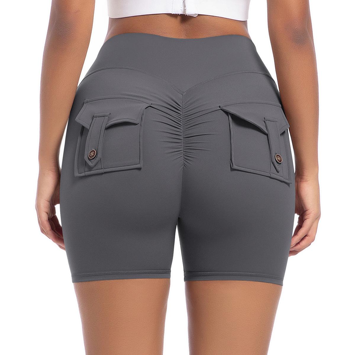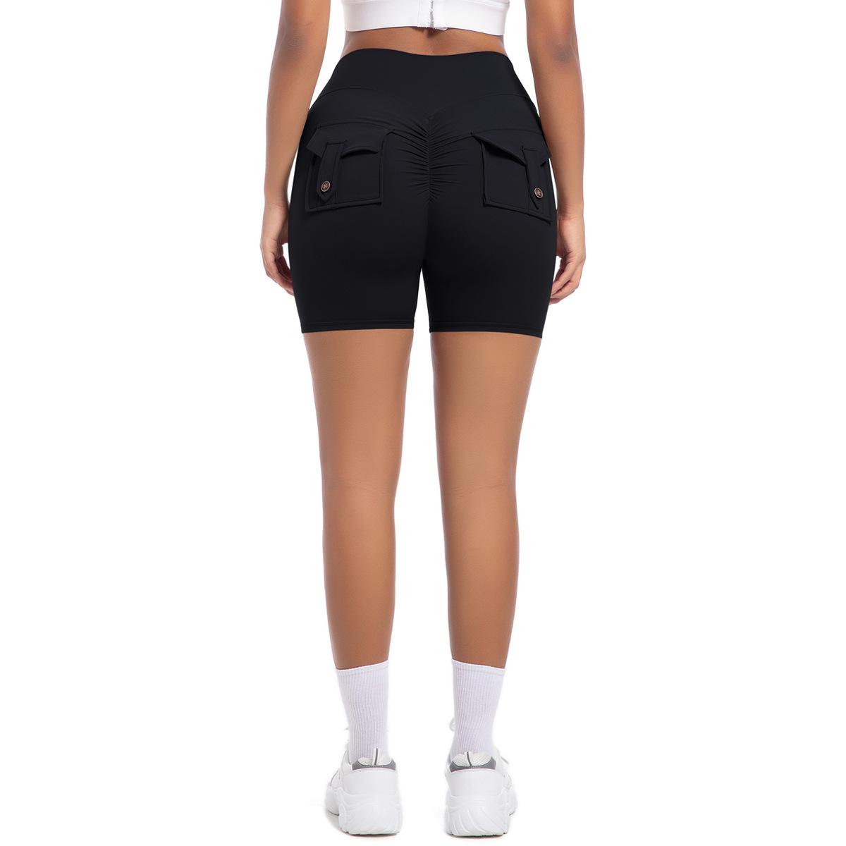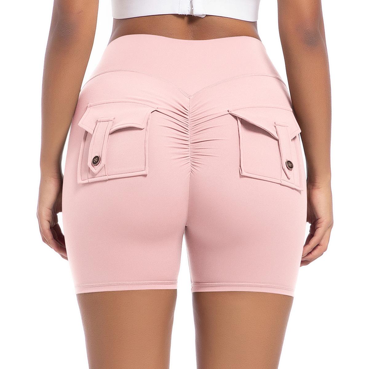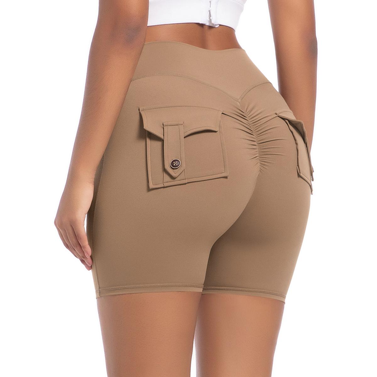 Nuevos Shorts Ajustados de Trabajo Melocotón para Cadera para Mujer Cintura Alta Elásticos Levantamiento de Cadera Botón Pantalones de Yoga de Secado Rápido para Correr Fitness