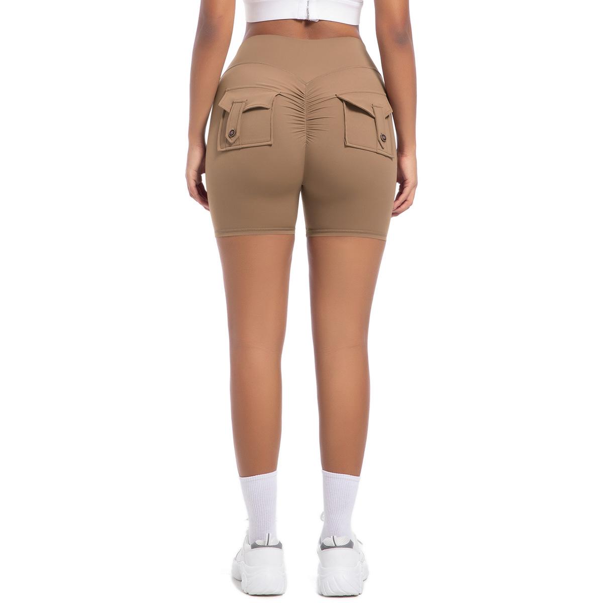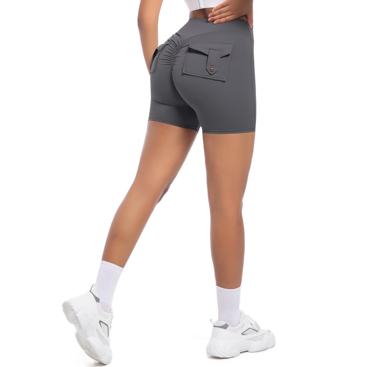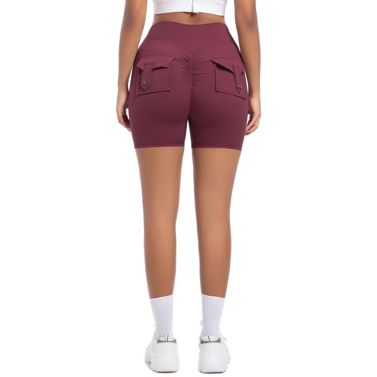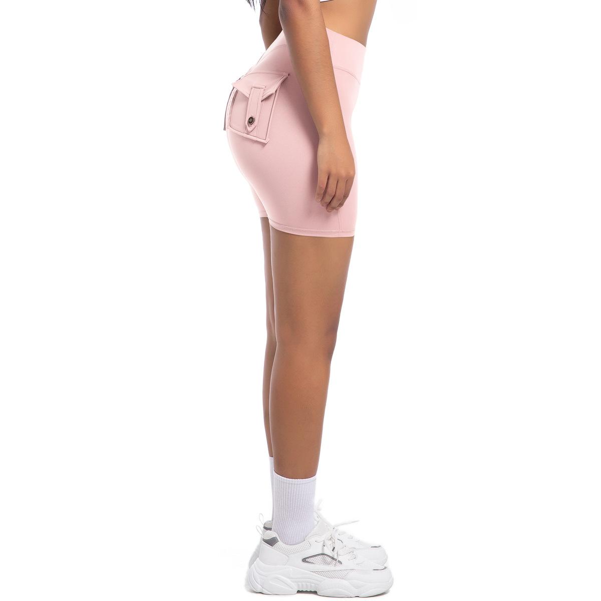 Nuevos Shorts Ajustados de Trabajo Melocotón para Cadera para Mujer Cintura Alta Elásticos Levantamiento de Cadera Botón Pantalones de Yoga de Secado Rápido para Correr Fitness