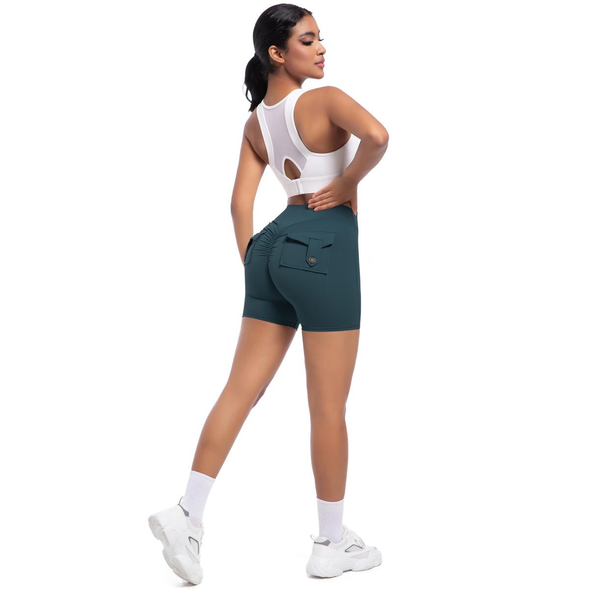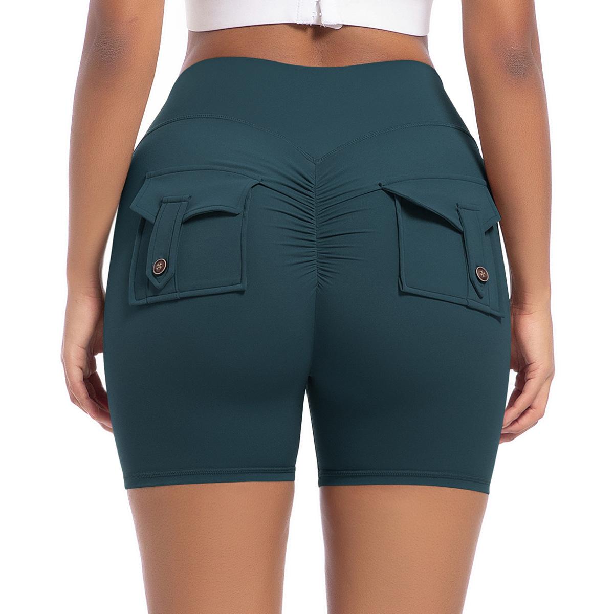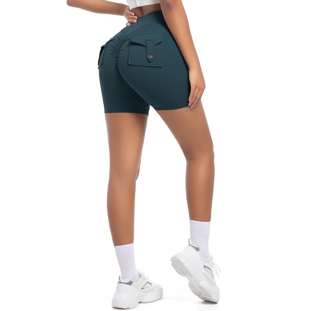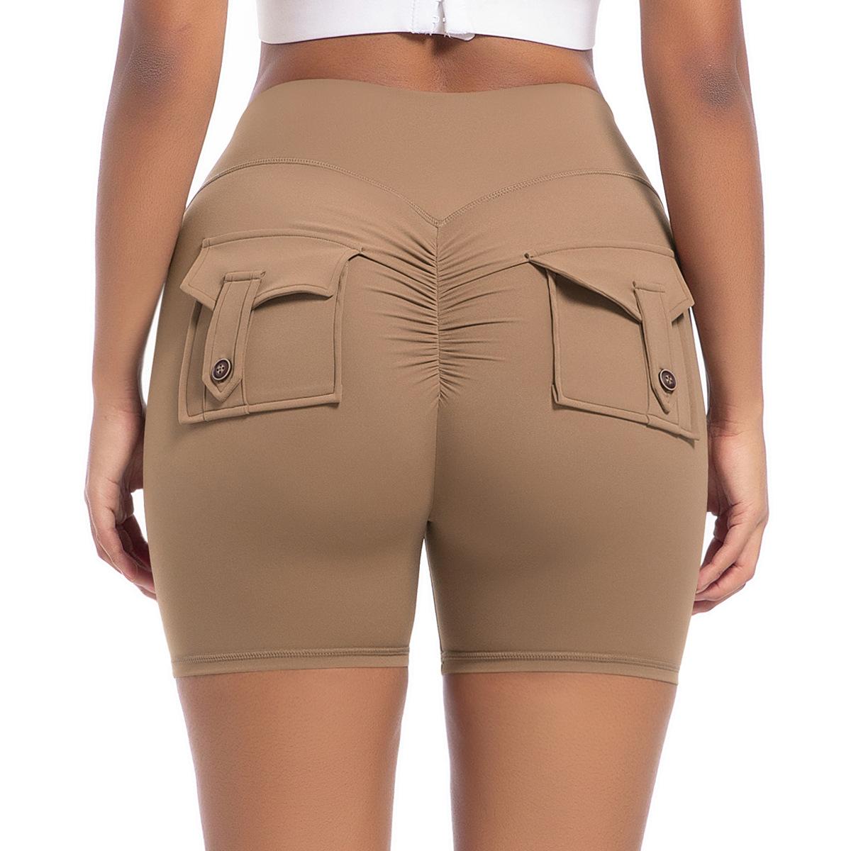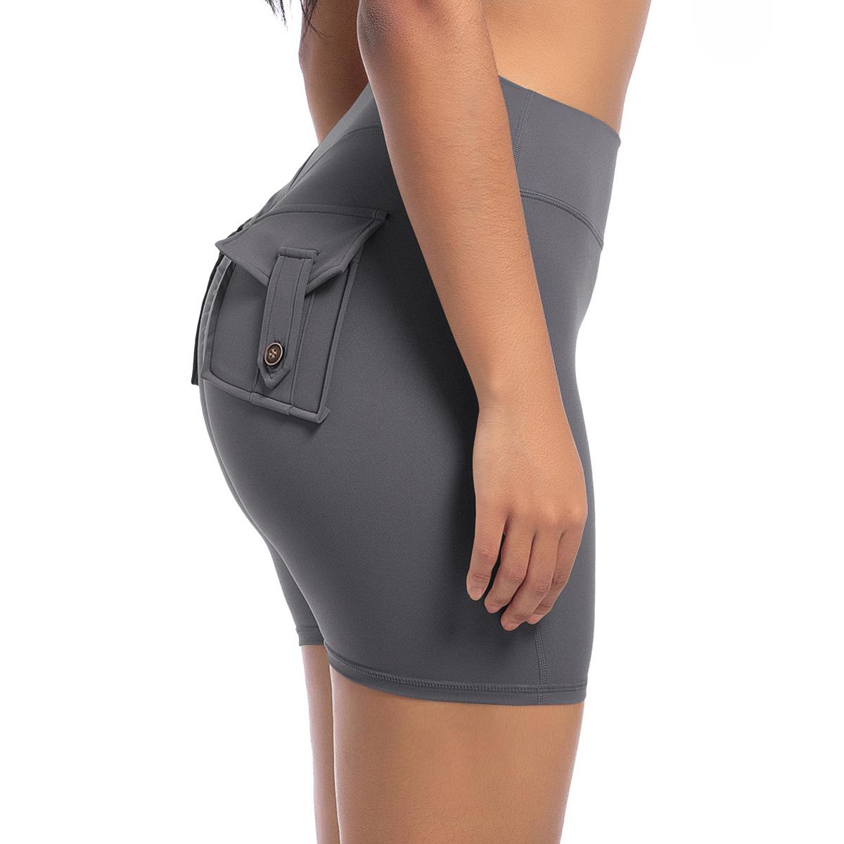 Nuevos Shorts Ajustados de Trabajo Melocotón para Cadera para Mujer Cintura Alta Elásticos Levantamiento de Cadera Botón Pantalones de Yoga de Secado Rápido para Correr Fitness