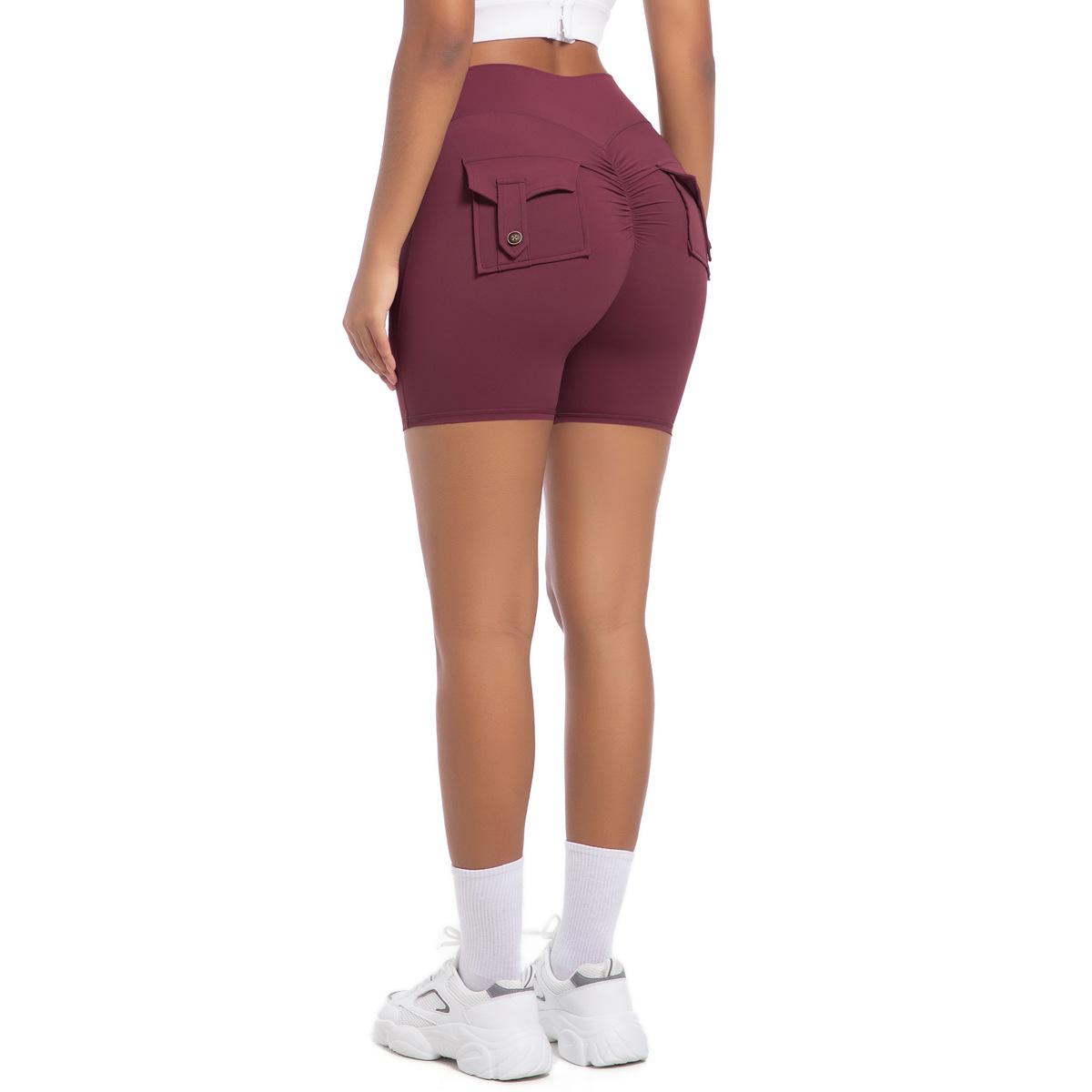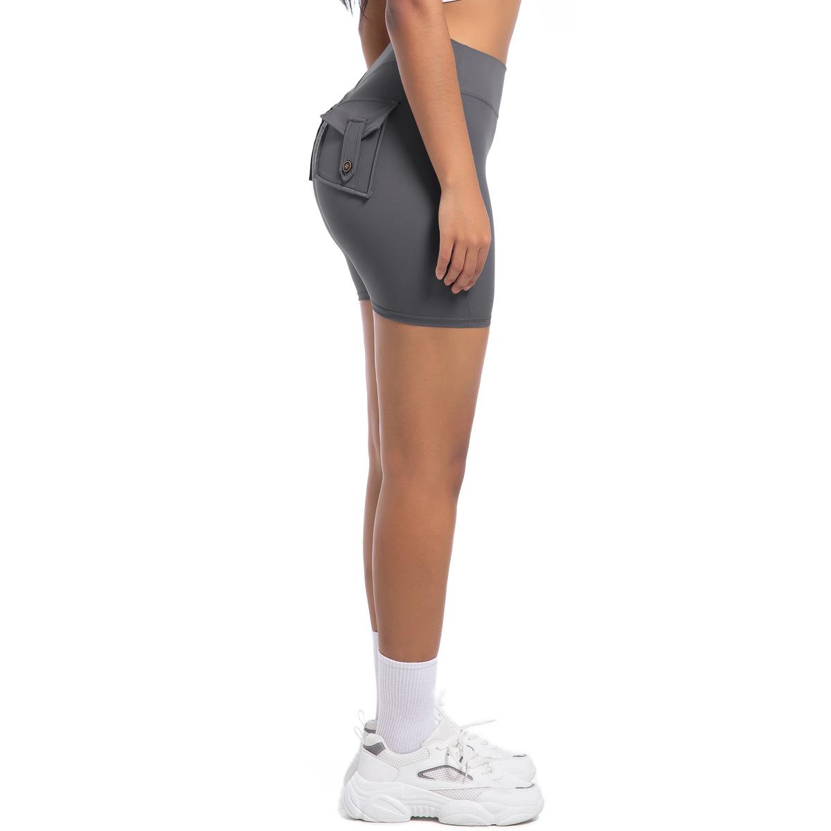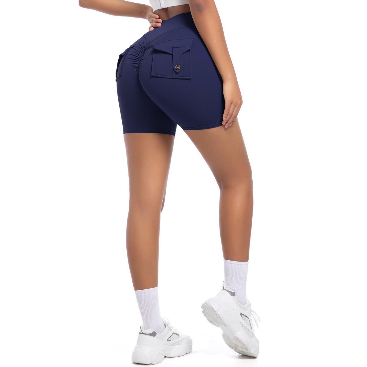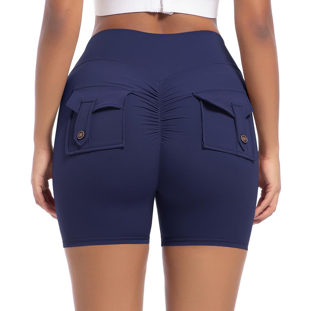 Nuevos Shorts Ajustados de Trabajo Melocotón para Cadera para Mujer Cintura Alta Elásticos Levantamiento de Cadera Botón Pantalones de Yoga de Secado Rápido para Correr Fitness