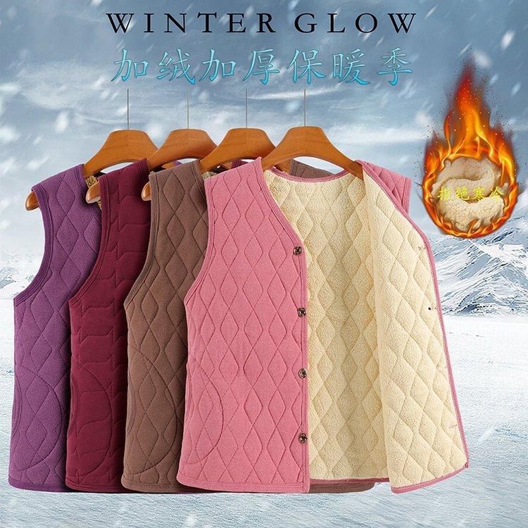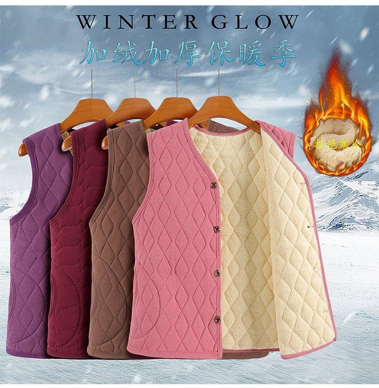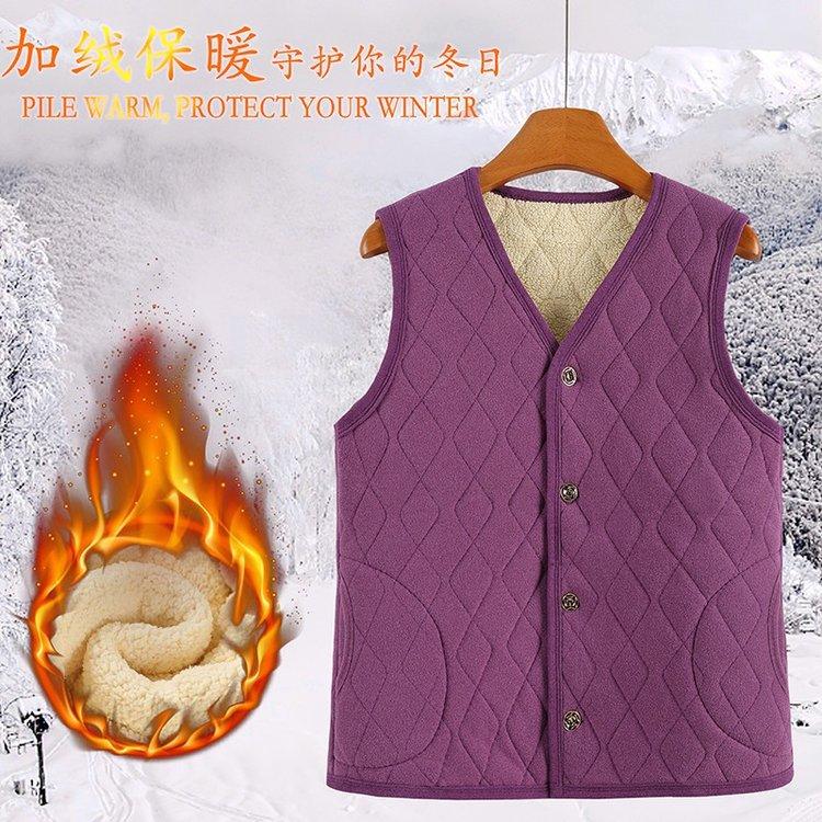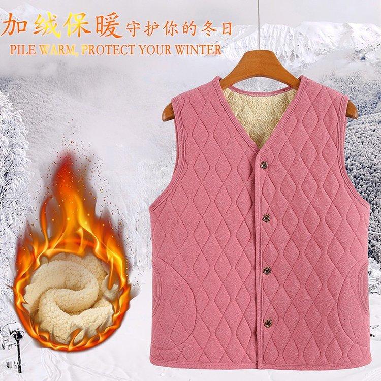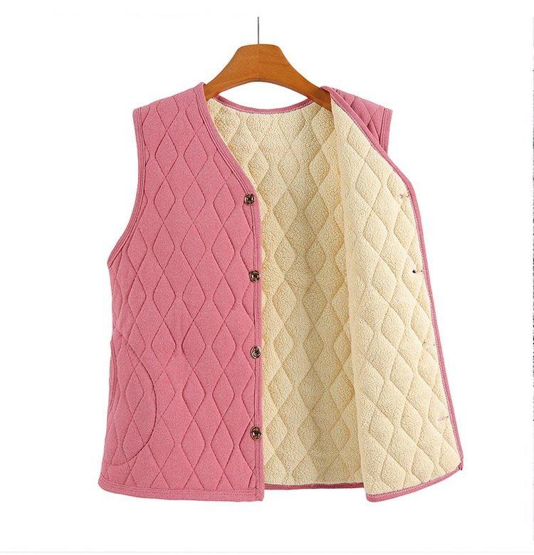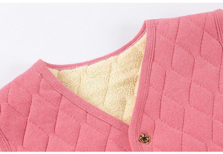 Chaleco de terciopelo de otoño e invierno para mujer, forro polar, grueso y cálido, con cuello en V, interior de mamá, forro polar de doble cara, algodón, clip de caballo