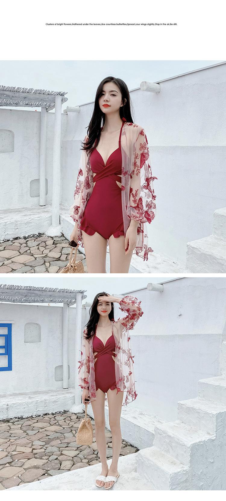 Traje de baño para mujer conservador adelgazante que cubre el vientre sexy blusa de manga larga estilo hada fan 2020 nuevo aguas termales
