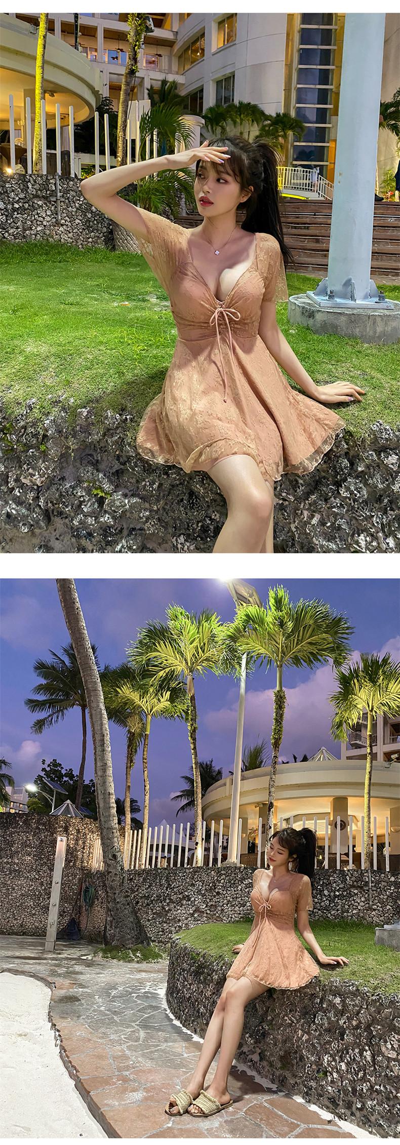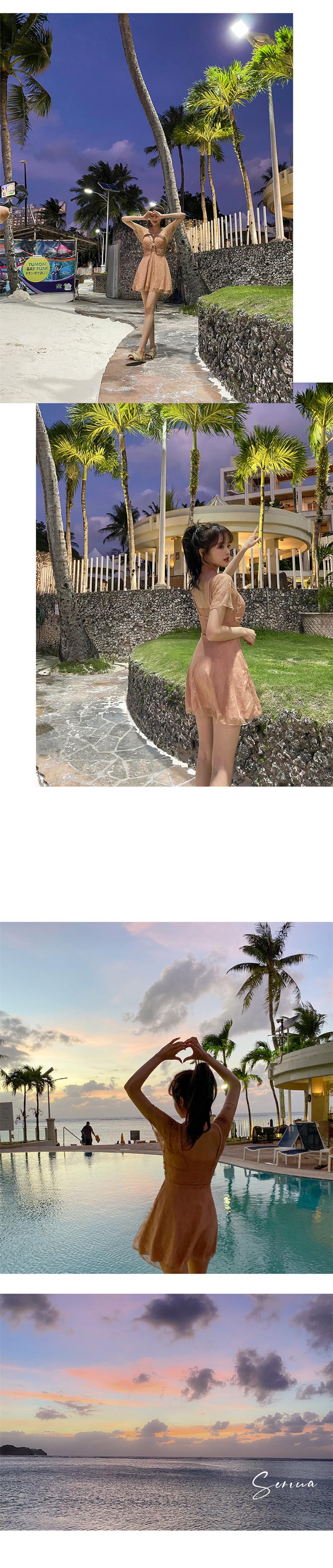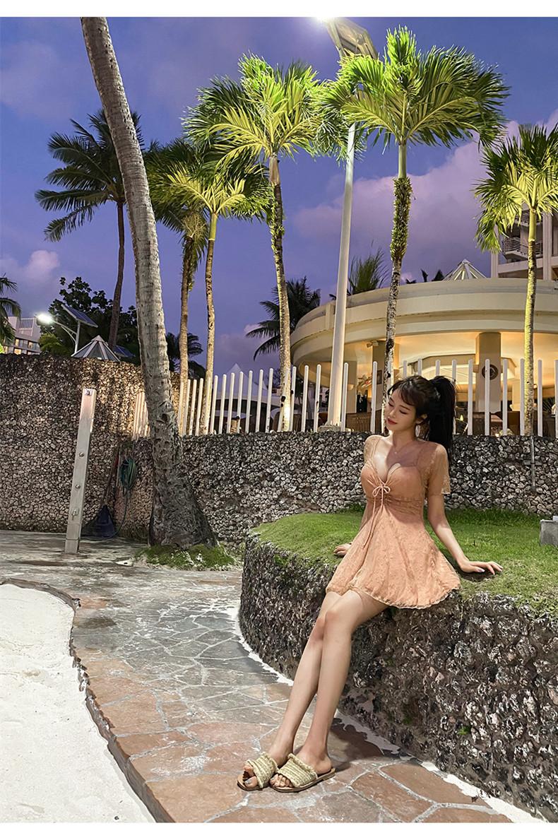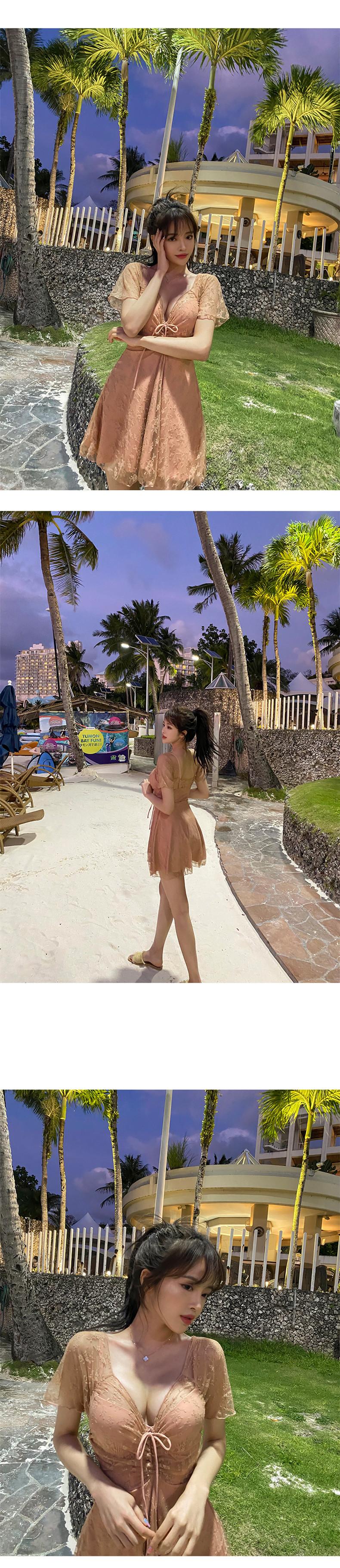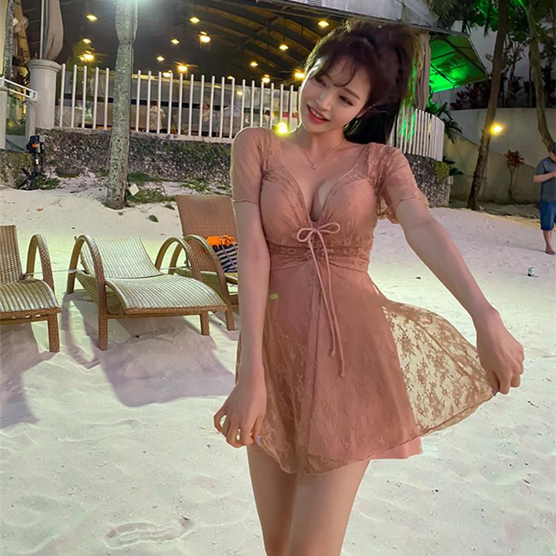 Traje de Baño Encaje Estilo Coreano Sexy Traje de Baño para Aguas Termales de Mujer Conservador Adelgazante Cubre Carne Cubre Vientre Falda Traje de Baño Vacacional para Mujer