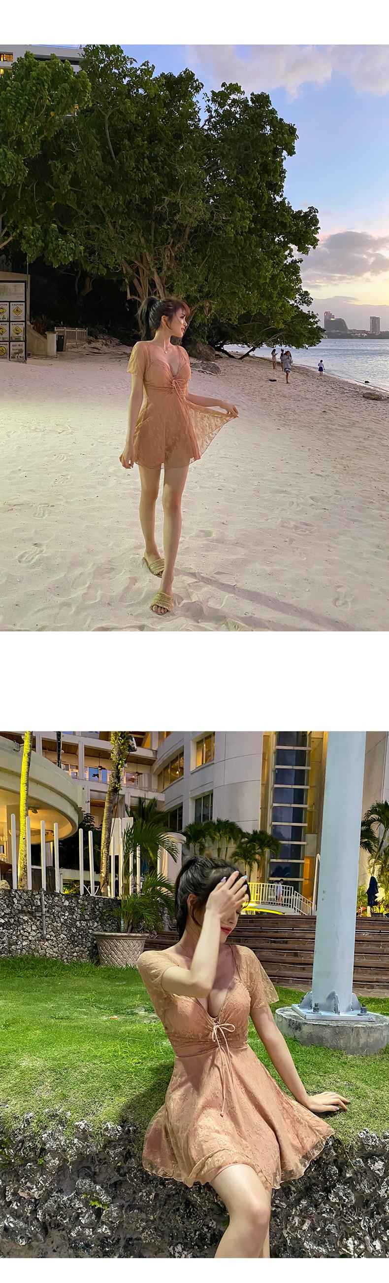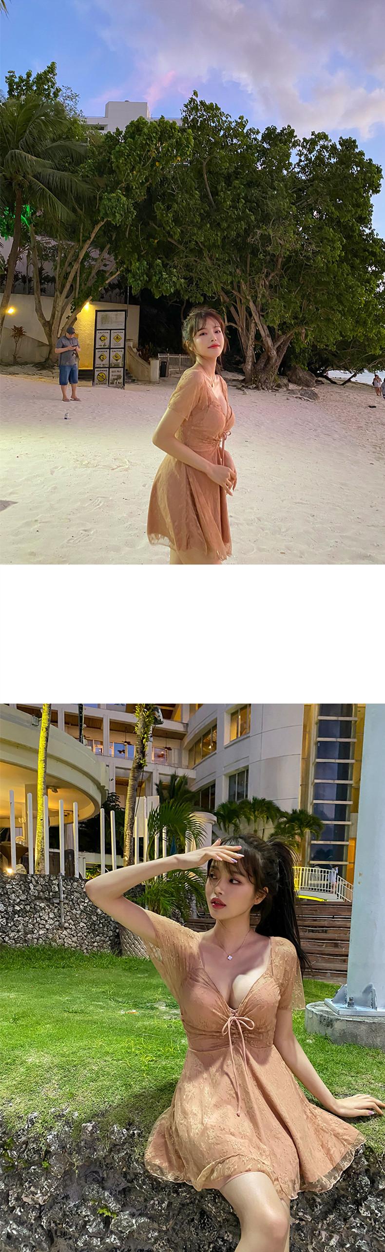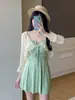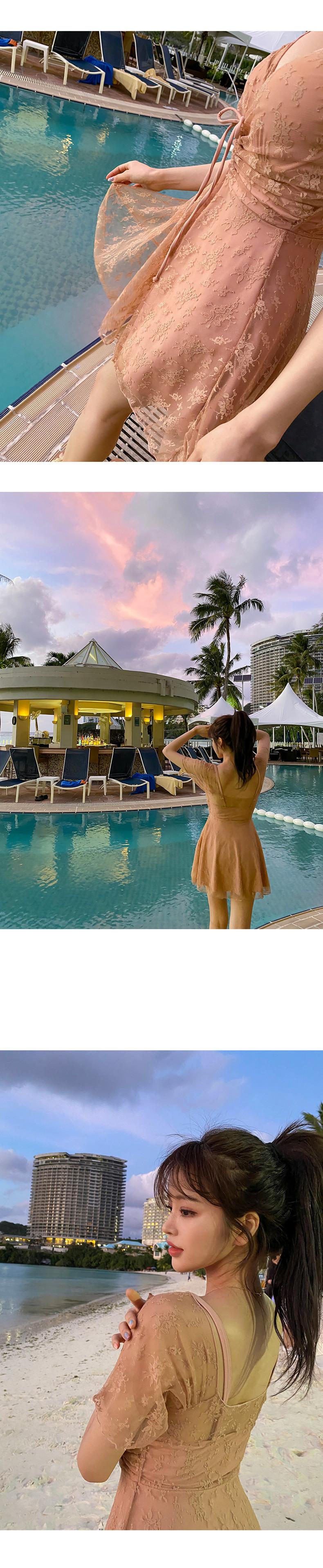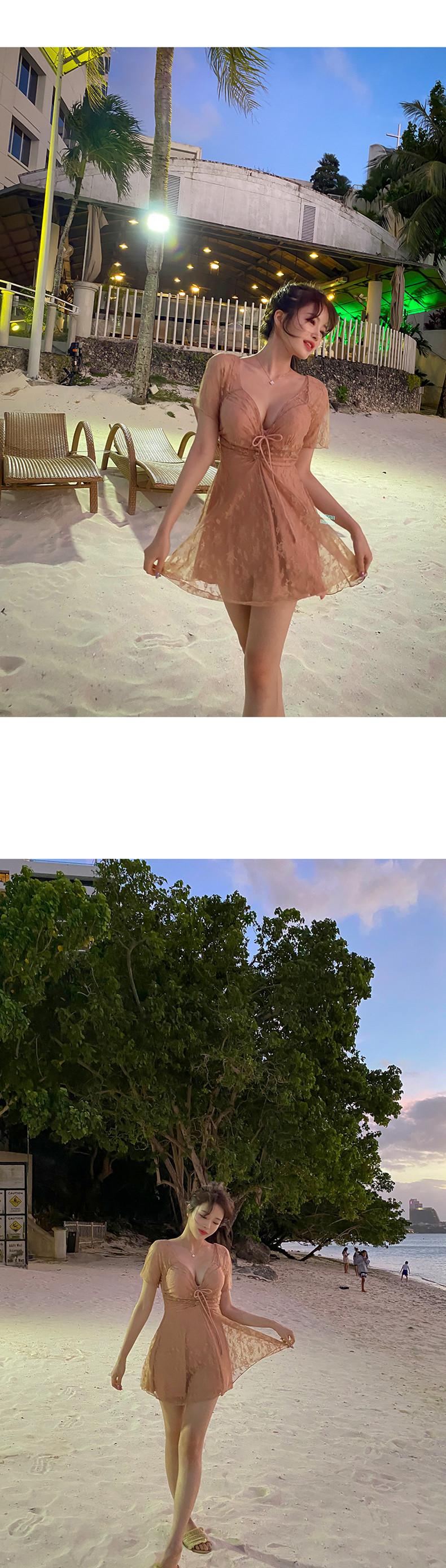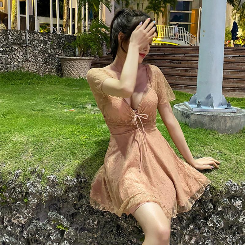 Traje de Baño Encaje Estilo Coreano Sexy Traje de Baño para Aguas Termales de Mujer Conservador Adelgazante Cubre Carne Cubre Vientre Falda Traje de Baño Vacacional para Mujer