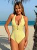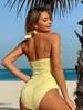Traje de baño 2024 para mujer, nuevo bikini de color liso, estilo vacaciones playa, para mujer, estilo de baño Comercio exterior