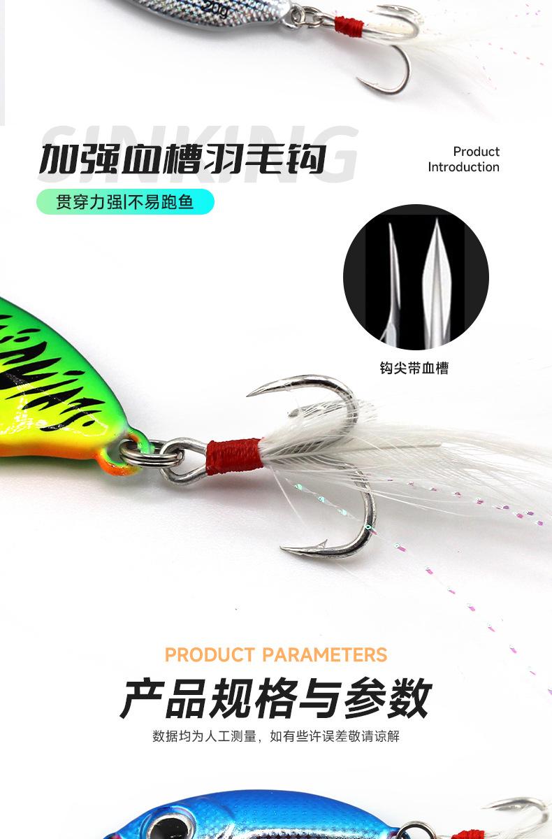 Cuchillo Azul Señuelo Luya Placa de Hierro Señuelo Falso con Anzuelo de Pluma Pesca Lubina Pez Mandarín Equipo de Pesca Señuelo Falso
