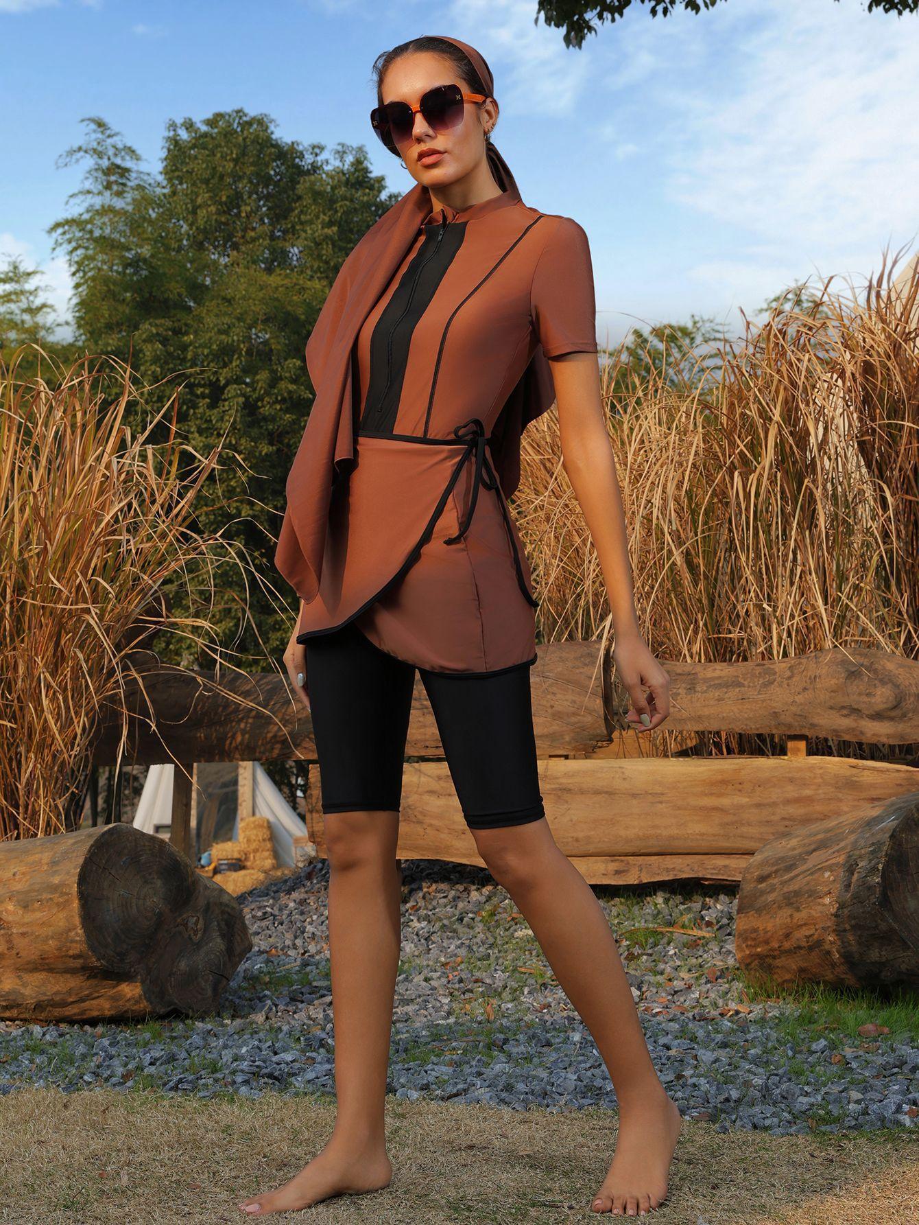 Traje de baño conservador nuevo de Oriente Medio musulmán de manga corta con shorts protección solar traje de baño de playa traje de baño de dos piezas