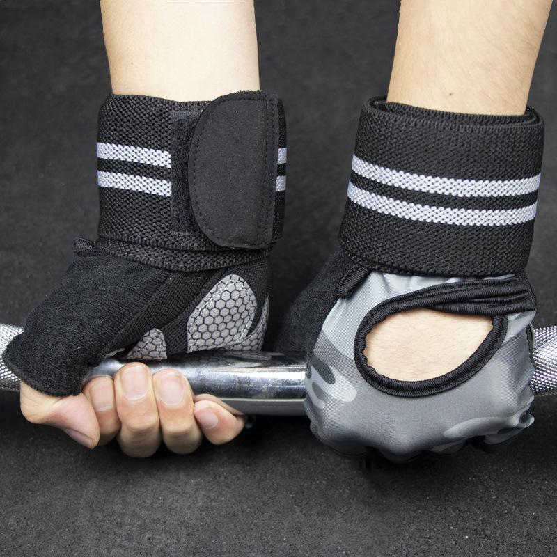 Guantes de muñeca con banda de fitness para correr, montañismo, antidesgaste, de medio dedo, para entrenamiento, ciclismo al aire libre, deportes, guantes de fitness