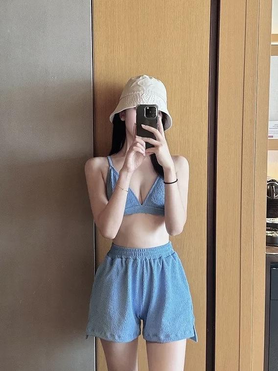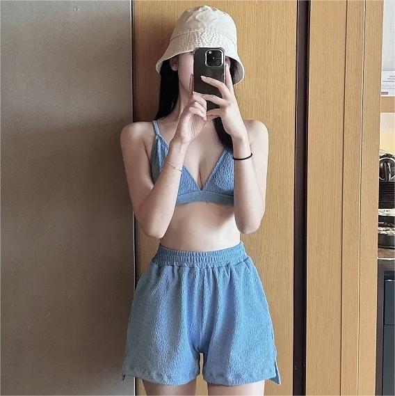 Traje de baño de dos piezas para mujer Estilo coreano Sexy Adelgazante Tela de toalla Traje de baño Ropa de baño para aguas termales