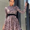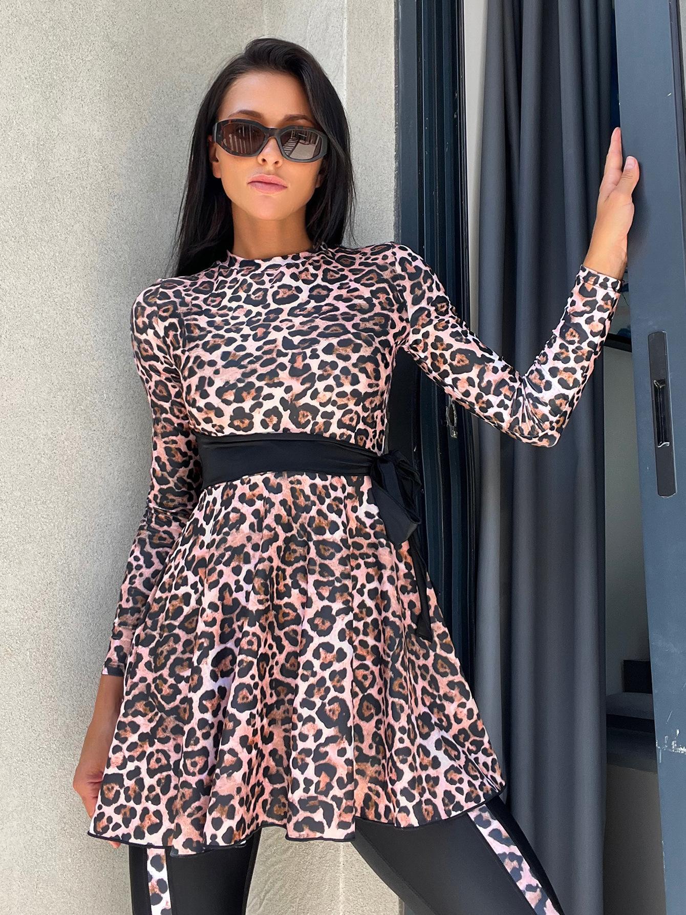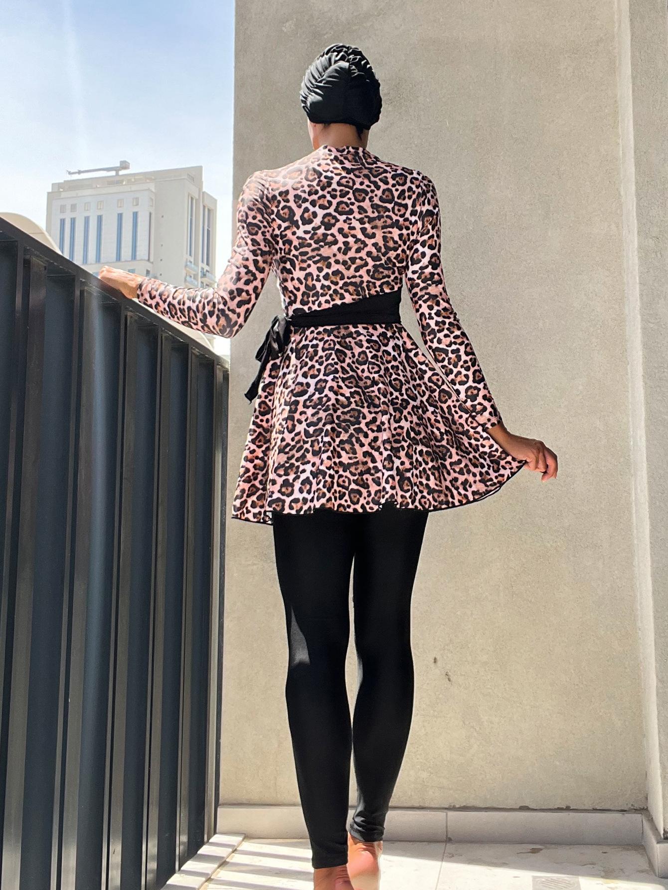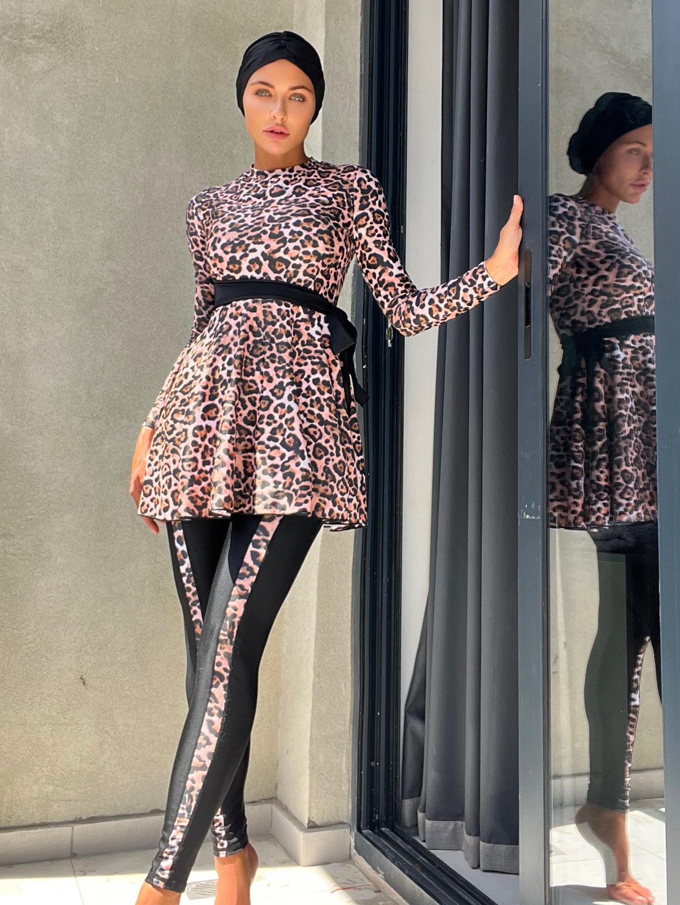 Nuevo Conservador Musulmán Estampado Leopardo Medio Oriente Manga Larga Pantalón Largo Protección Solar Ropa de Playa Traje de Baño de Tres Piezas Transfronterizo Europeo y Americano