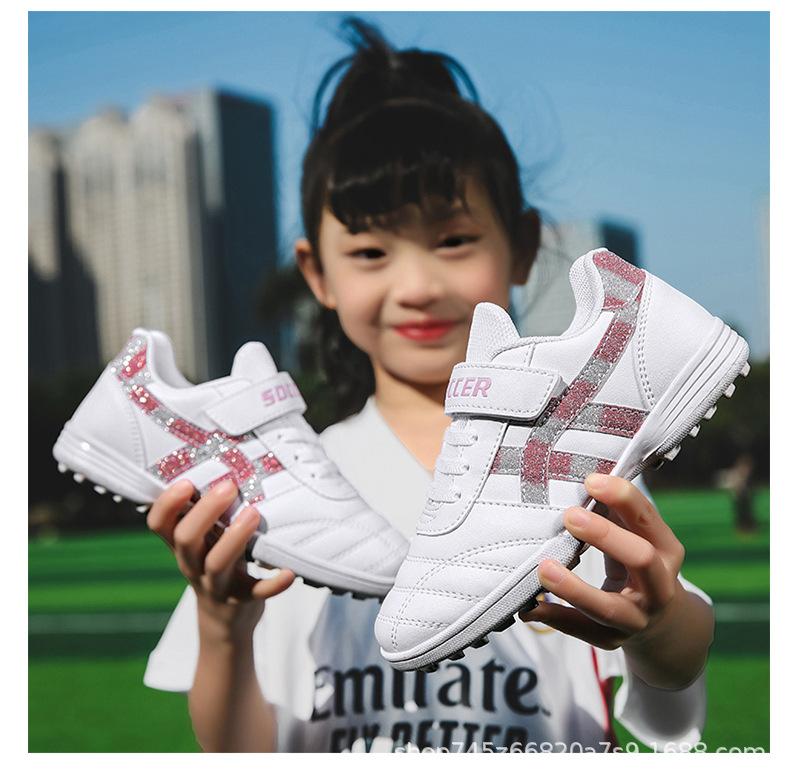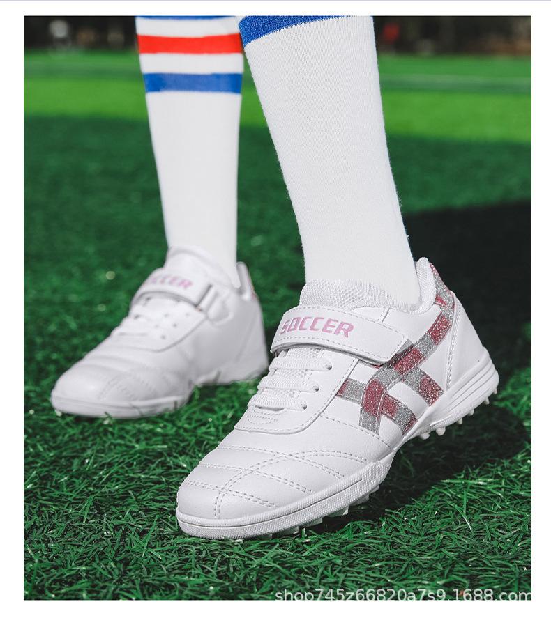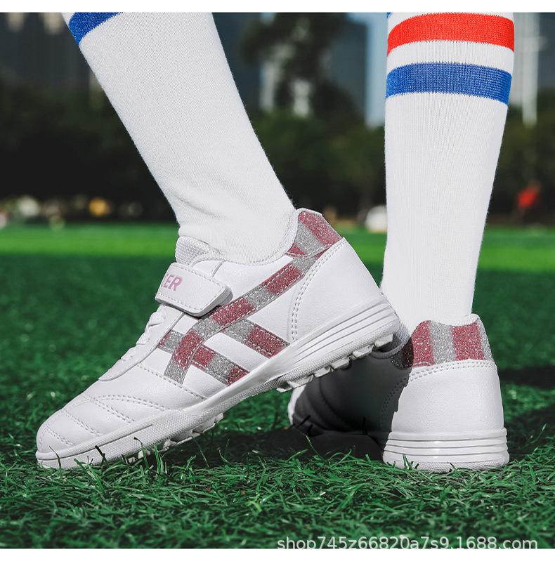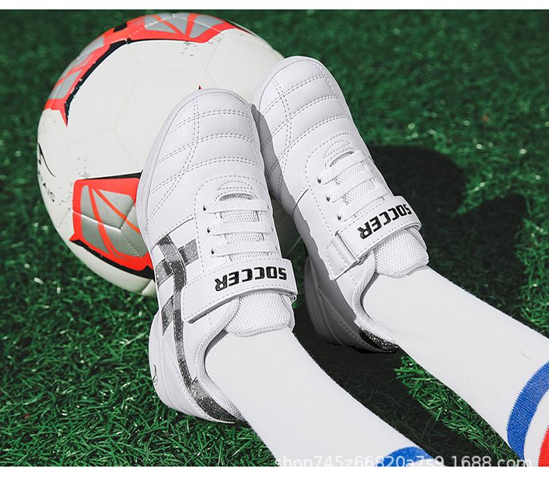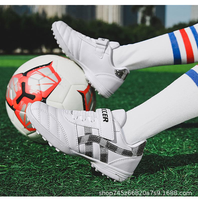 Zapatos de Fútbol de Cuero Profesionales para Niños, Nuevos Zapatos de Fútbol con Velcro de Clavos Rotos, Tenis Antideslizantes para Entrenamiento de Competición en Césped