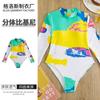 Ropa Nueva Europea y Americana 2024 Traje de Baño Ajustado de Una Pieza con Manga Larga para Mujer con Cremallera y Estampado Traje de Baño de Playa Protector Solar