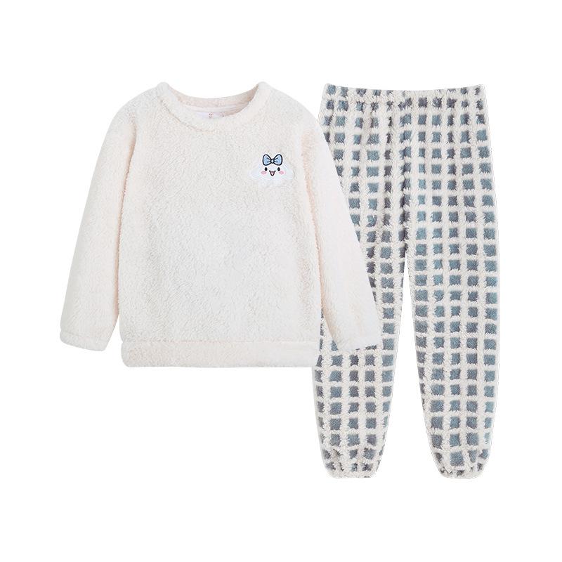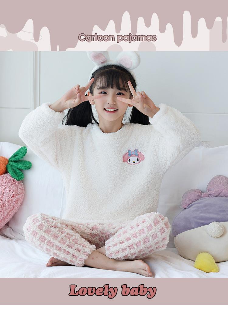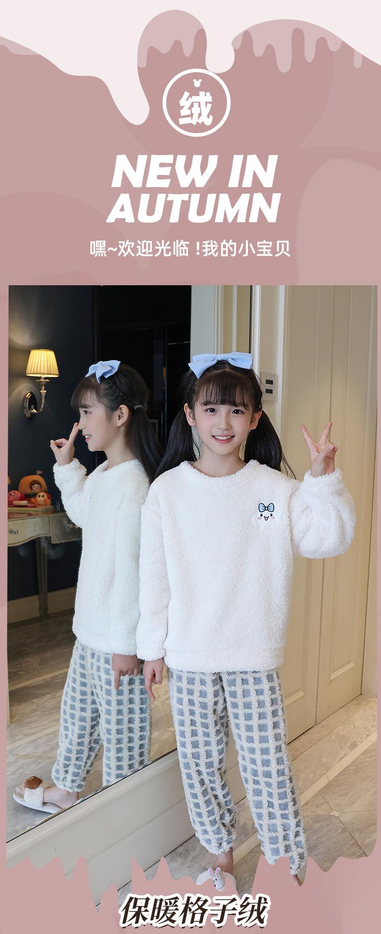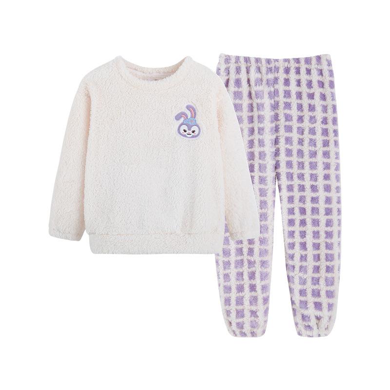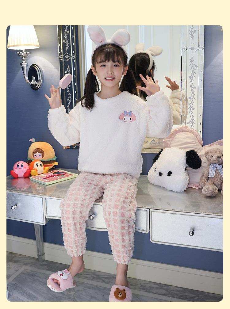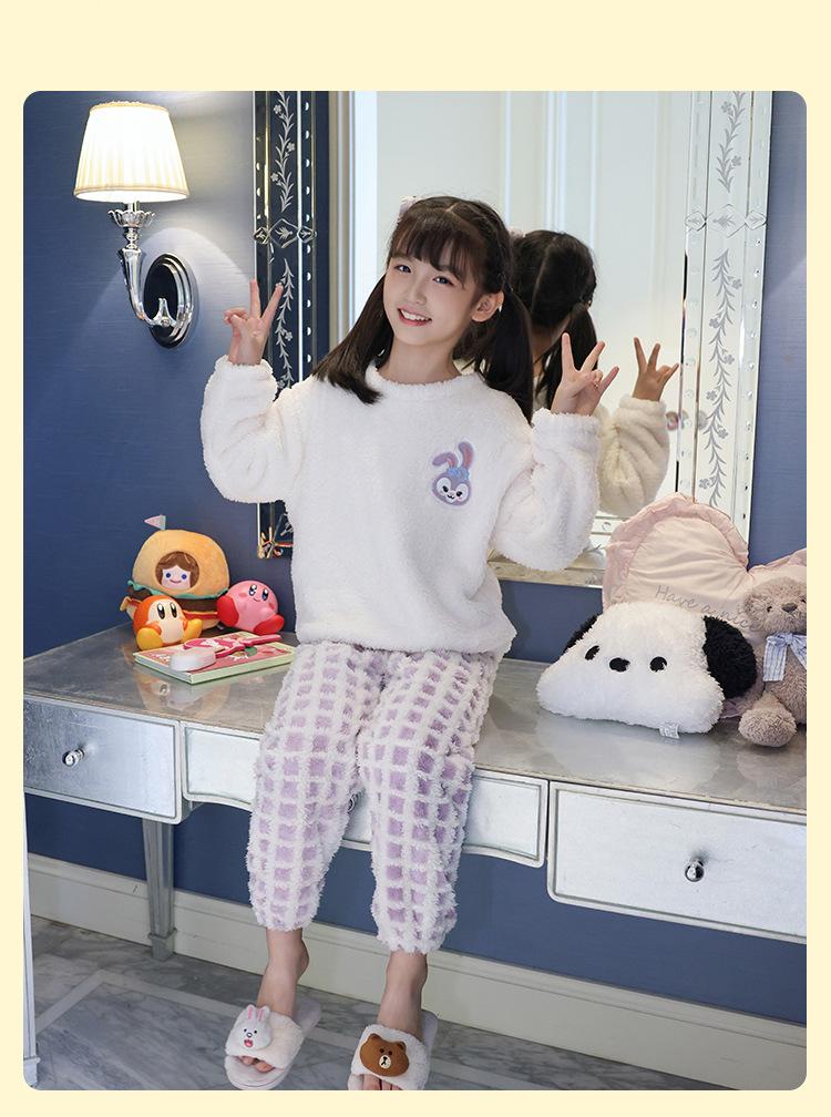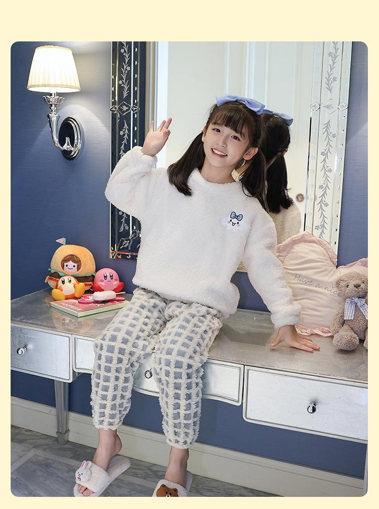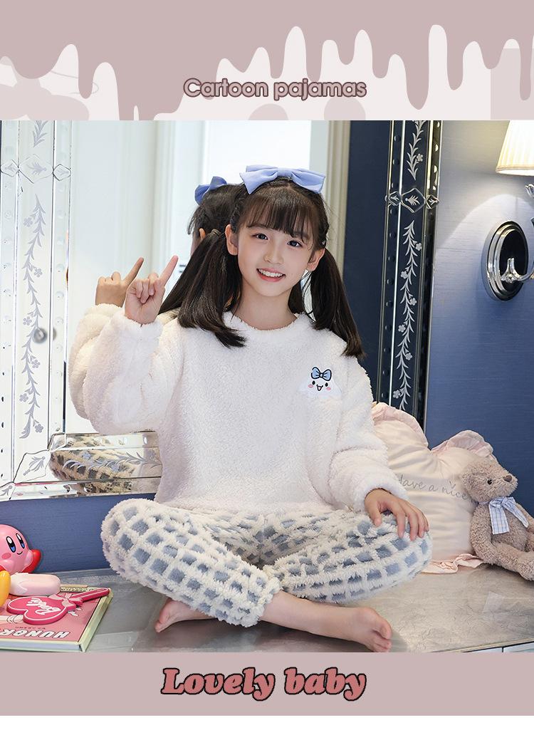 Pijama de forro polar coral para niña otoño e invierno mediano y grande para niños franela gruesa bebé invierno cálido traje para estar en casa
