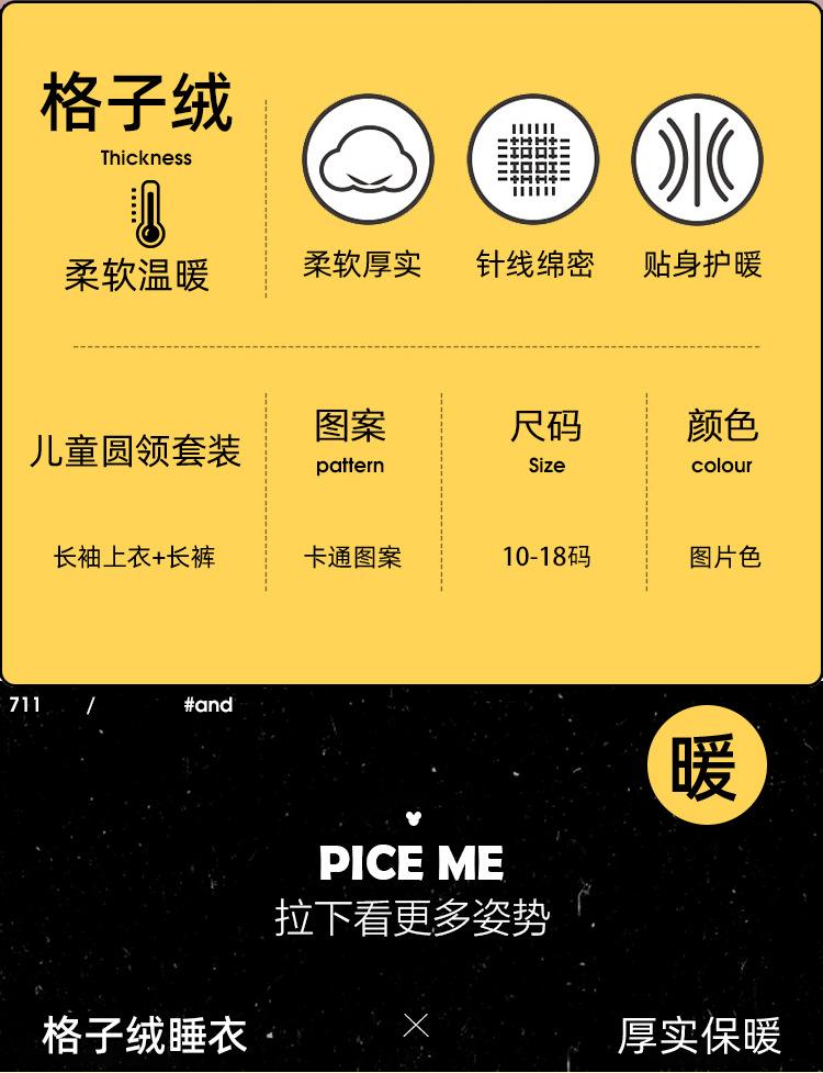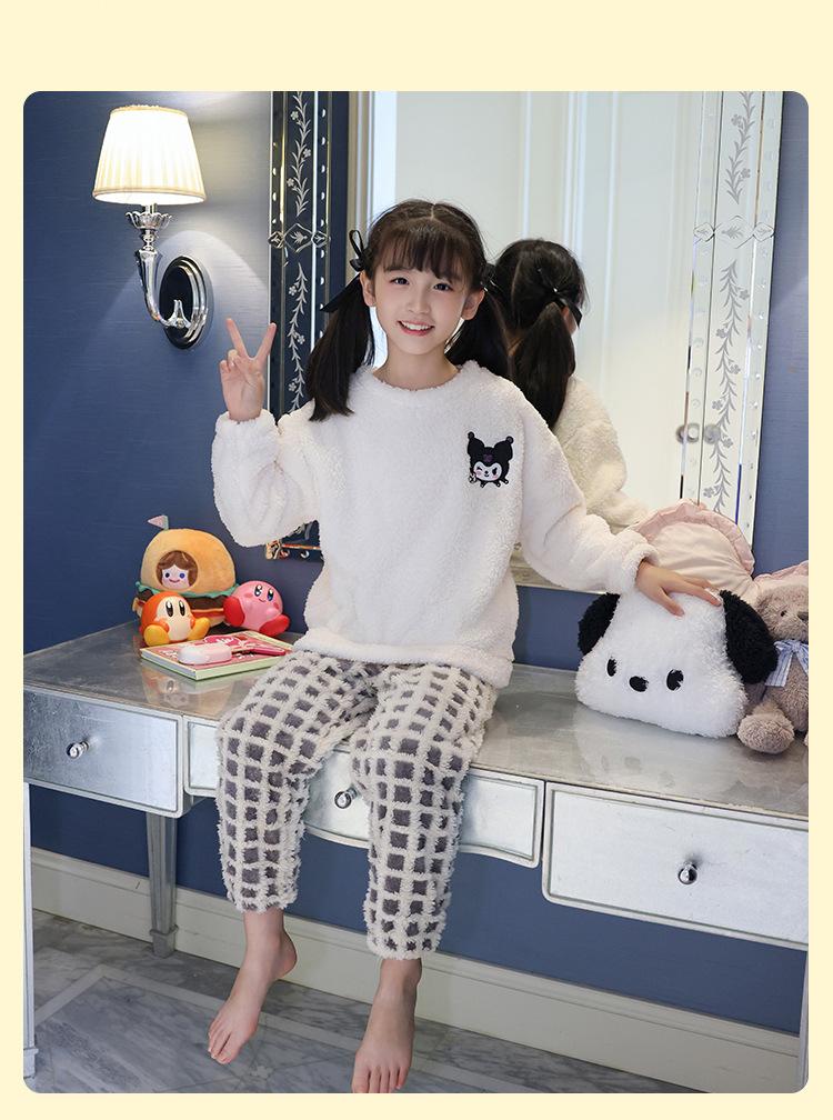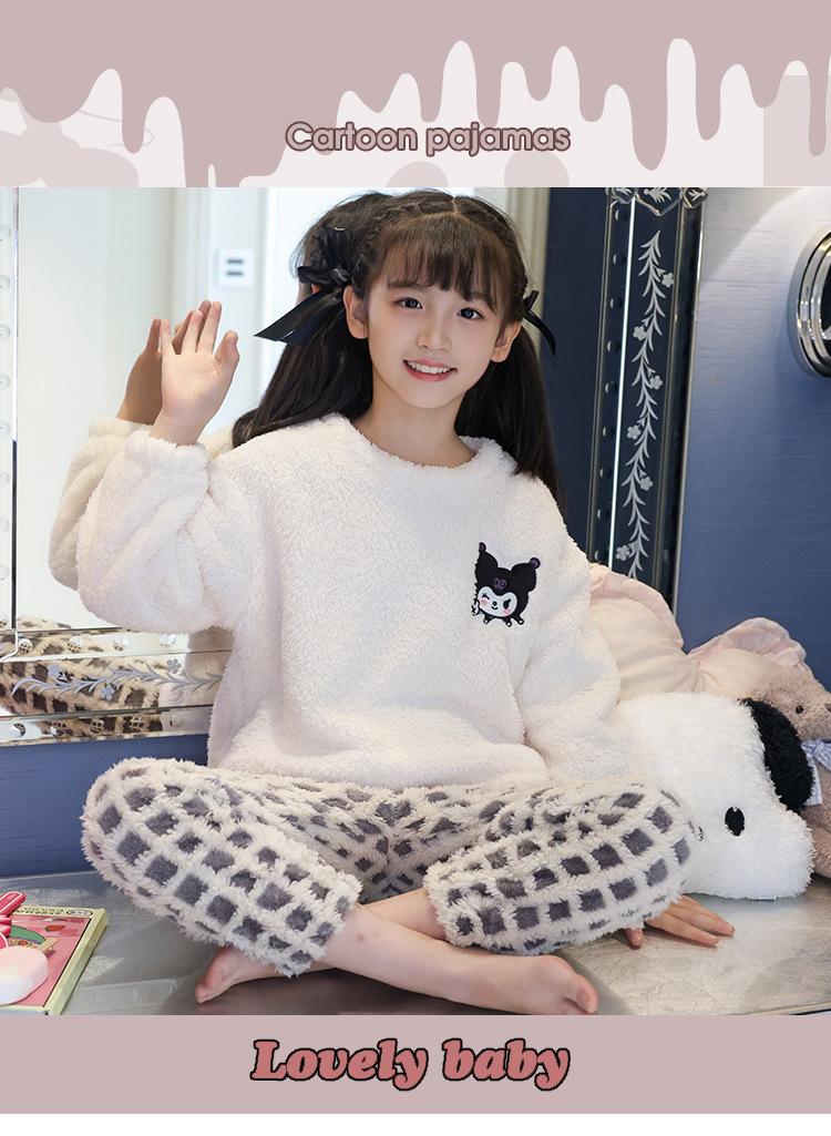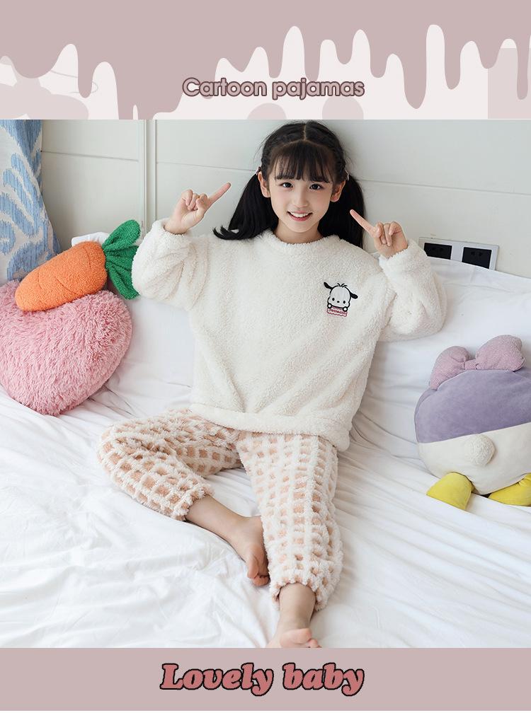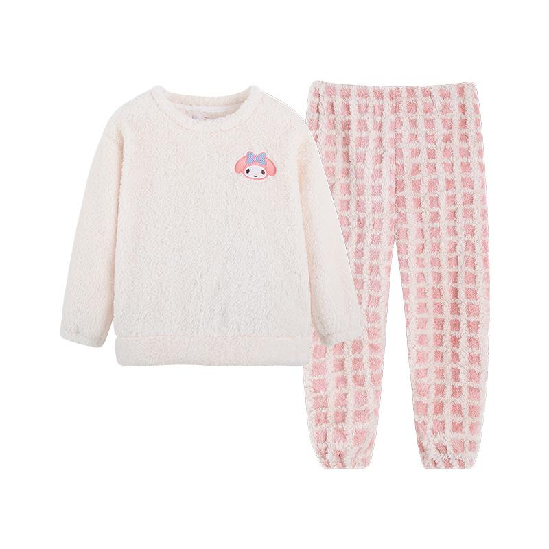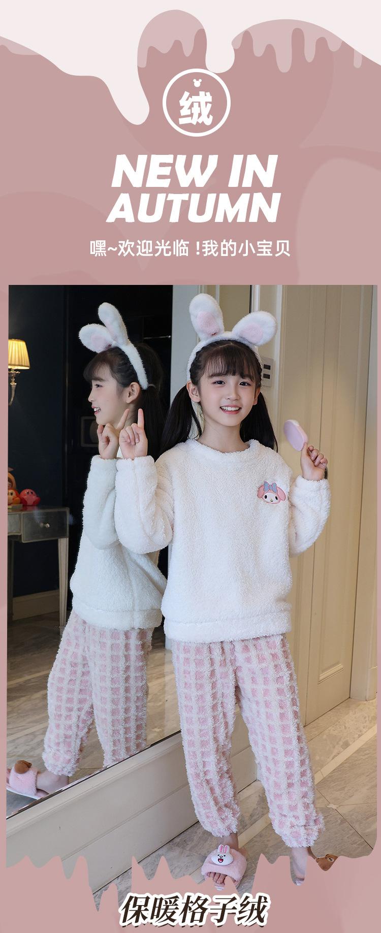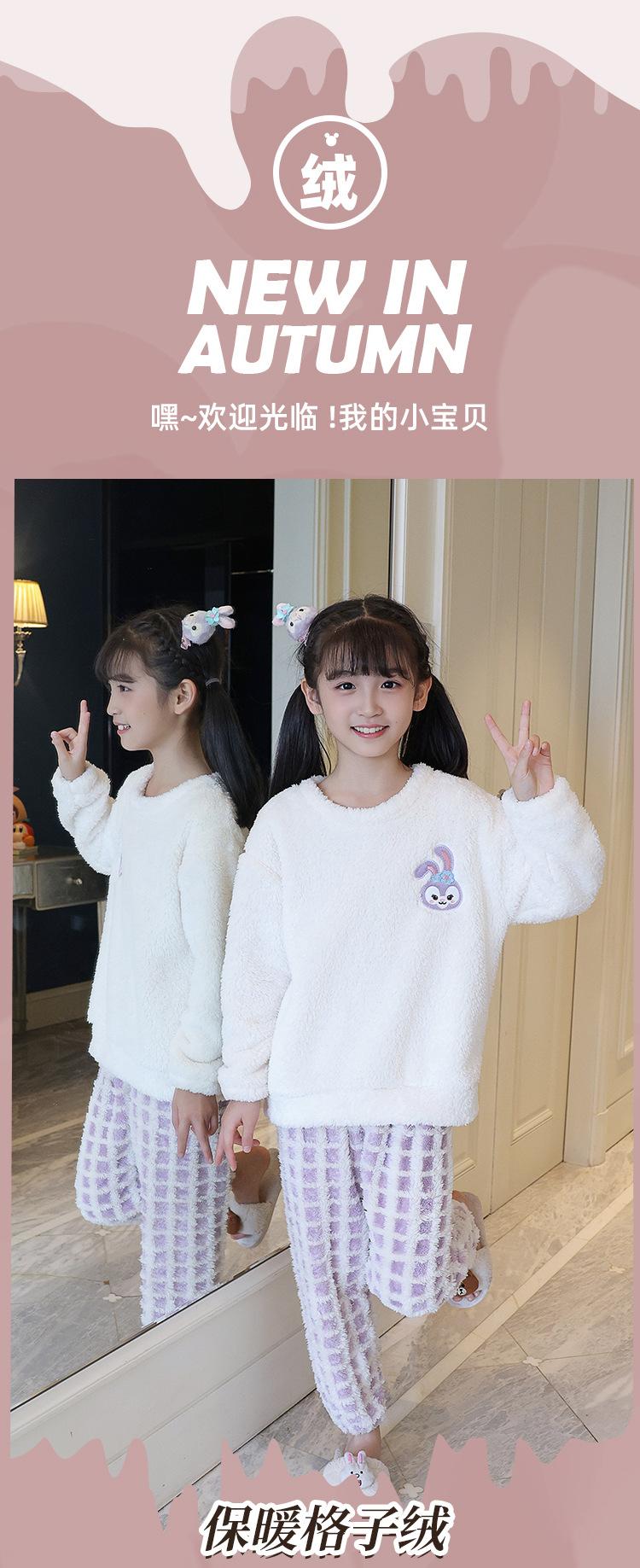 Pijama de forro polar coral para niña otoño e invierno mediano y grande para niños franela gruesa bebé invierno cálido traje para estar en casa