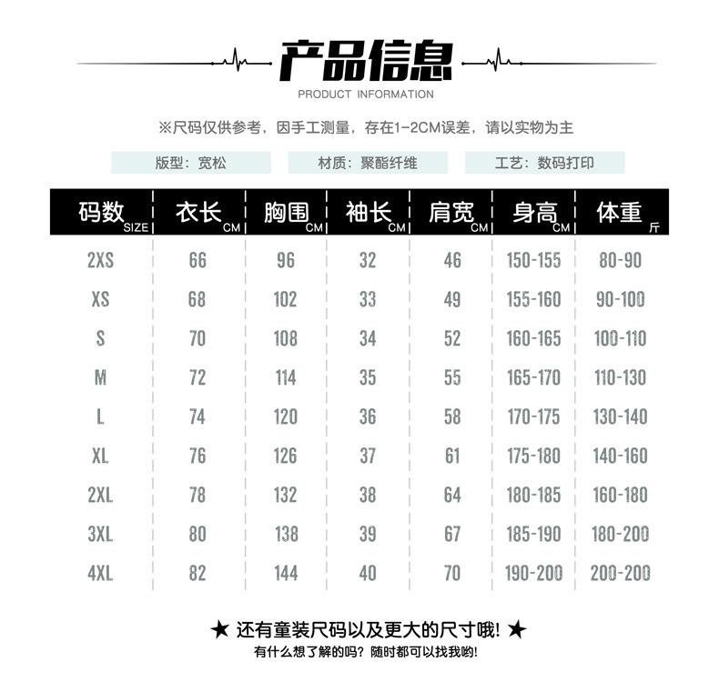 XXS, XS, S, M, L, XL, XXL, XXXL, XXXXL