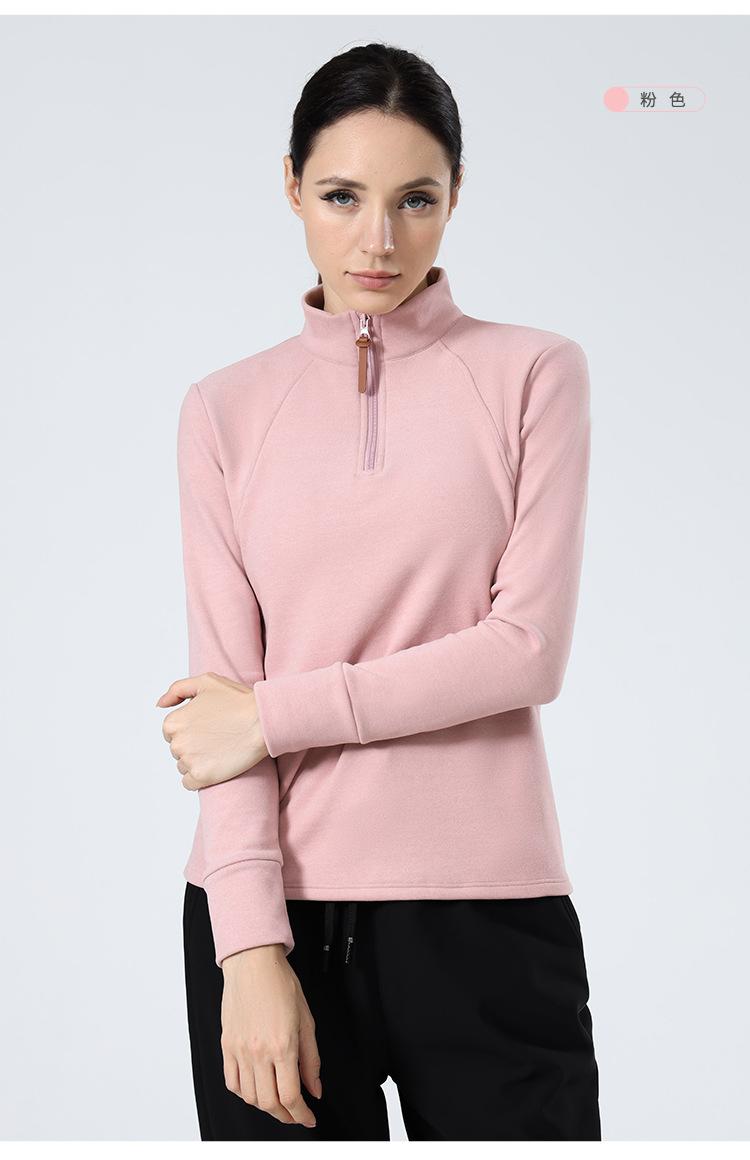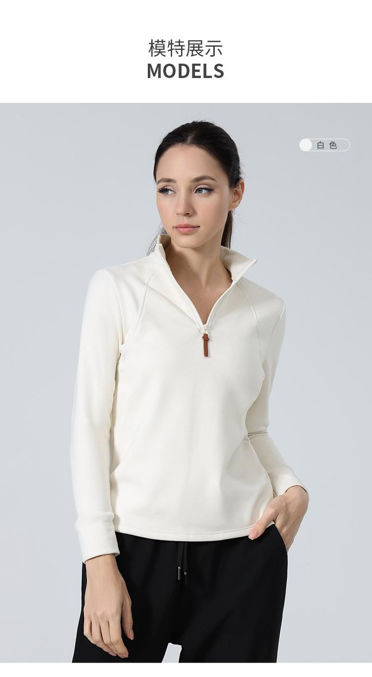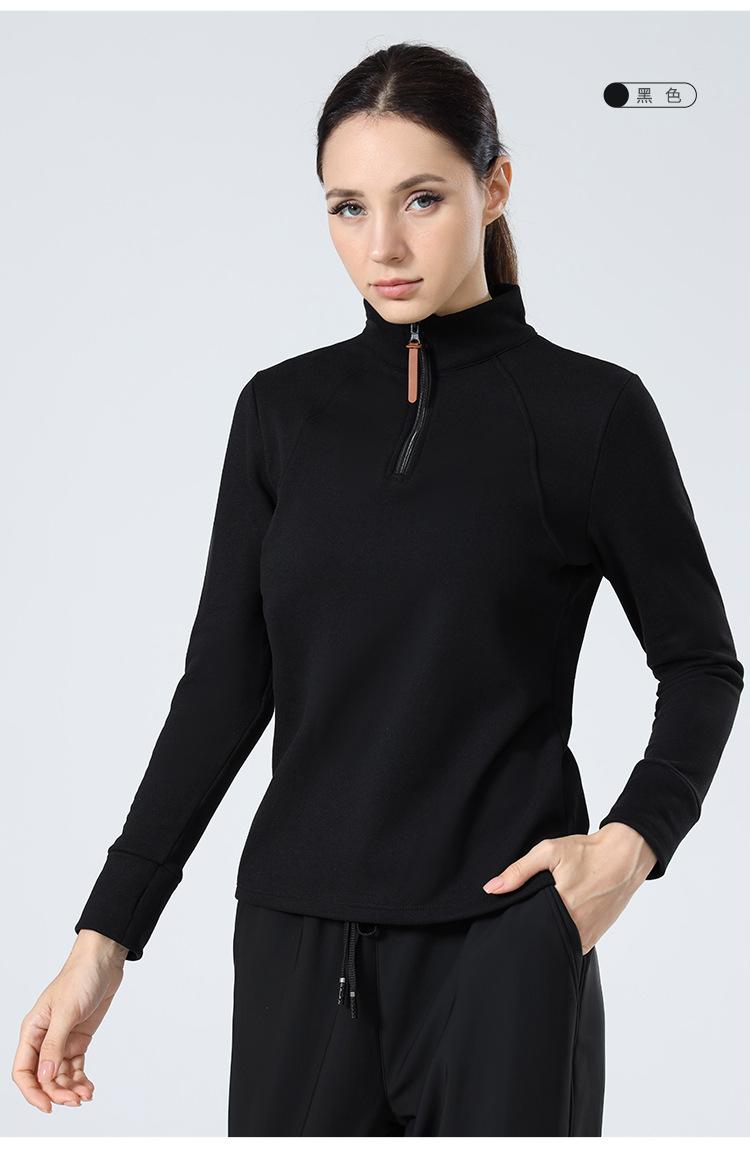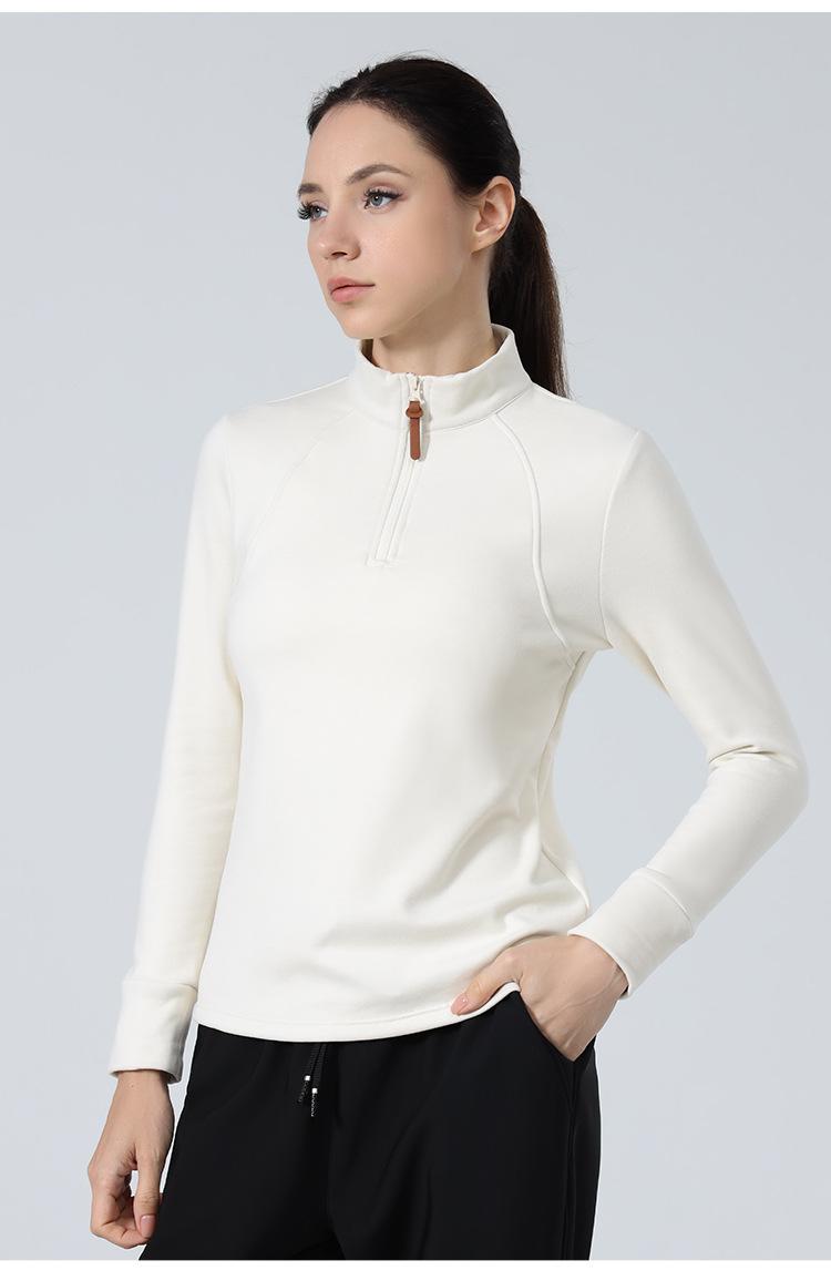 Otoño e Invierno Nuevo Forrado de Felpa Cuello Vertical Media Cremallera Camisa para Mujer Ropa Exterior Top Deportivo Ajustado Interior Adelgazante Manga Larga
