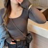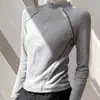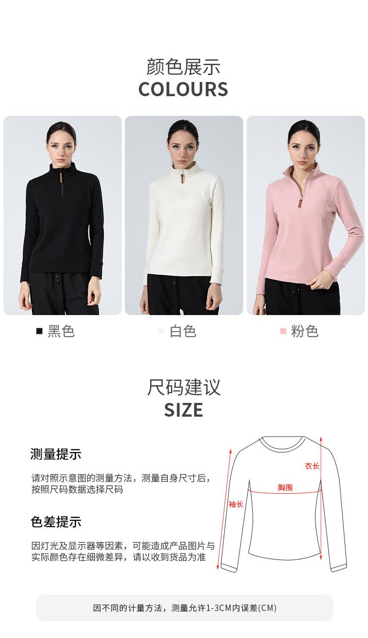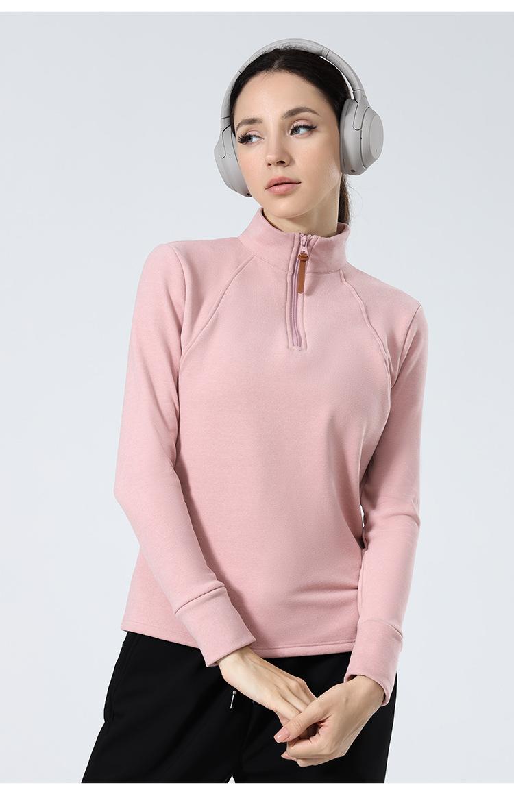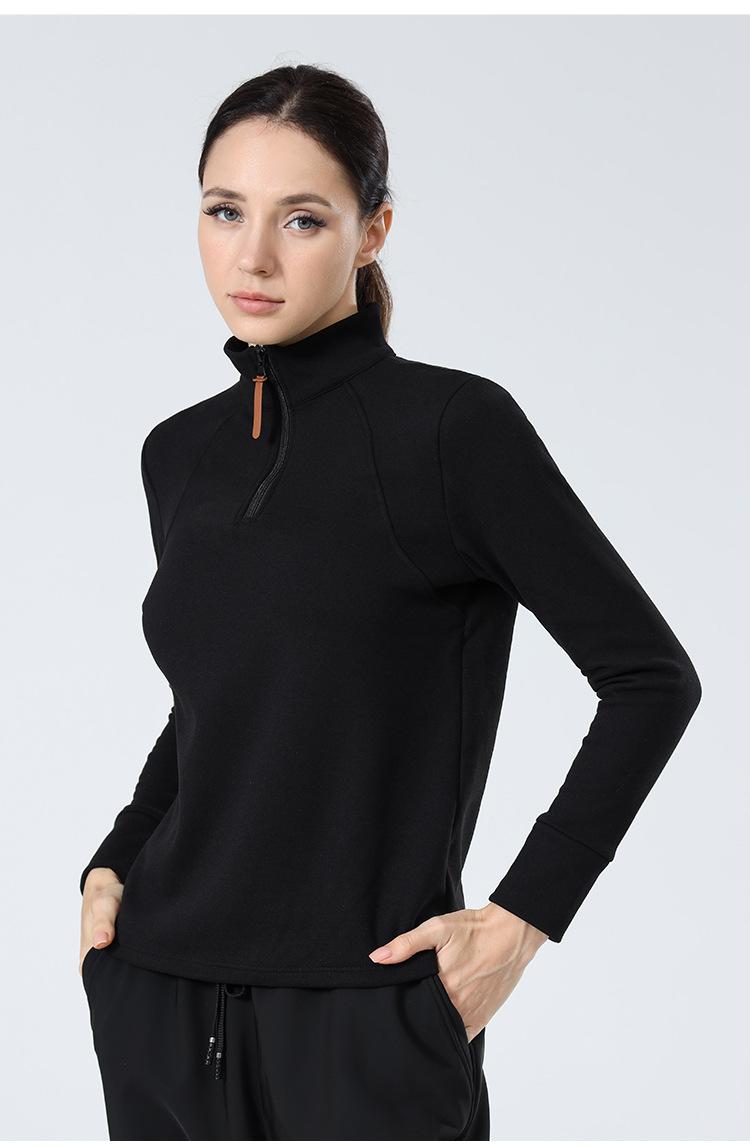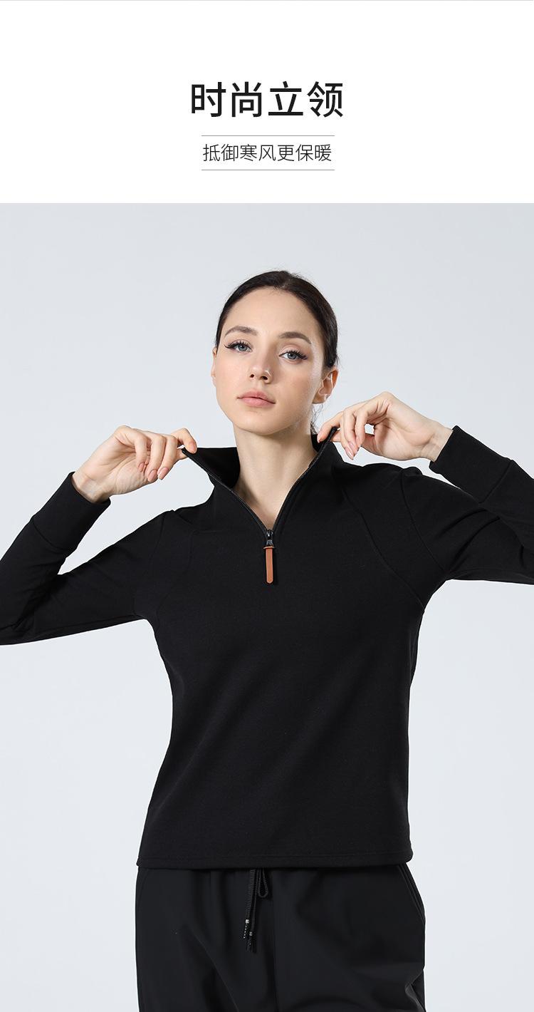 Otoño e Invierno Nuevo Forrado de Felpa Cuello Vertical Media Cremallera Camisa para Mujer Ropa Exterior Top Deportivo Ajustado Interior Adelgazante Manga Larga