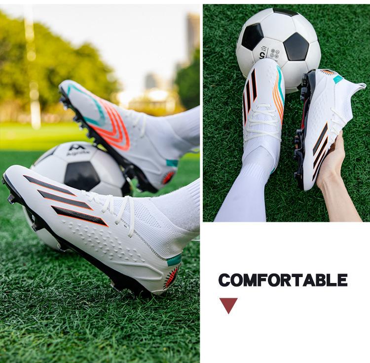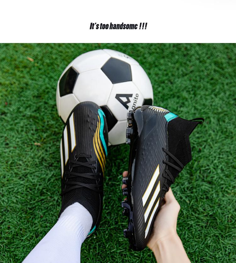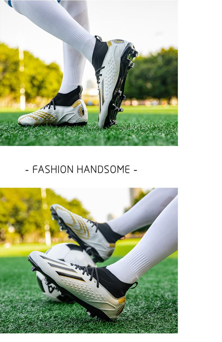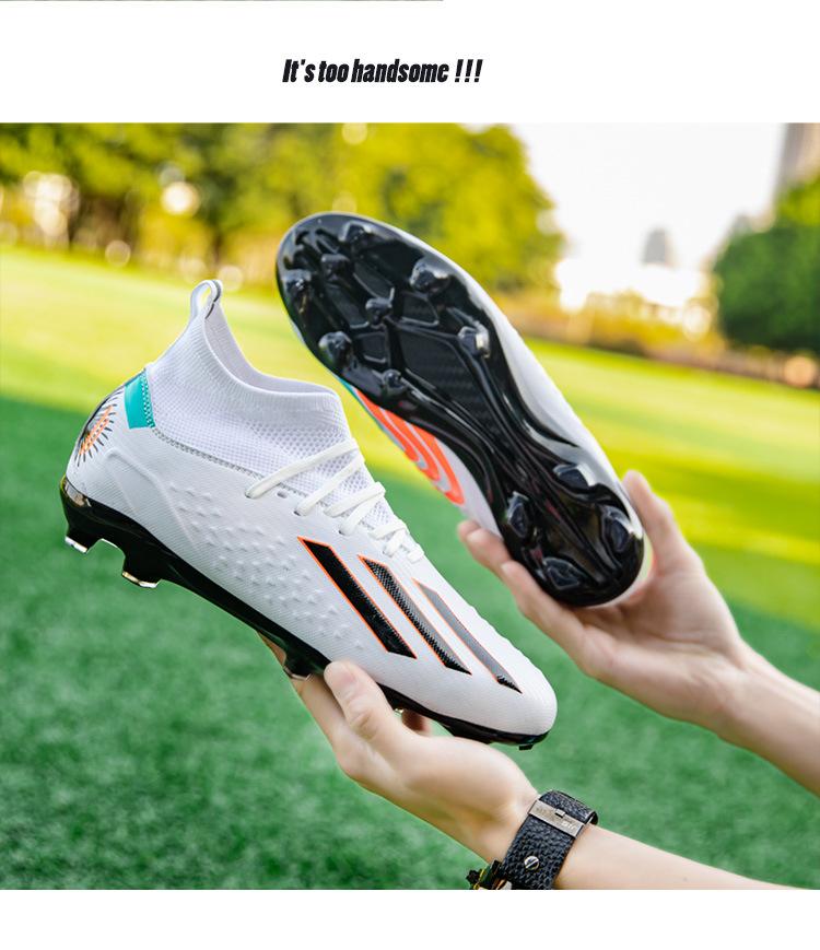 Venta al por mayor transfronteriza Zapatos de fútbol populares para niños de caña alta transpirables para hombre Ag Uñas largas Zapatos de fútbol profesionales para entrenamiento en césped