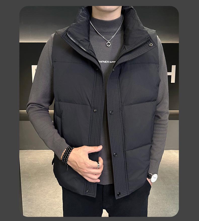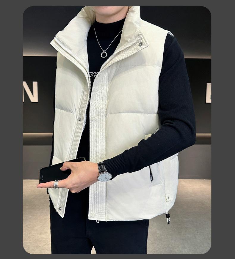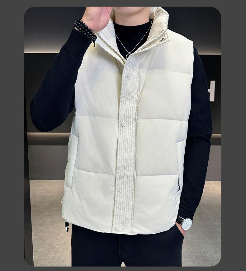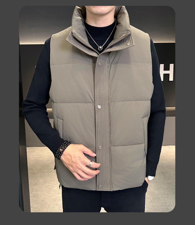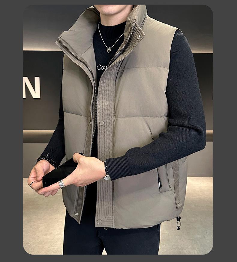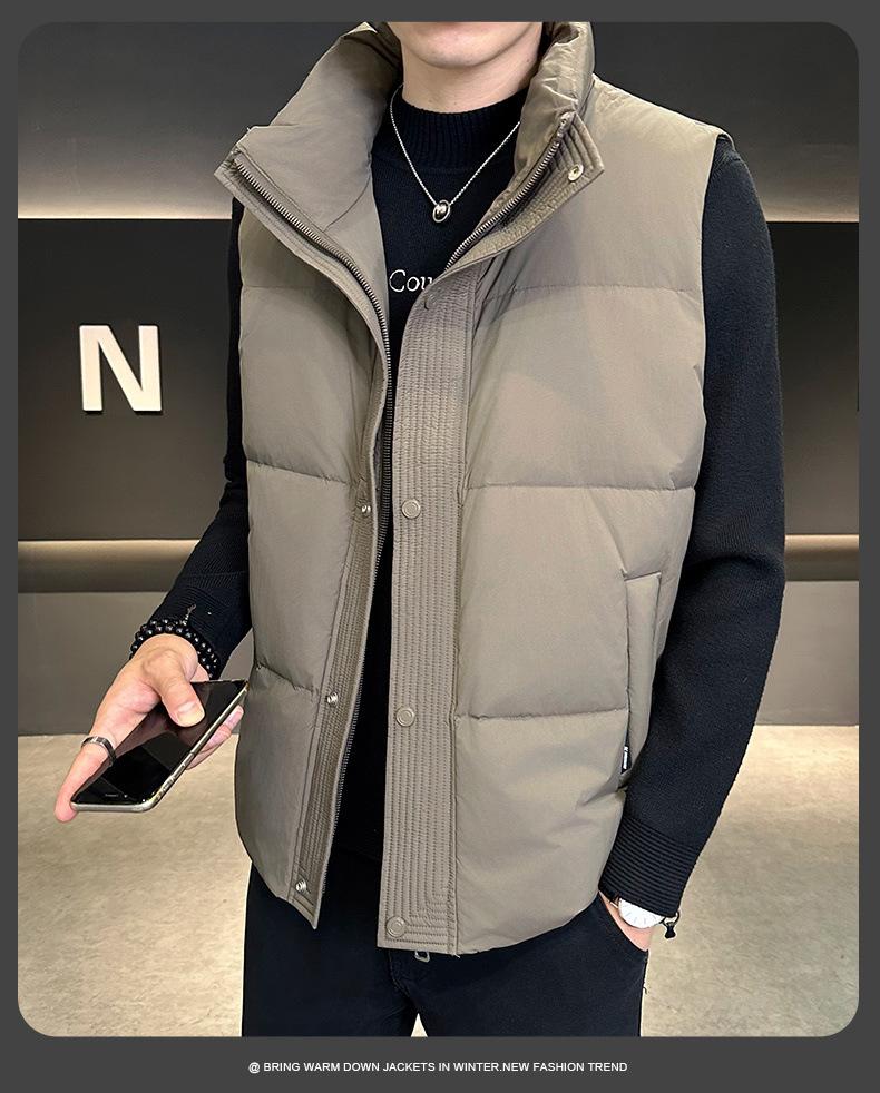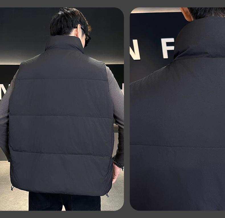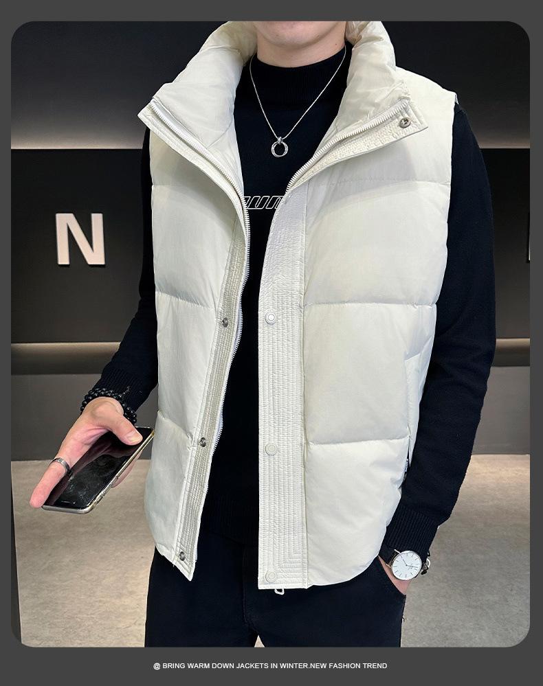 Chaleco de plumas para hombre, nuevo chaleco informal de invierno de color liso con cuello, sin mangas, grueso y cálido, abrigo de trabajo a la moda