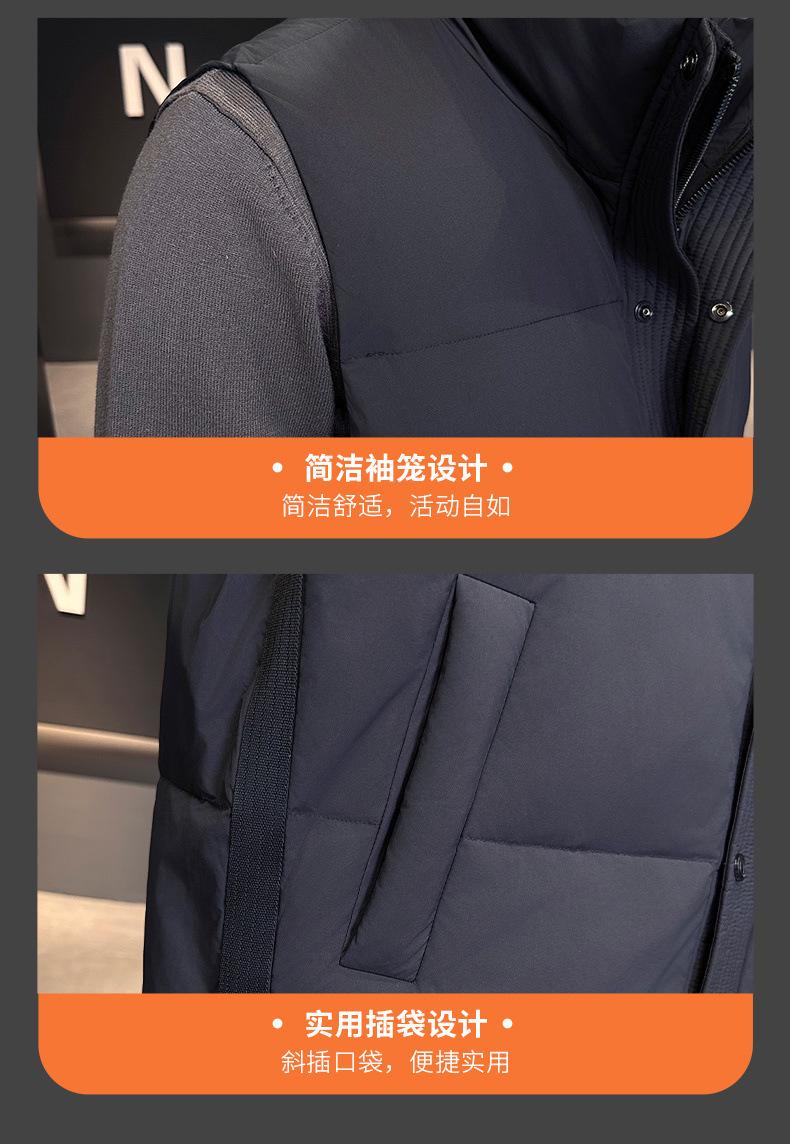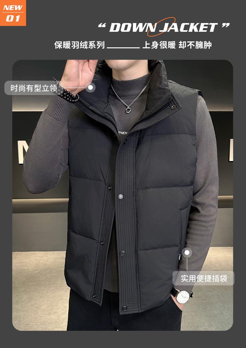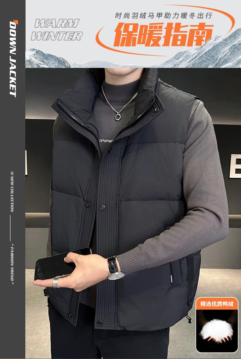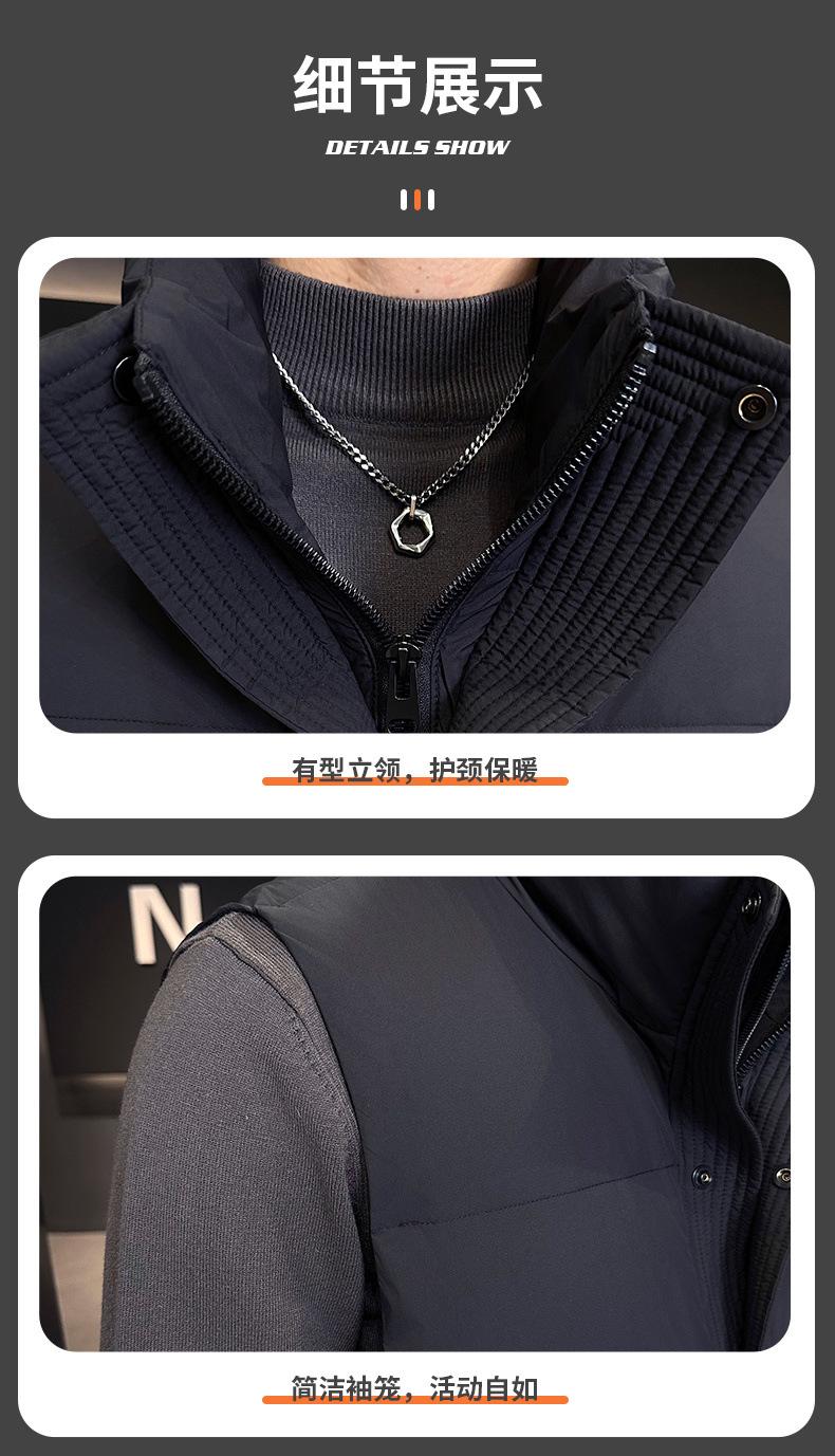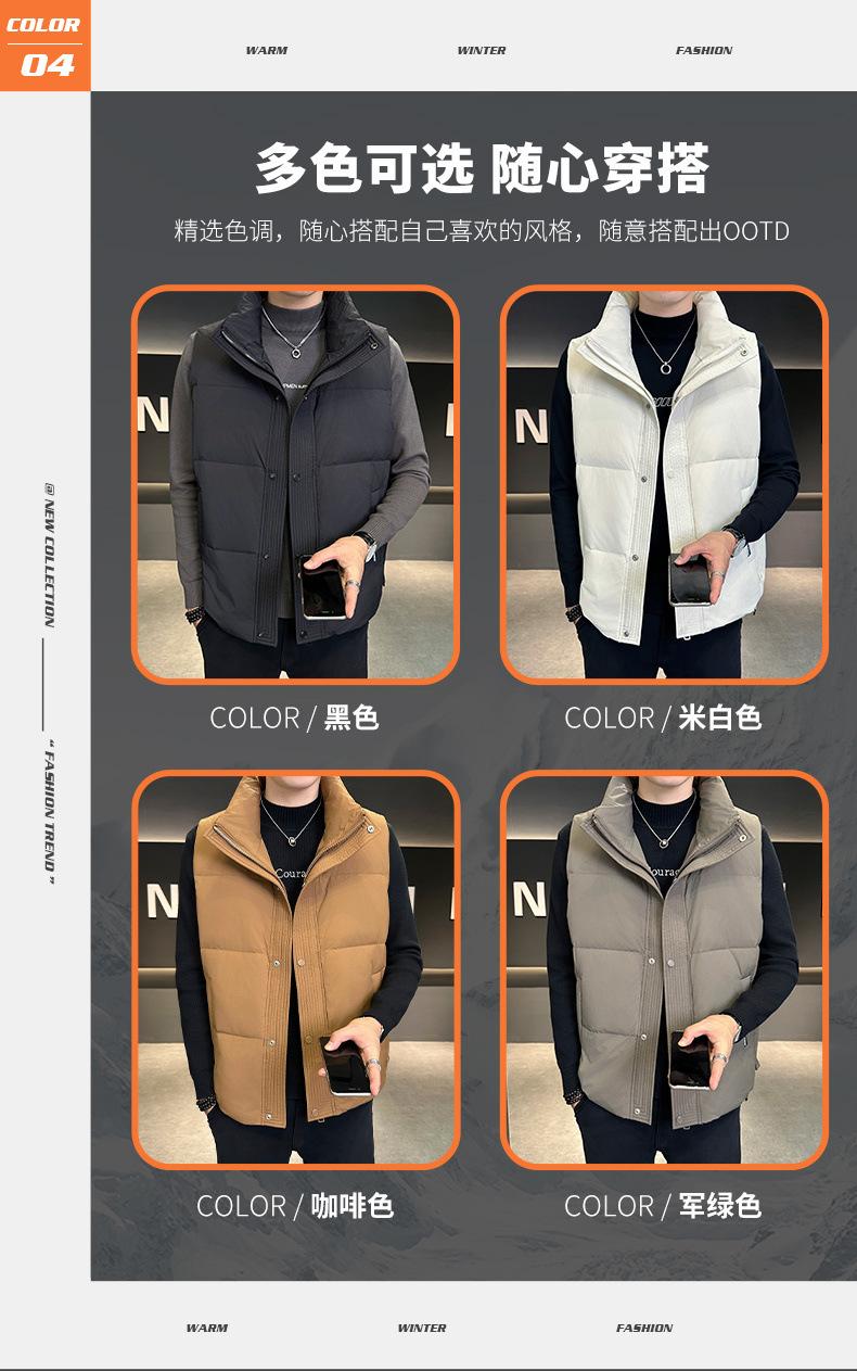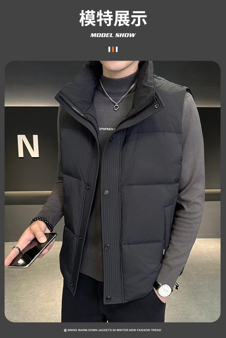 Chaleco de plumas para hombre, nuevo chaleco informal de invierno de color liso con cuello, sin mangas, grueso y cálido, abrigo de trabajo a la moda