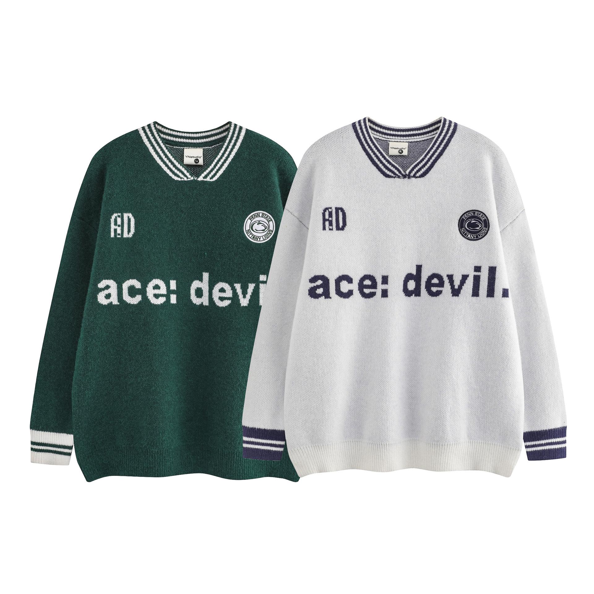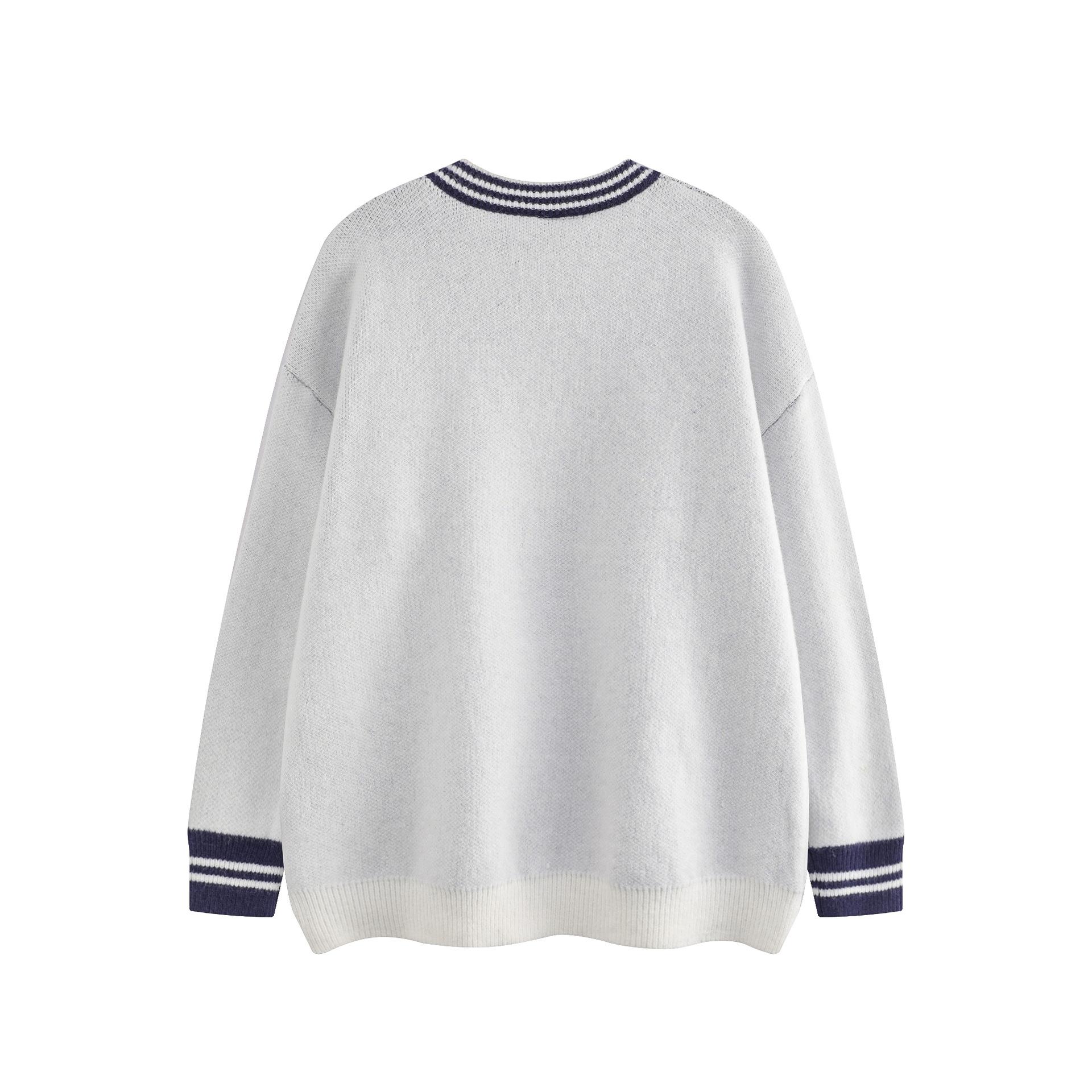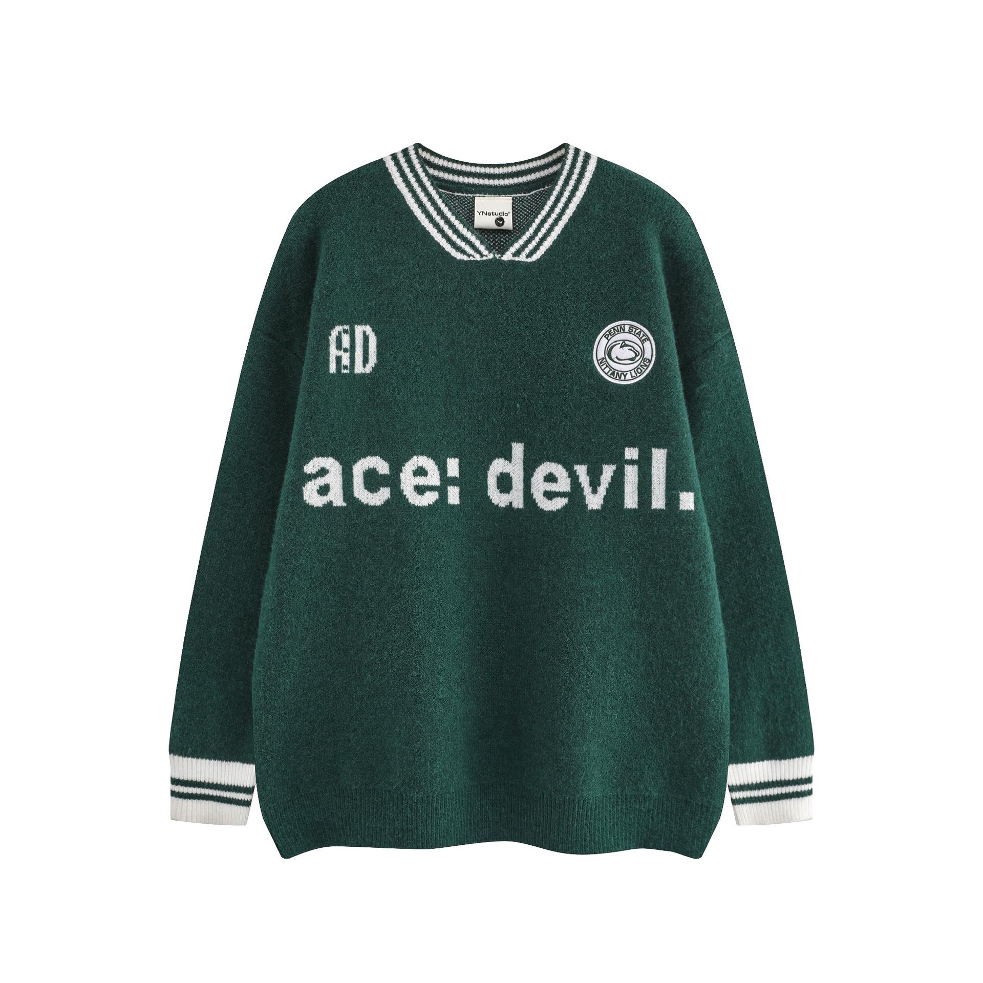 Suéter holgado con cuello en V, estilo retro americano, sencillo, con letras, estilo universitario, otoño 2024