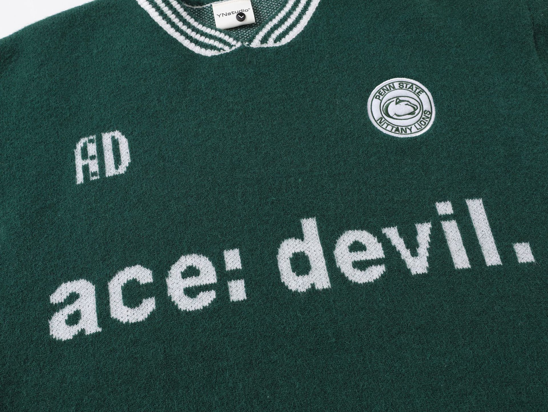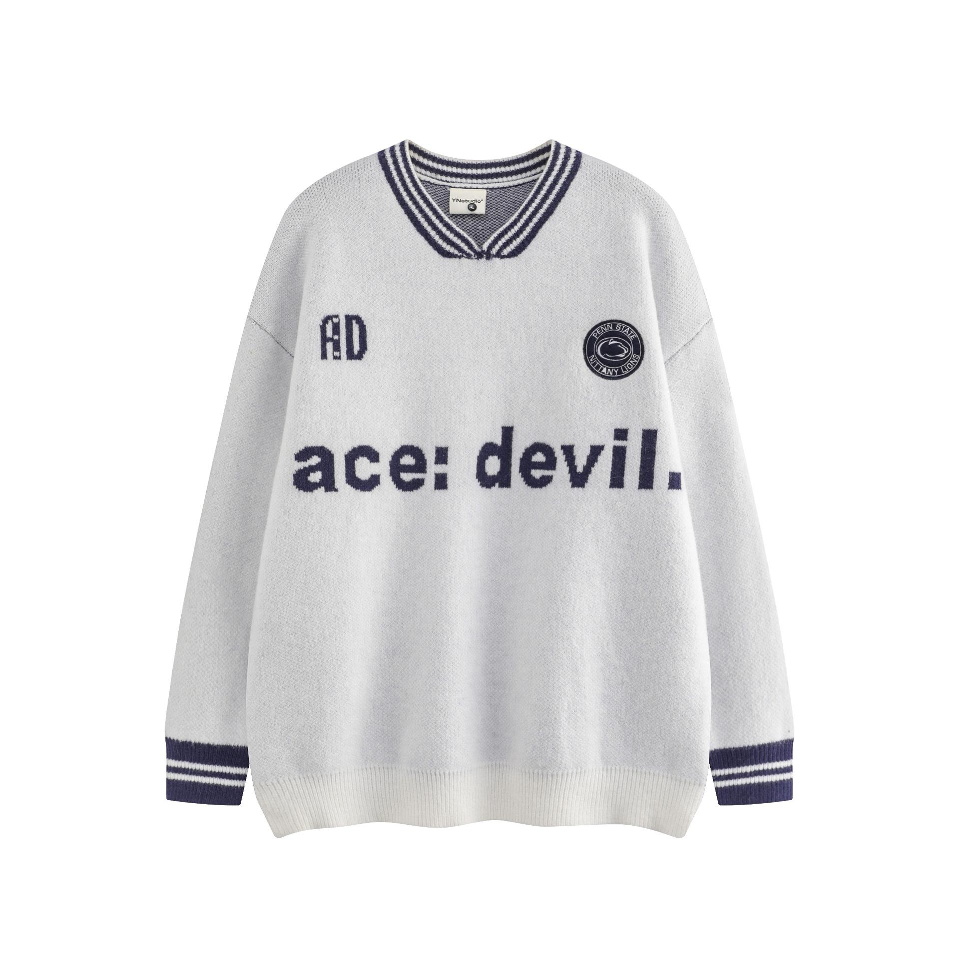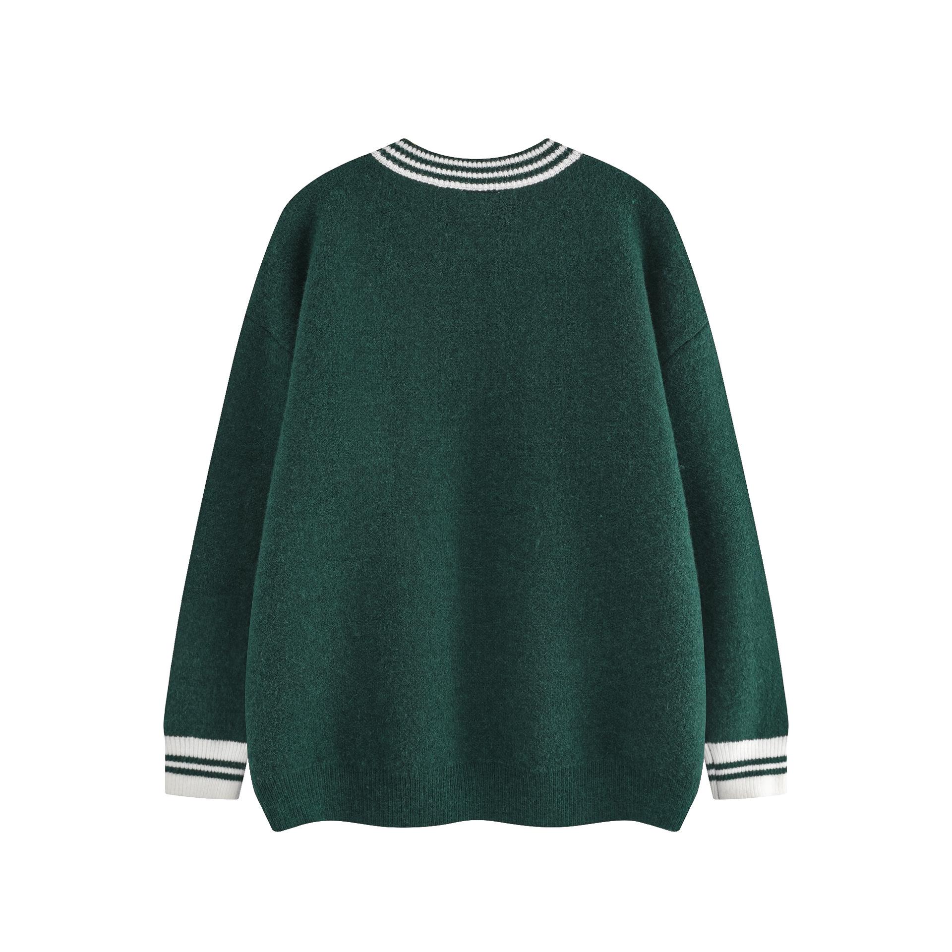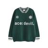Suéter holgado con cuello en V, estilo retro americano, sencillo, con letras, estilo universitario, otoño 2024