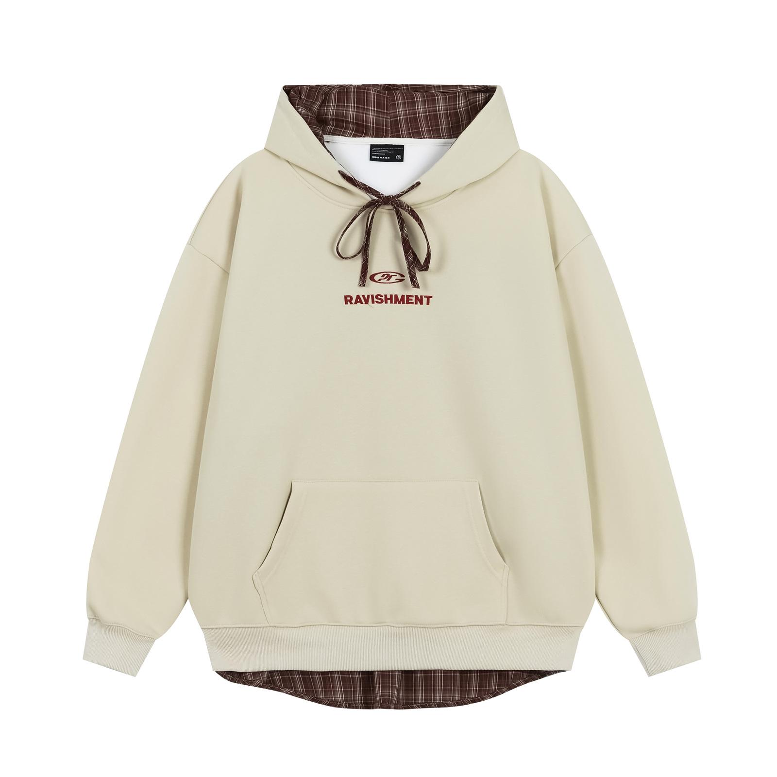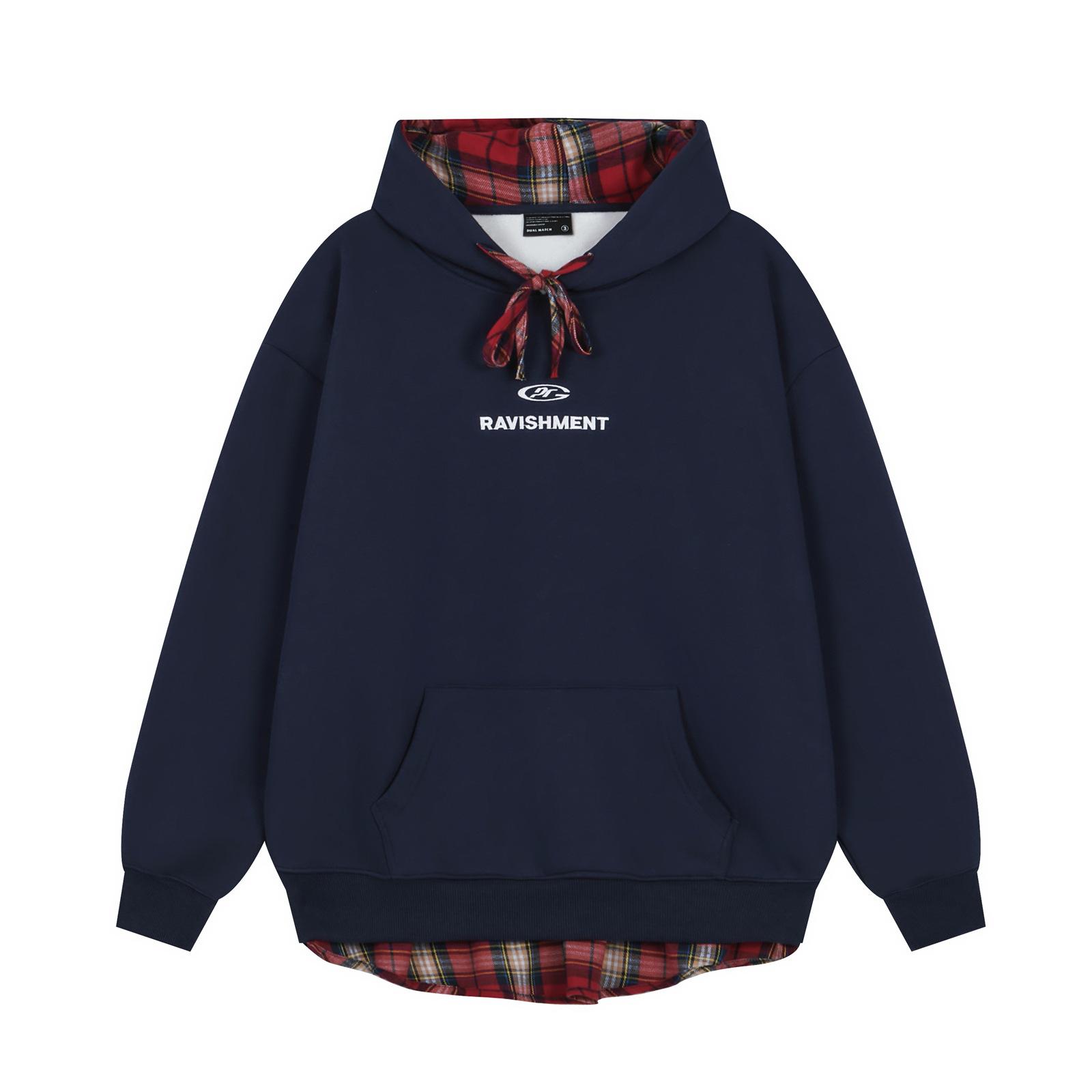 Sudadera con capucha y forro polar con letras bordadas en colores contrastantes con costuras vintage americanas para hombre y mujer, otoño e invierno, talla grande, combinable con todo.