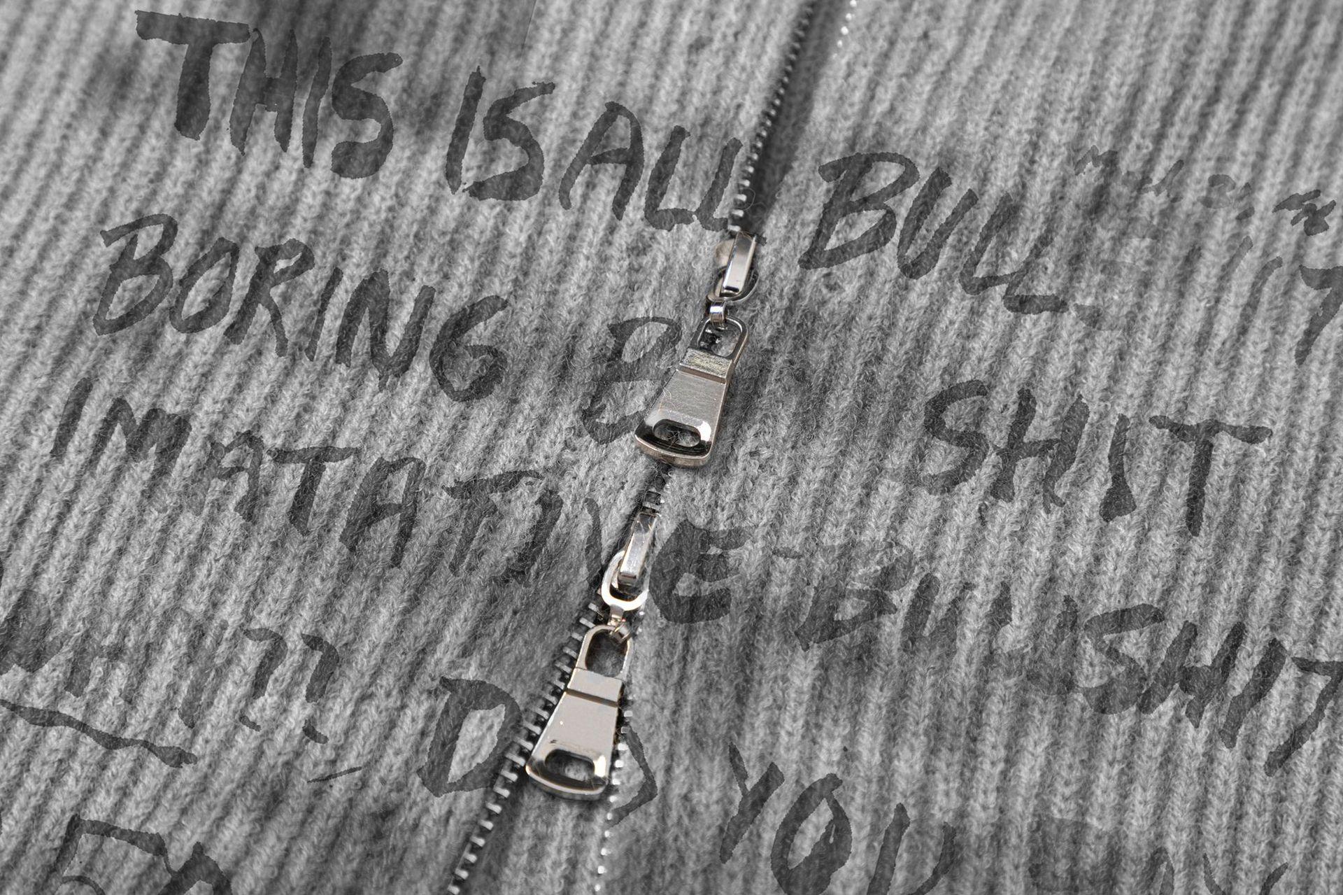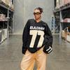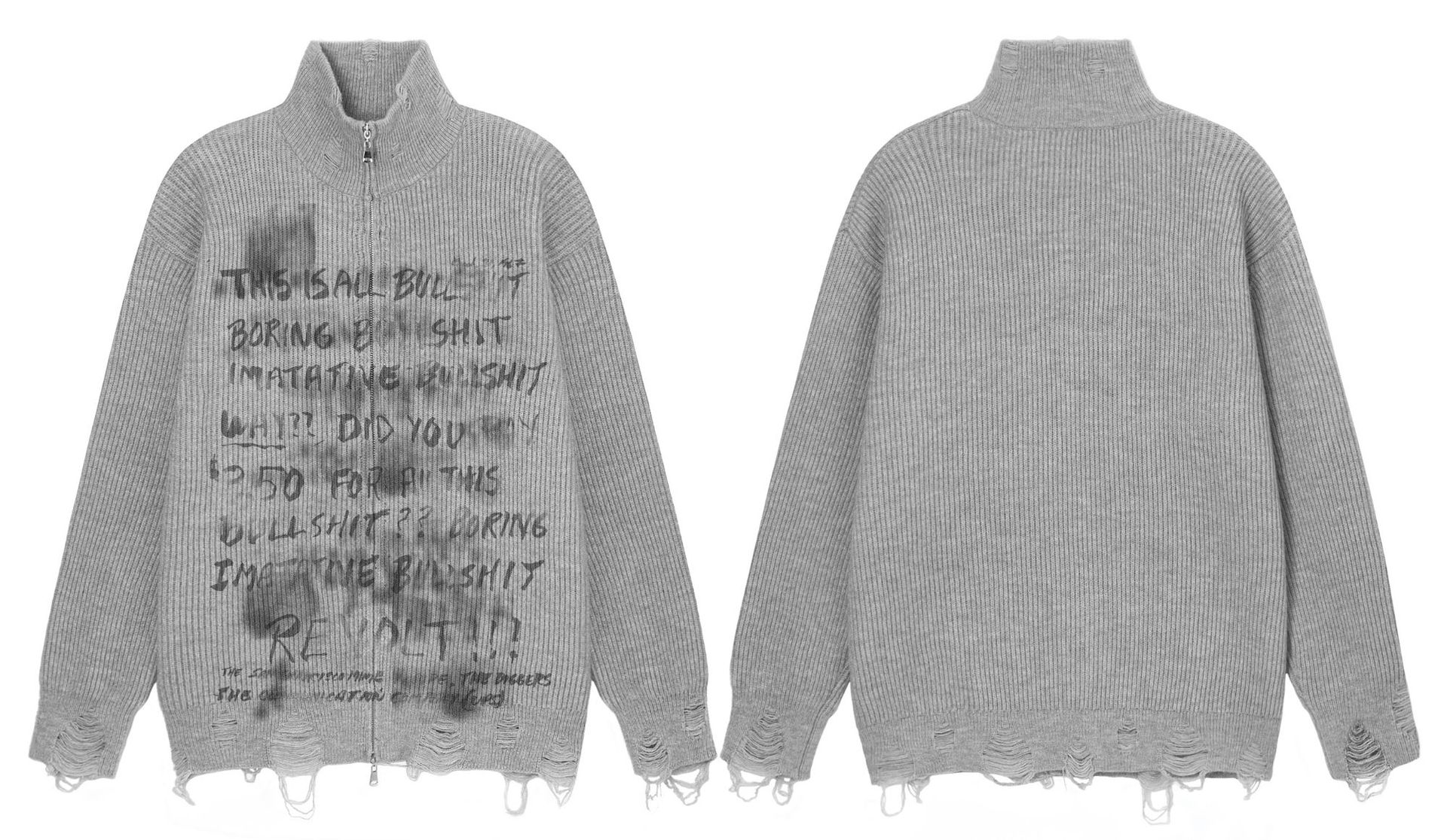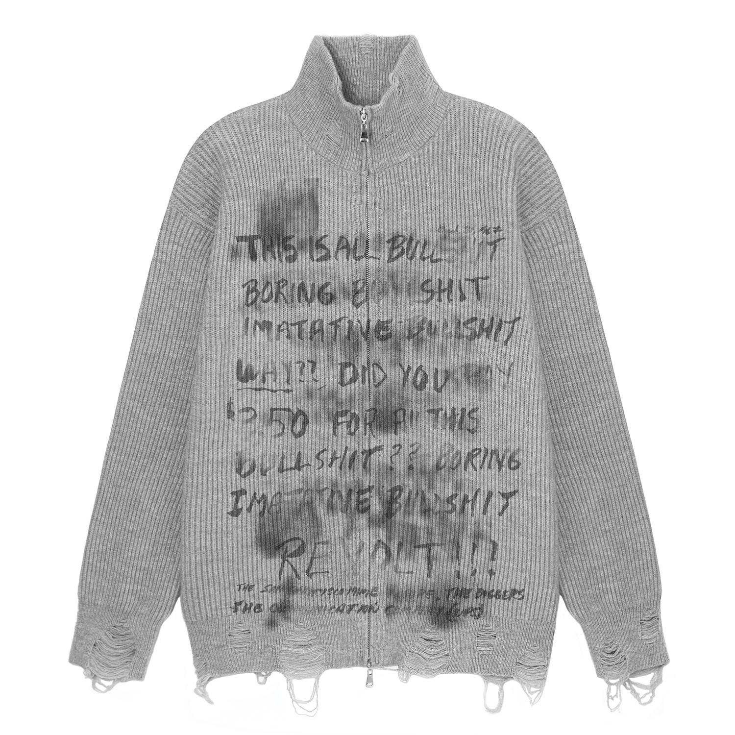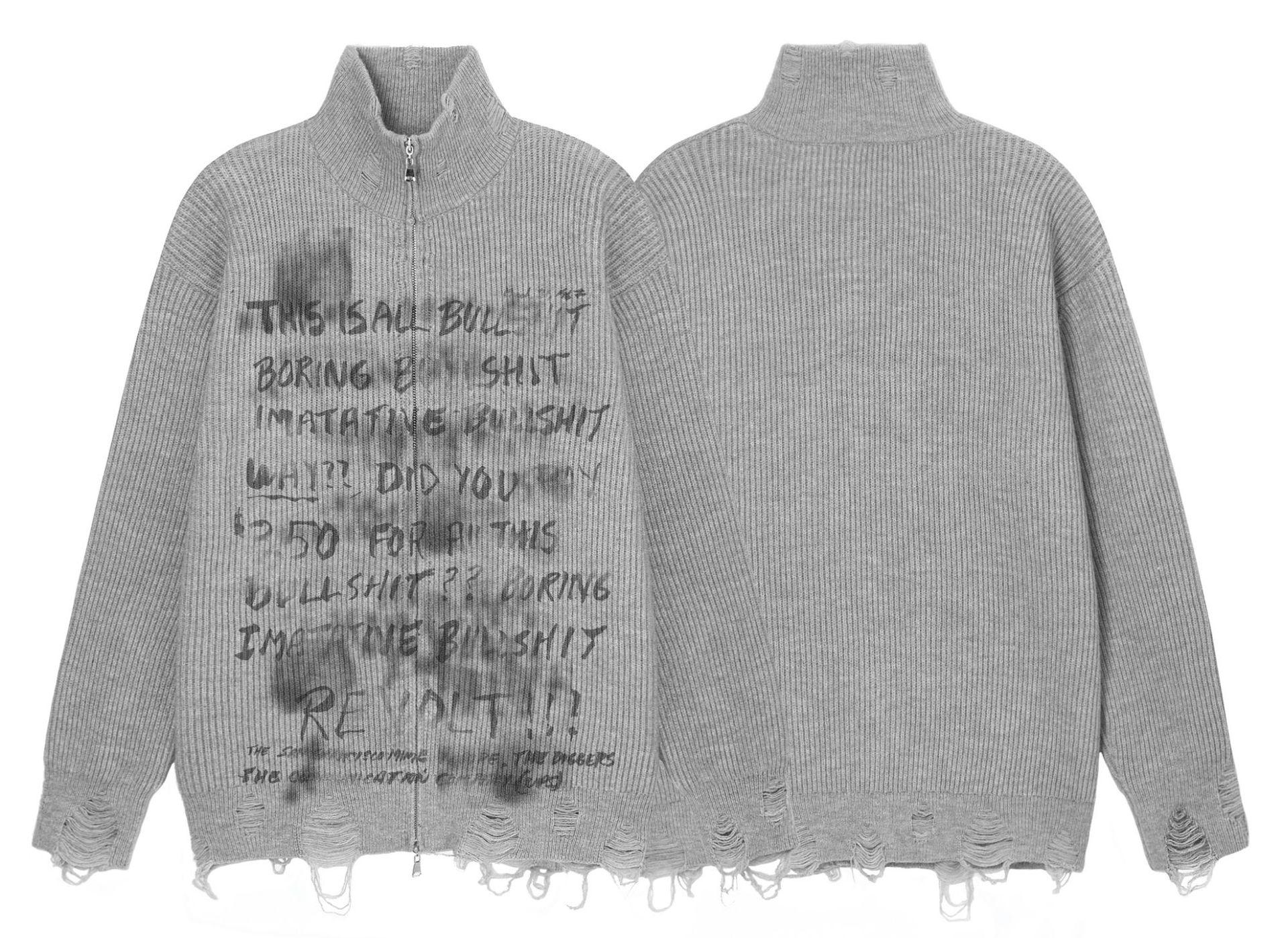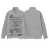 Suéter tipo cárdigan con cuello roto y dobladillo estampado de letras de marca de moda de estilo americano para hombre y mujer, prenda de punto holgada y distintiva para otoño e invierno.