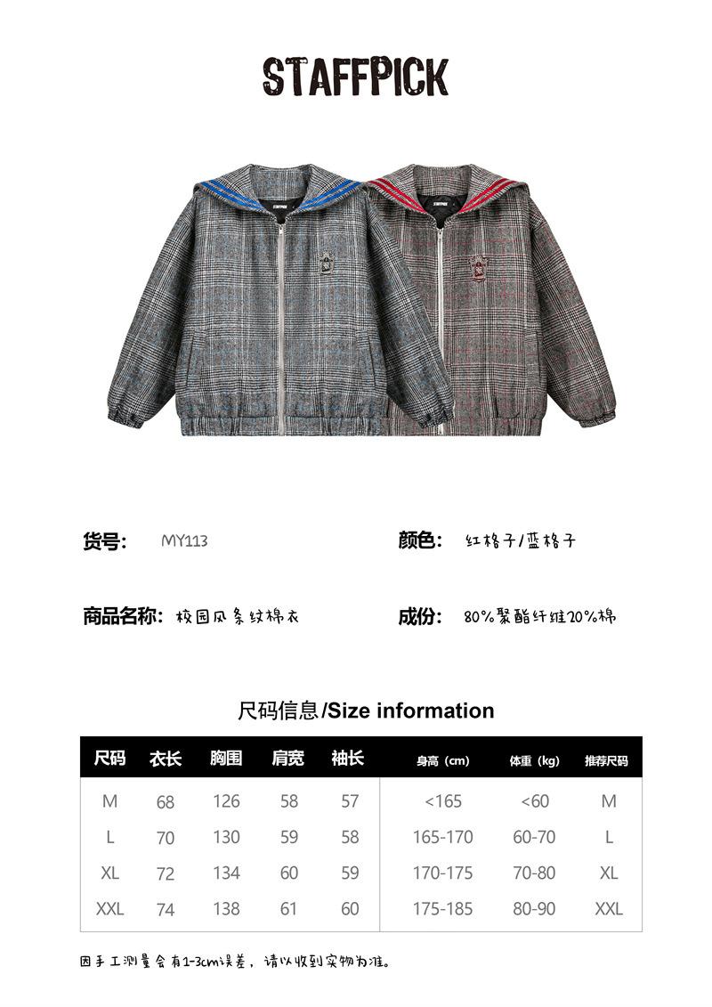 Invierno Récord Nueva Marca de Moda Americana Tiro Real Retro Casual Suelto Solapa Azul Marino Pareja Todo Combinable Chaqueta Acolchada de Algodón