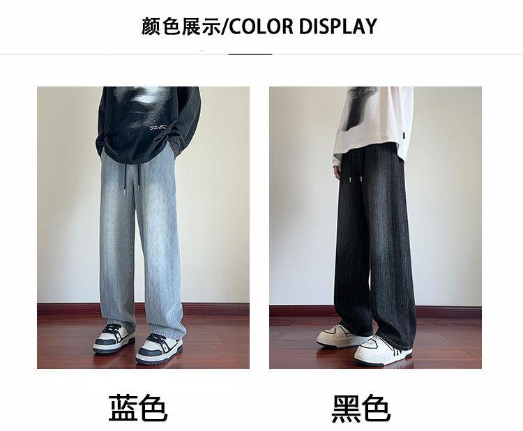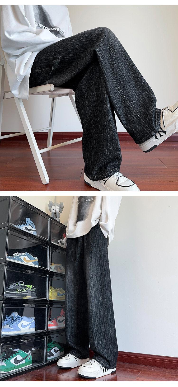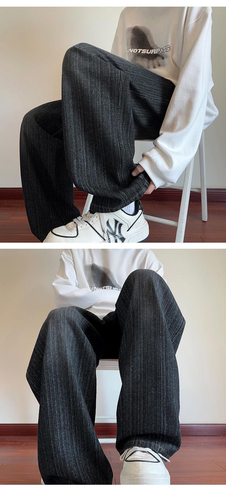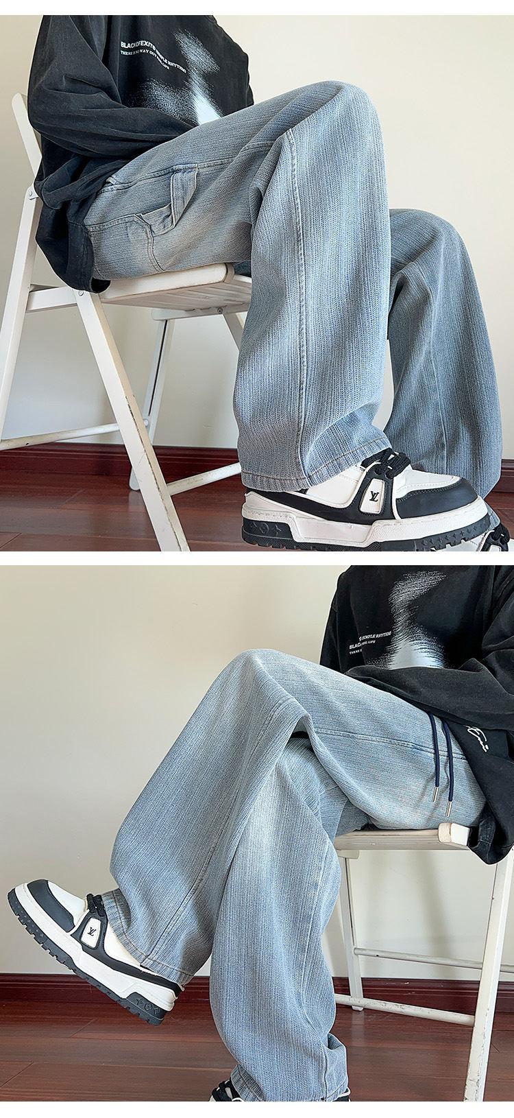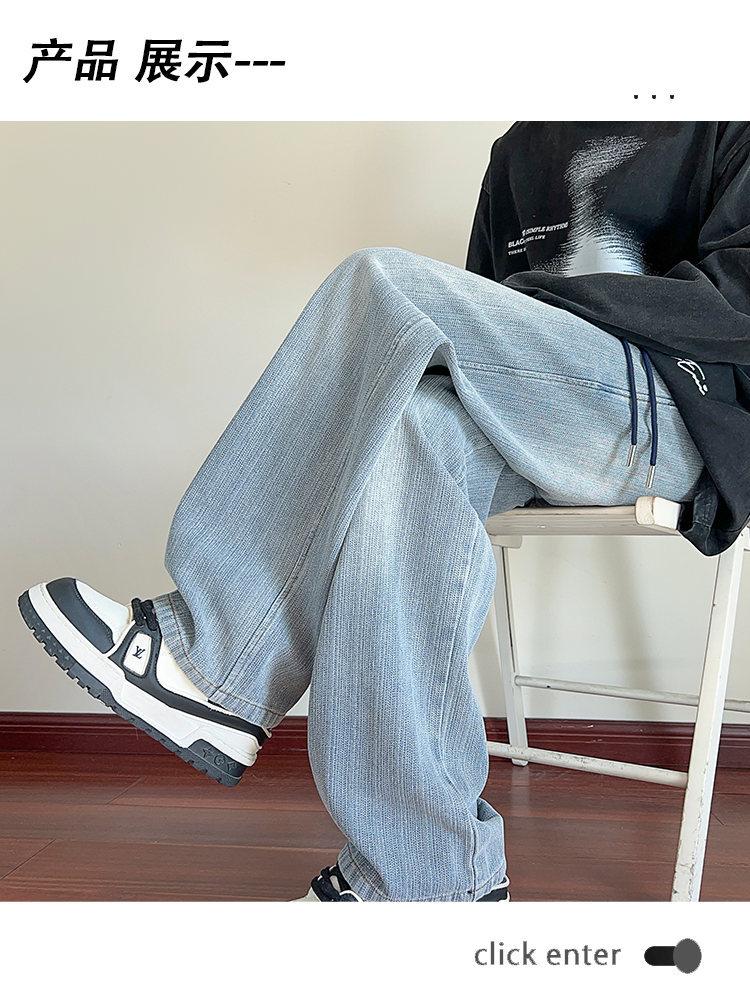 Pantalones vaqueros rectos de primavera y otoño para hombre, con textura, lavados y de moda, de pierna ancha.