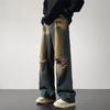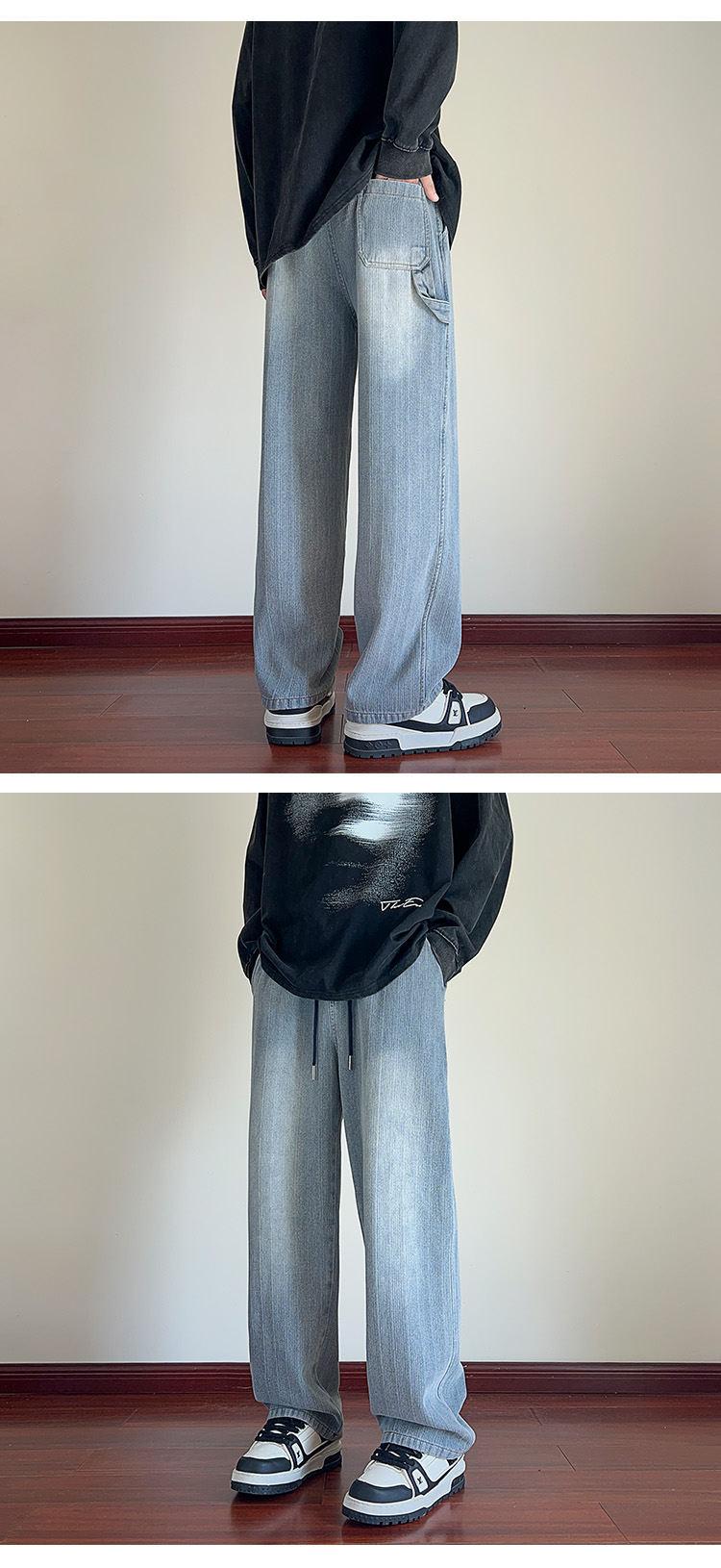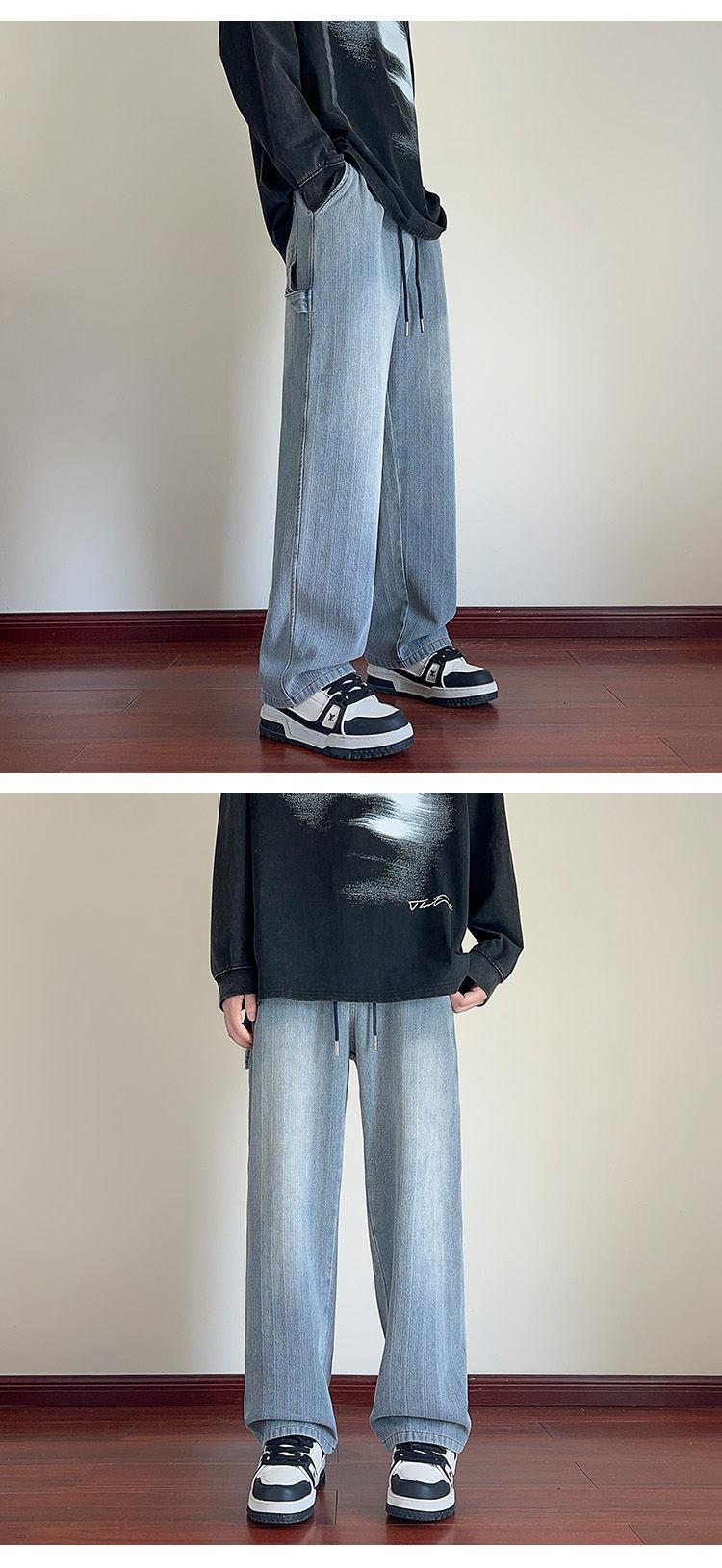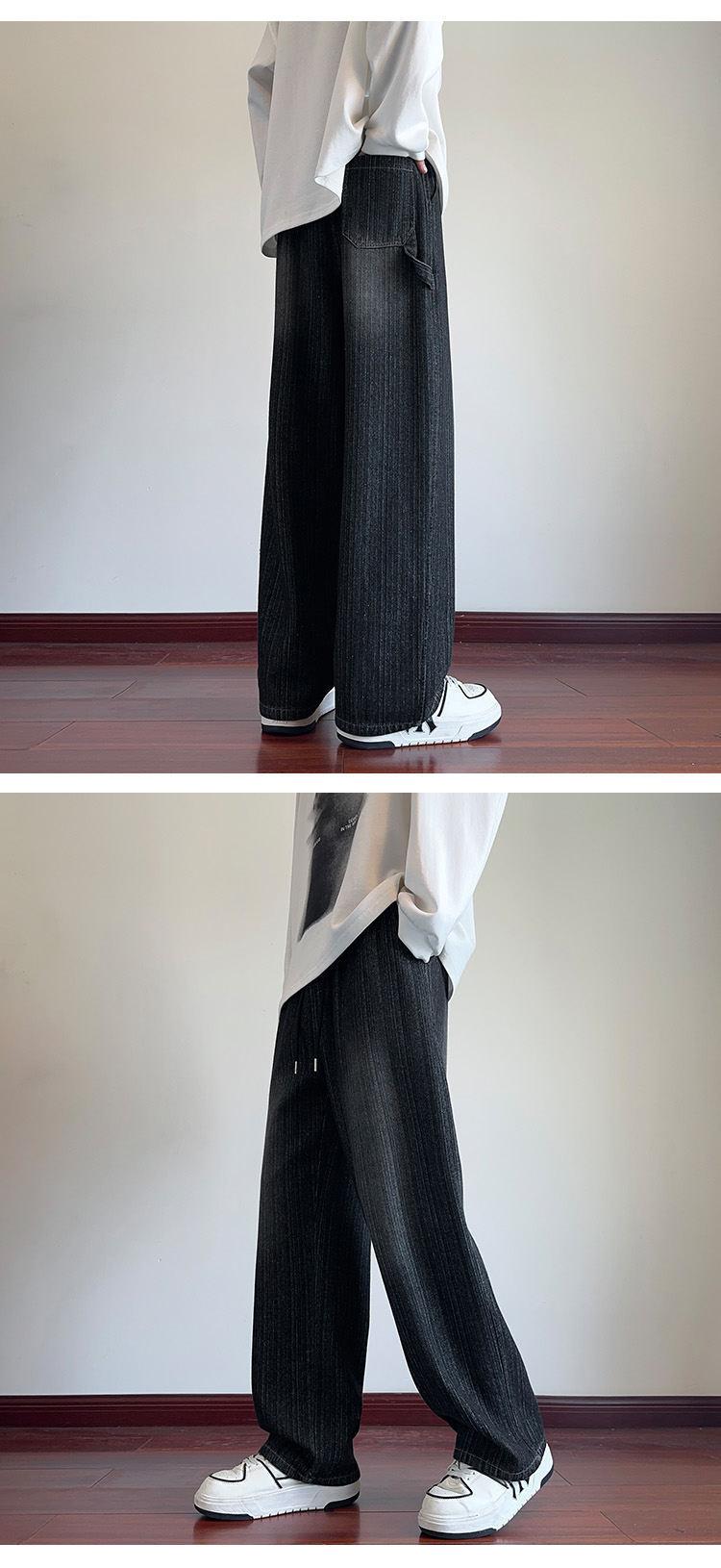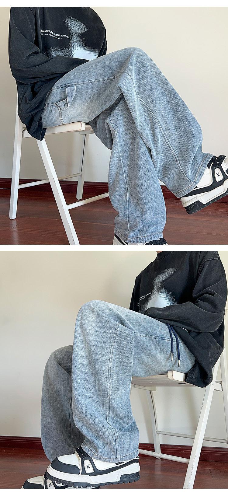 Pantalones vaqueros rectos de primavera y otoño para hombre, con textura, lavados y de moda, de pierna ancha.