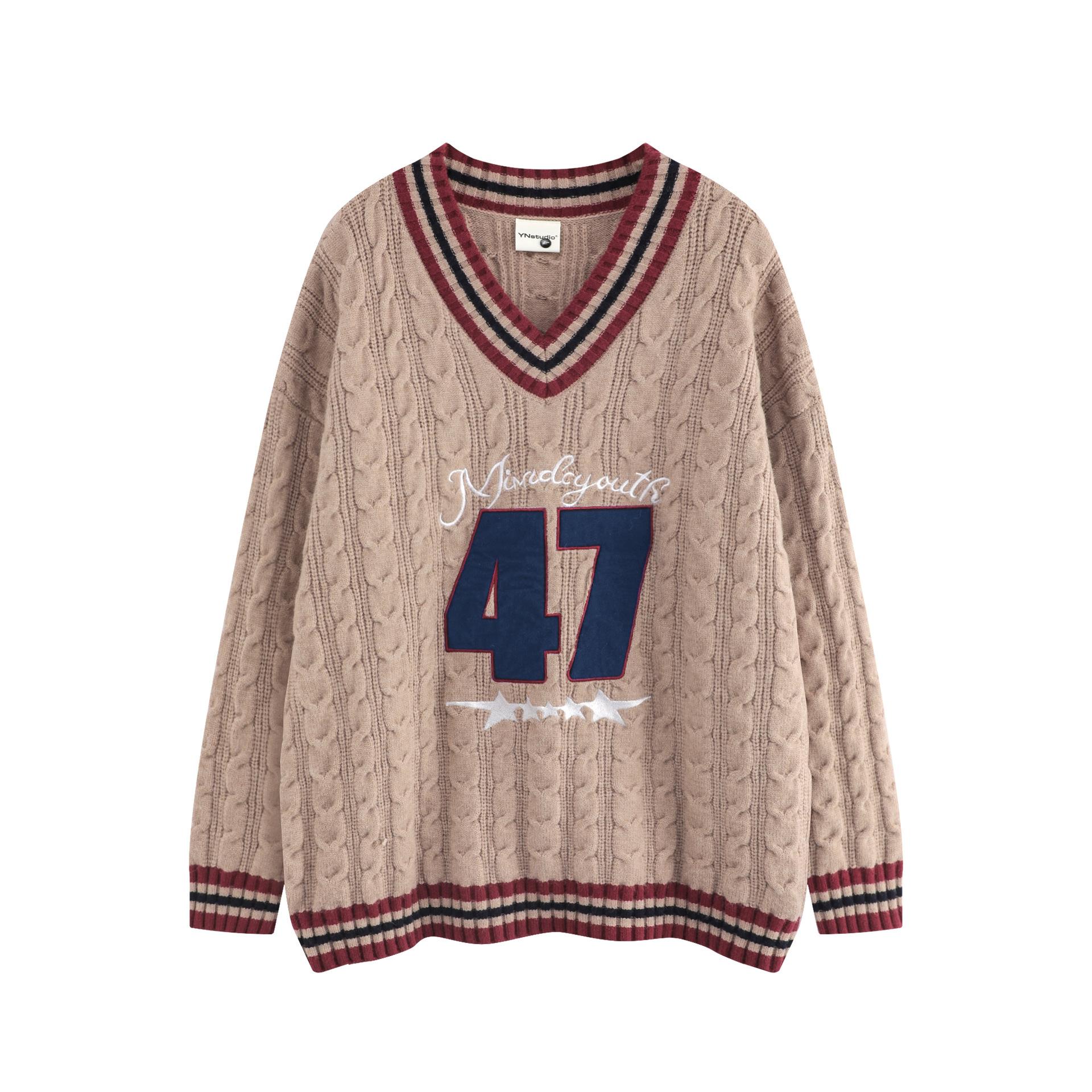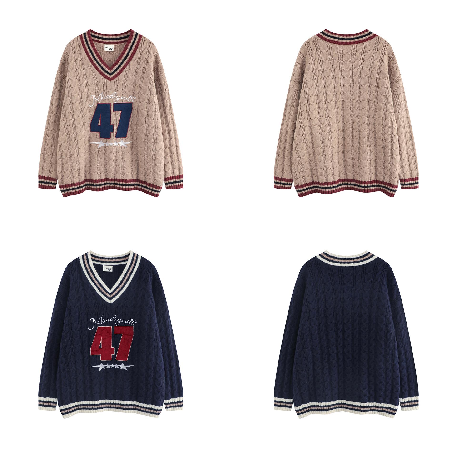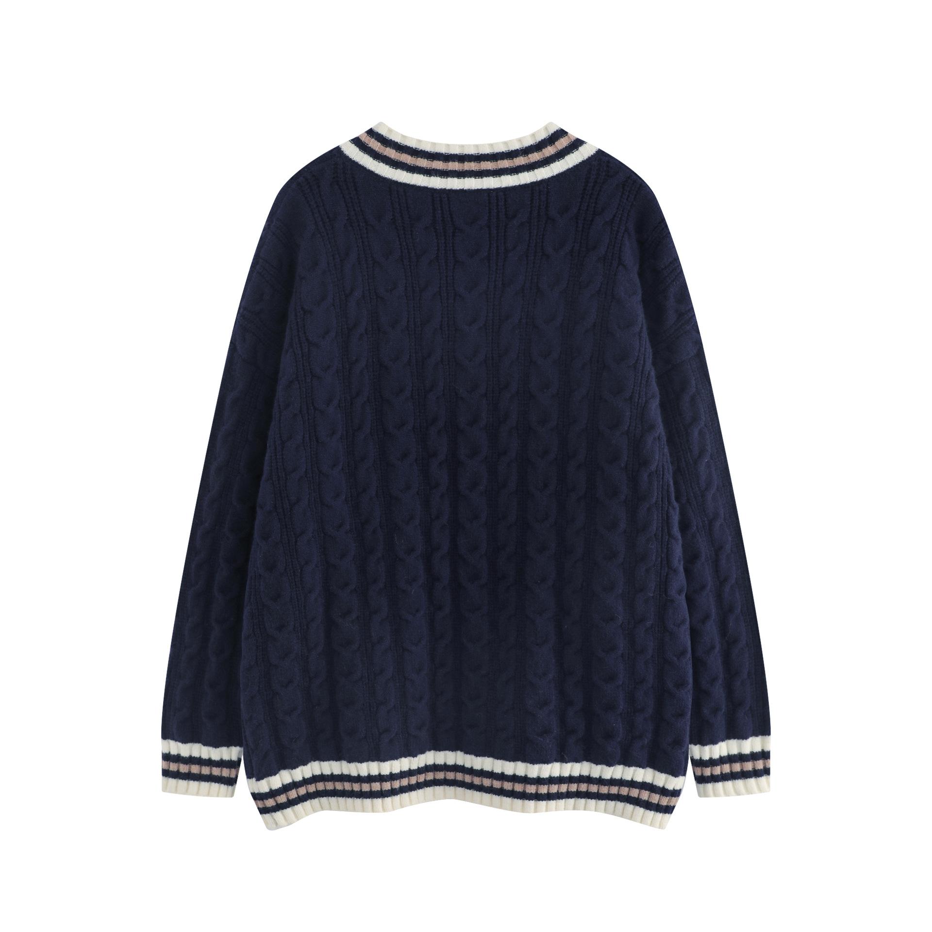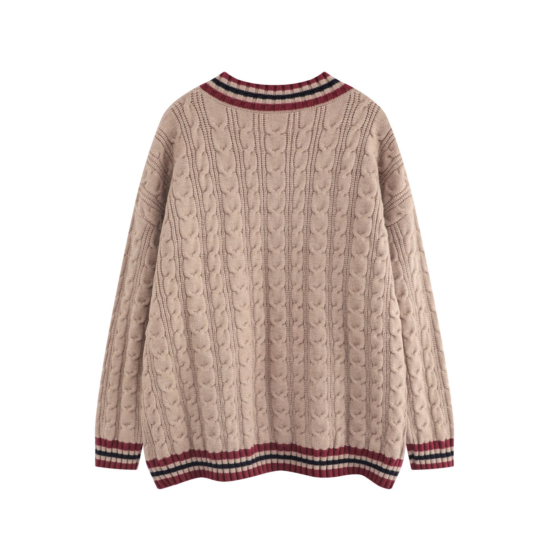 Trece líneas moda 2024 principios de otoño color contraste cuello en V letras dulce Joker suéter holgado tejido trenzado