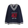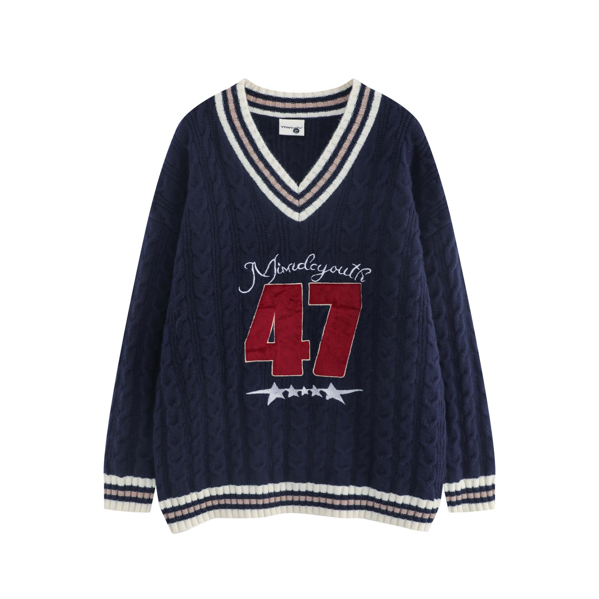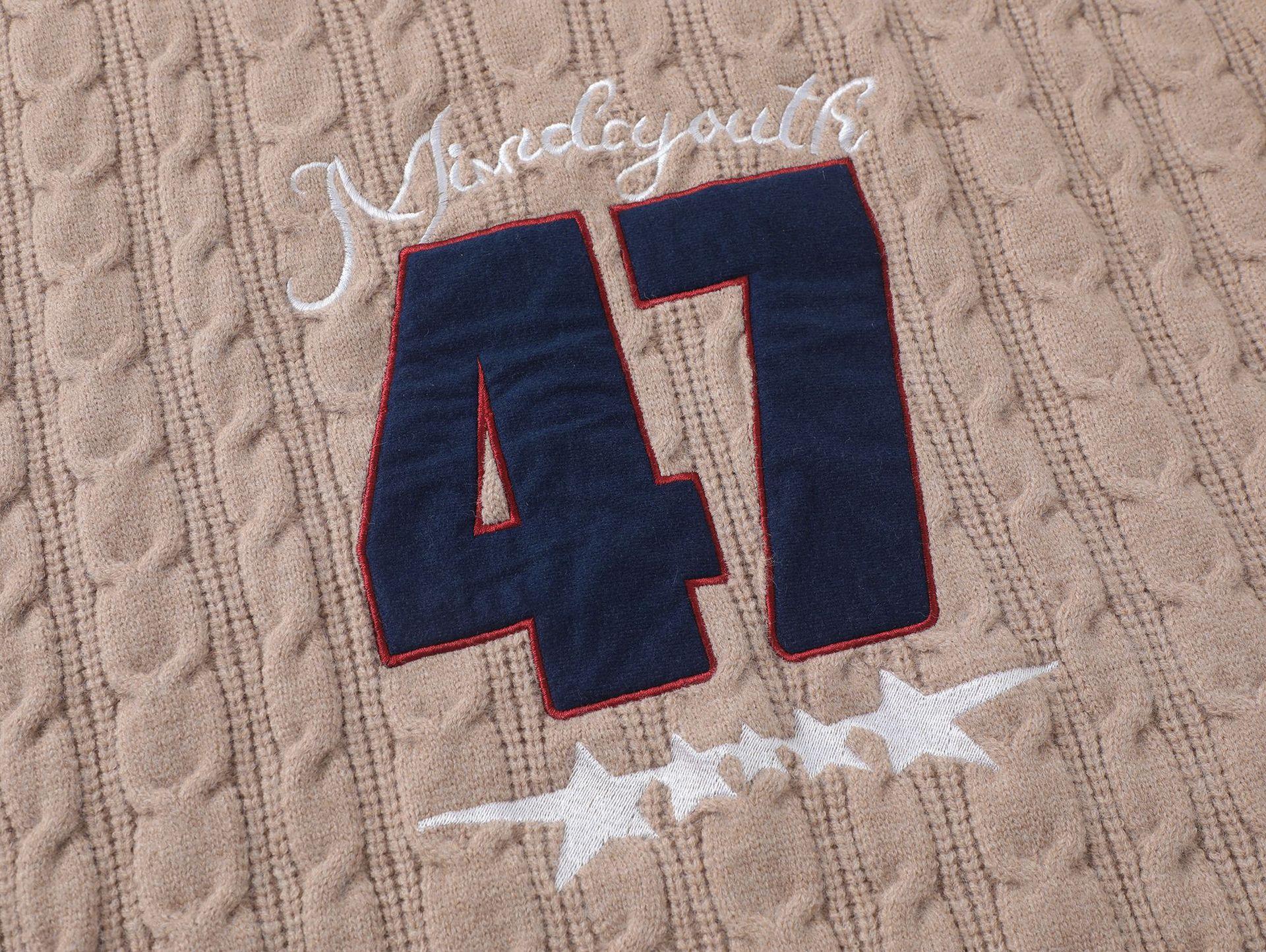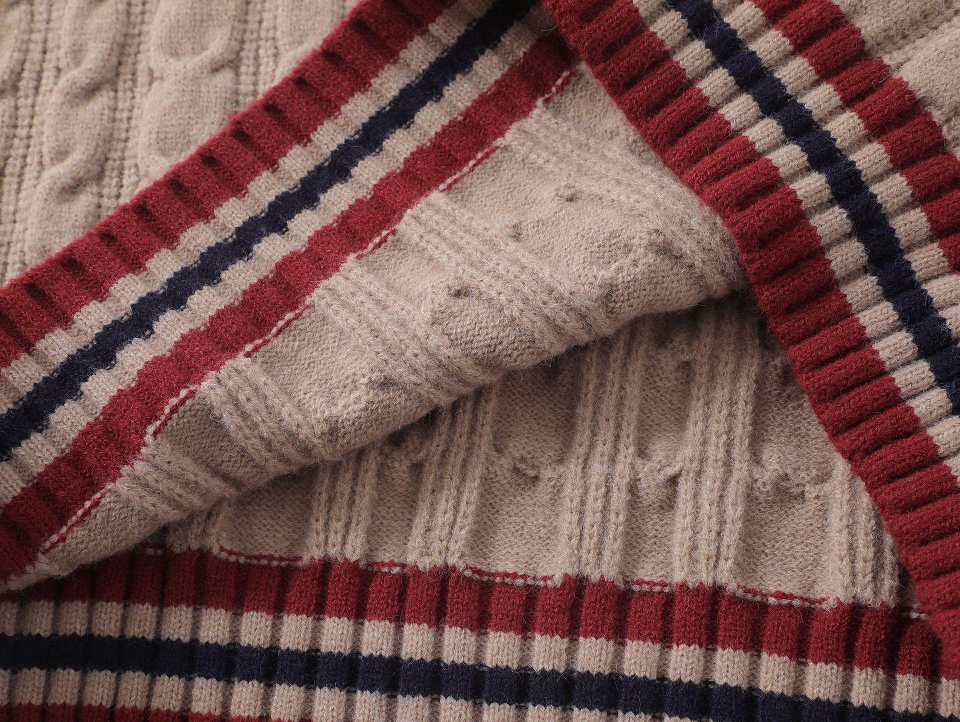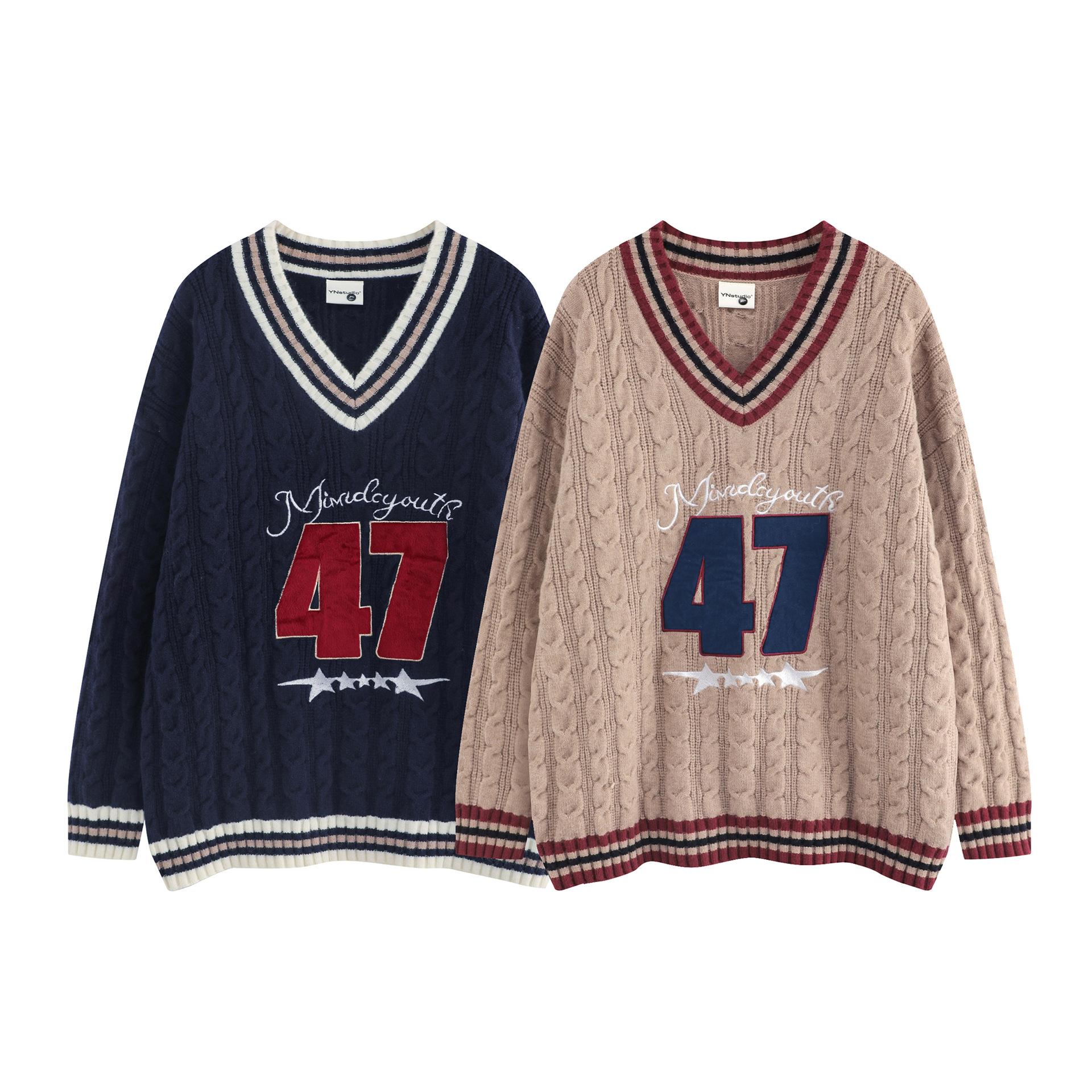 Trece líneas moda 2024 principios de otoño color contraste cuello en V letras dulce Joker suéter holgado tejido trenzado