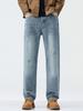 Pantalones vaqueros de otoño para hombre, marca de moda, sueltos, rectos, nuevos pantalones casuales para las cuatro estaciones, pantalones elásticos de moda para hombre