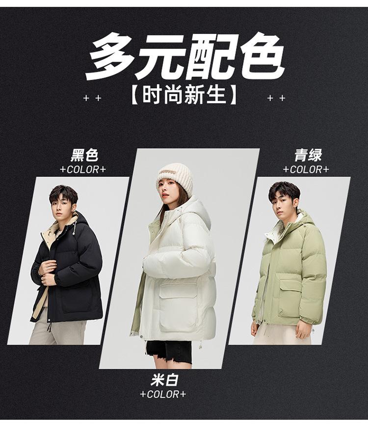Chaqueta de Plumón para Pareja para Hombre y Mujer Ropa de Invierno Nueva Chaqueta con Capucha para Hombre Combinable a Todo Moda Engrosada Cálida Ropa Tipo Pan
