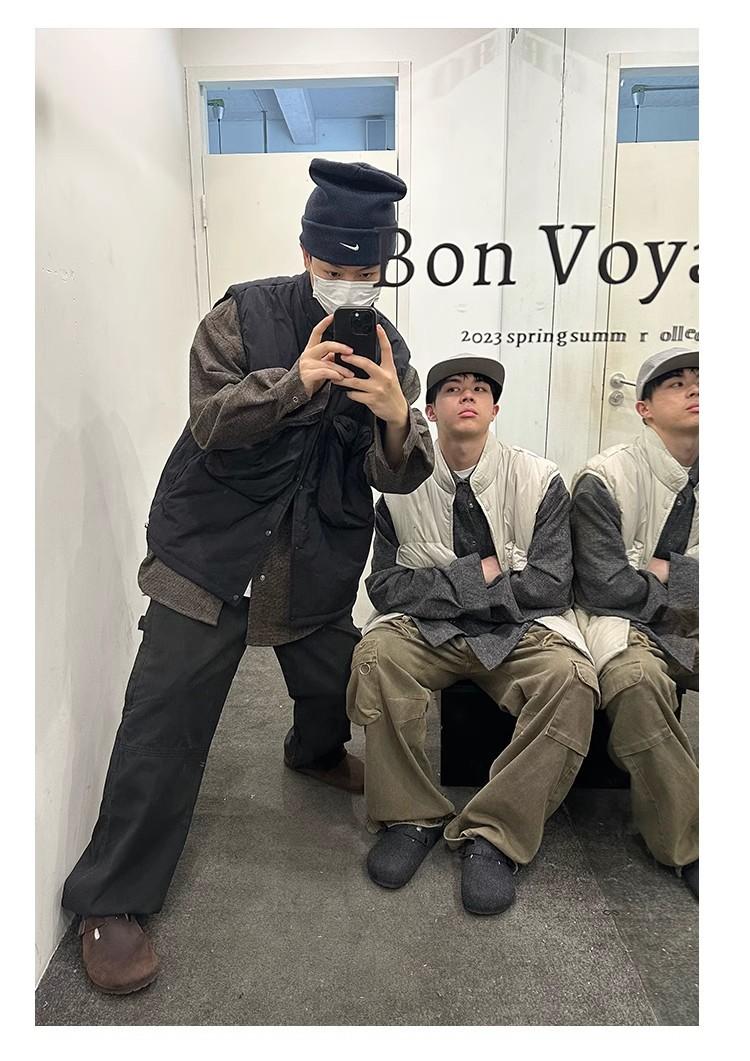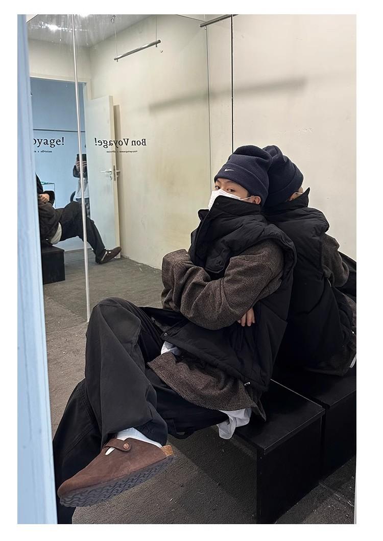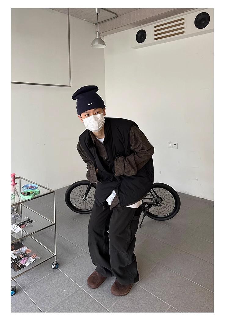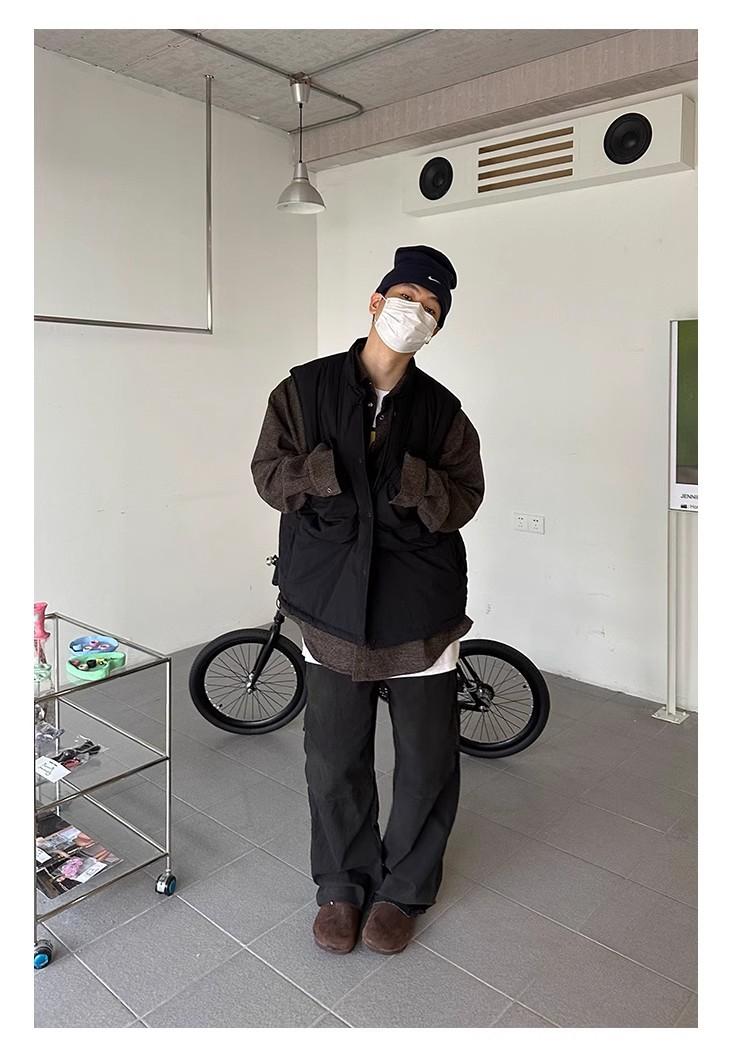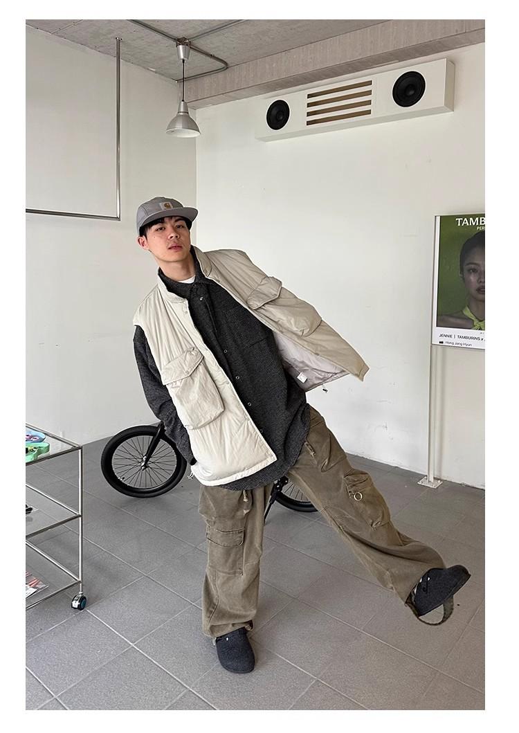 Chaleco acolchado de algodón de color liso con bolsillos grandes de marca de moda retro americana para hombres y mujeres, chaqueta de invierno cálida, gruesa, resistente al viento y sin mangas.