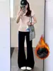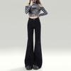 Jeans negros de pierna ancha para mujer 2025 Nuevo otoño e invierno Terciopelo No ajustados Microacampanados