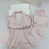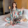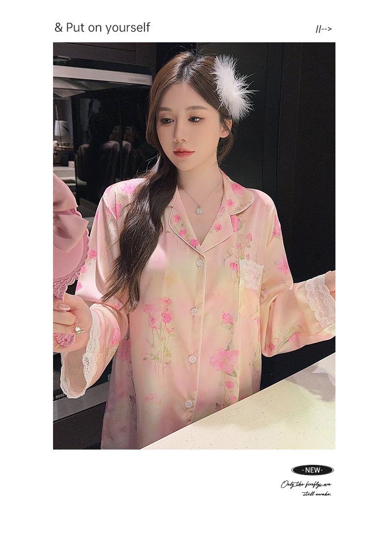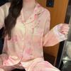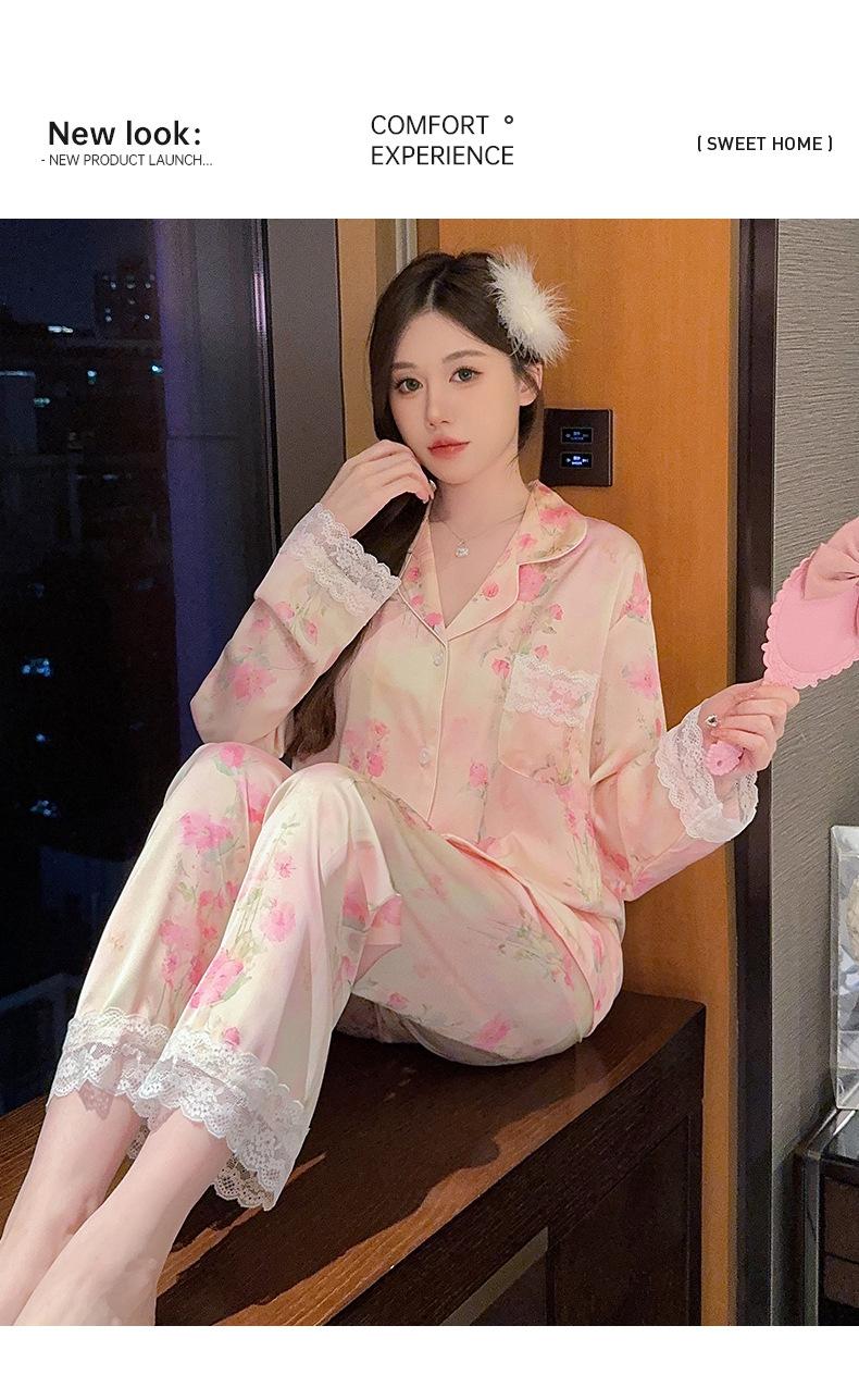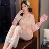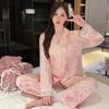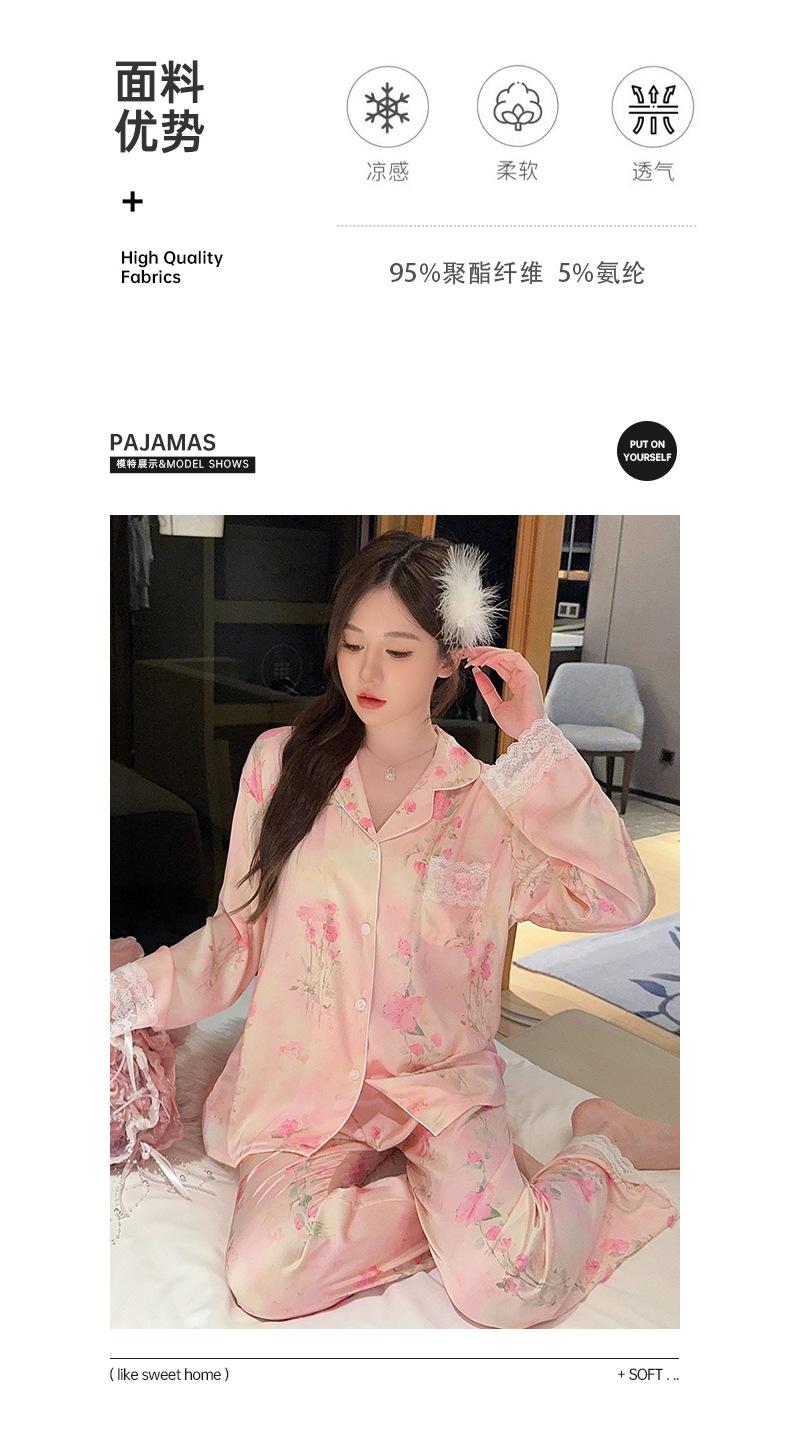 Pijamas dulces nuevos de primavera y otoño para mujer, pantalones de manga larga de seda helada, ropa exterior sexy para el hogar, traje fino, 2024