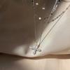 Collar cruzado de doble capa, diseño de nicho femenino, cadena de clavícula de celebridades en línea, joyería de plata de estilo frío y temperamento simple a la moda.